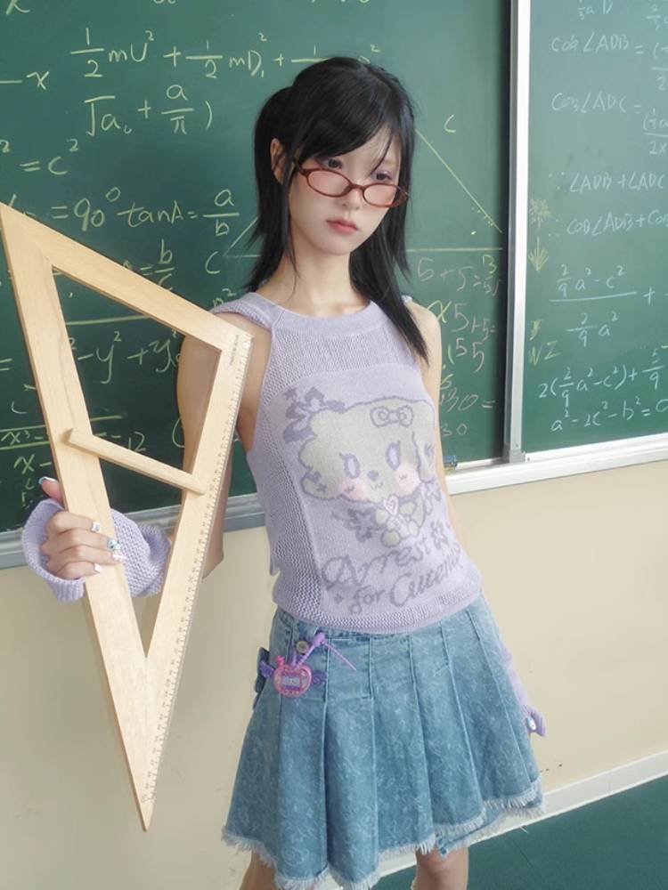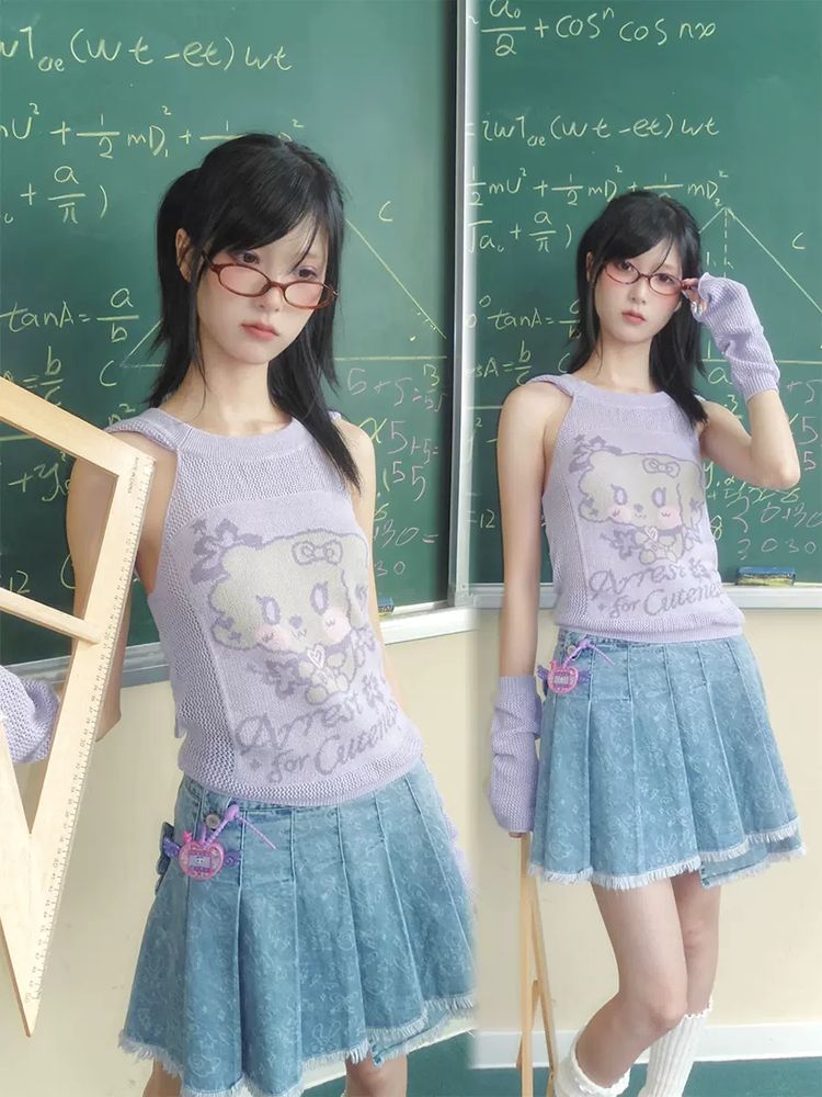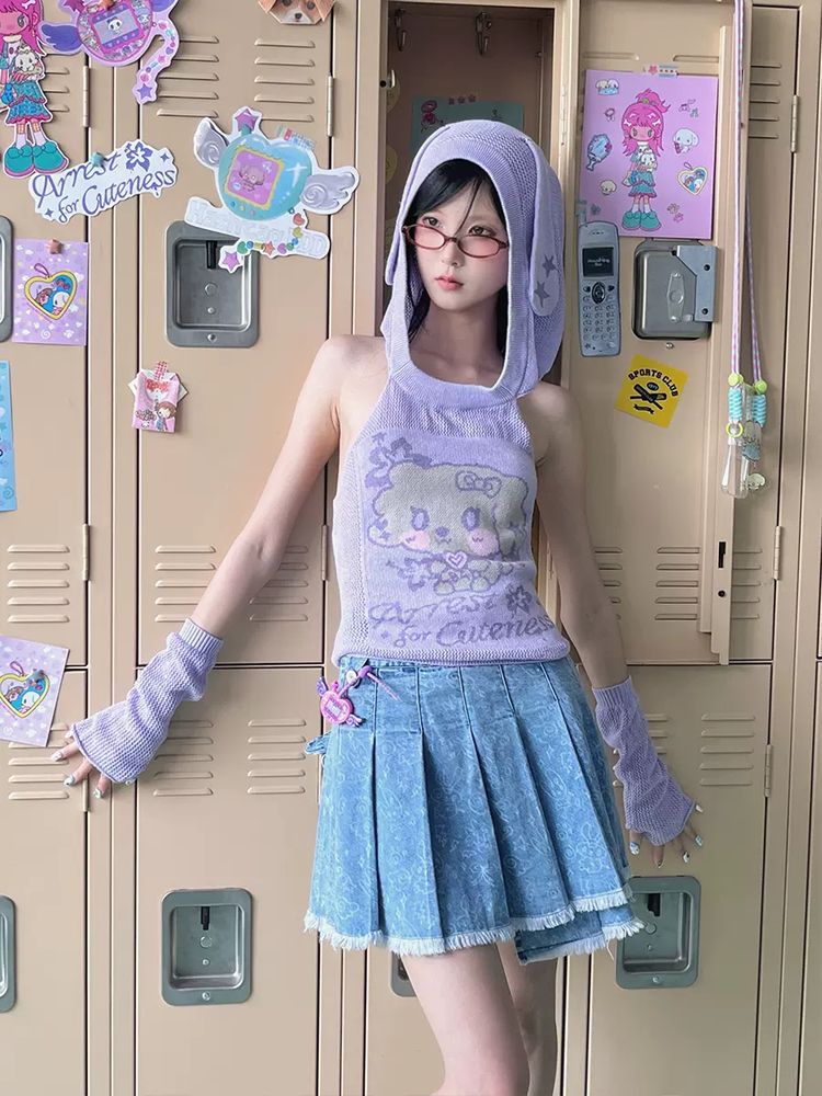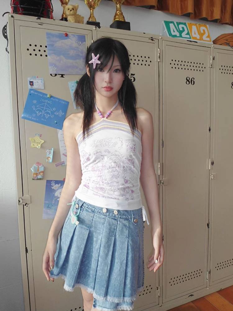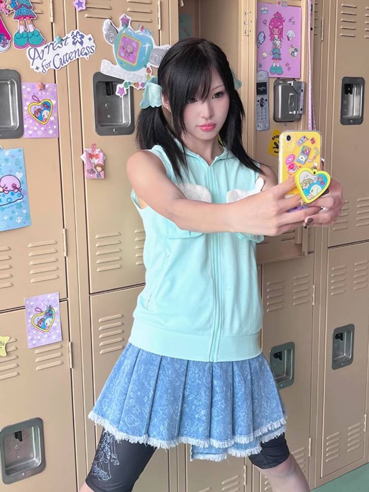 Pleated short denim skirt【s0000009106】