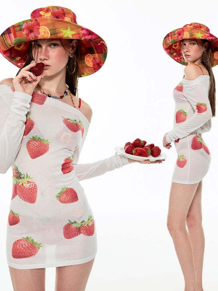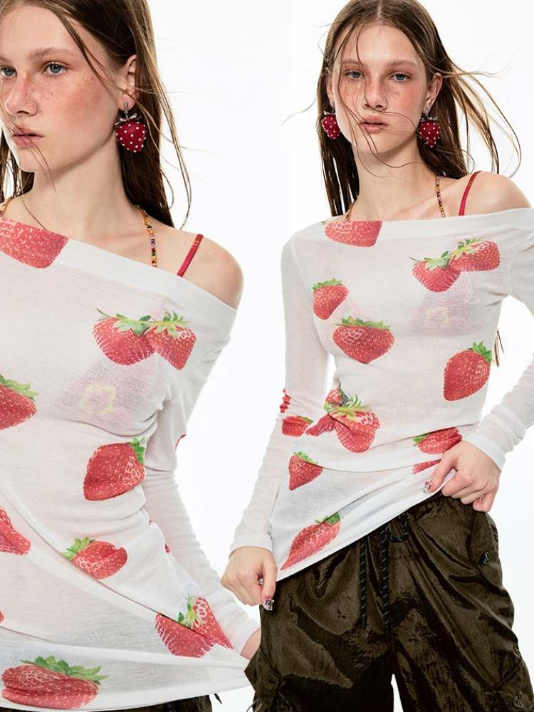 Off Shoulder Sheer Sexy Summer Print Tee【s0000009138】