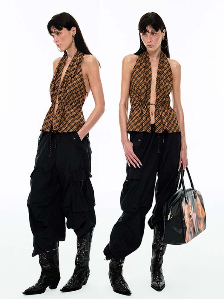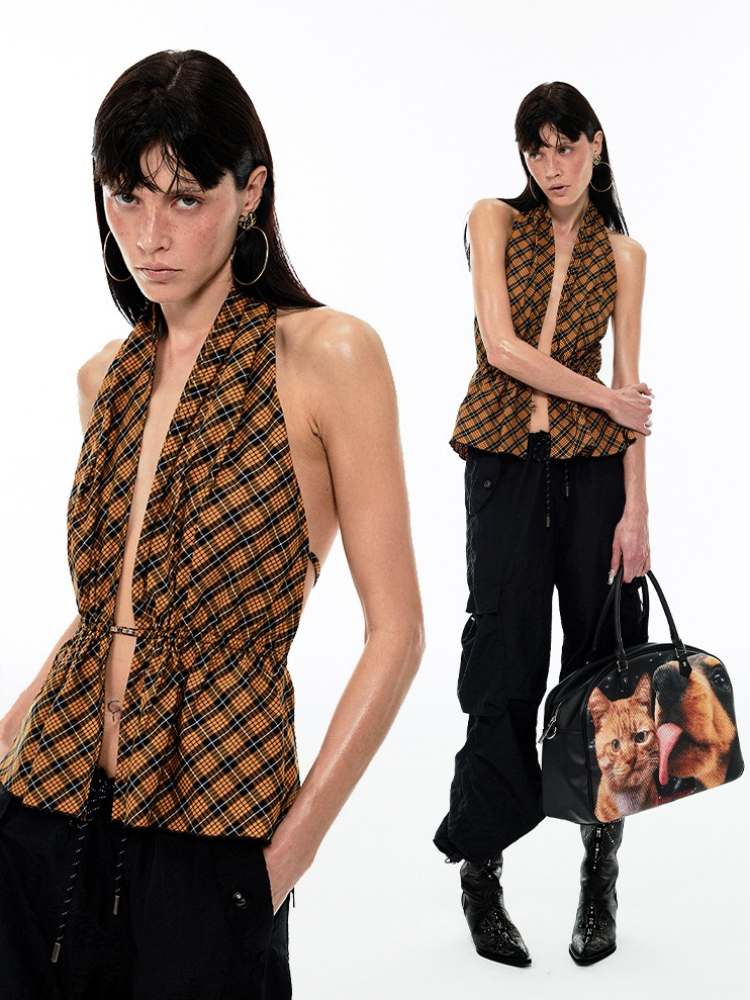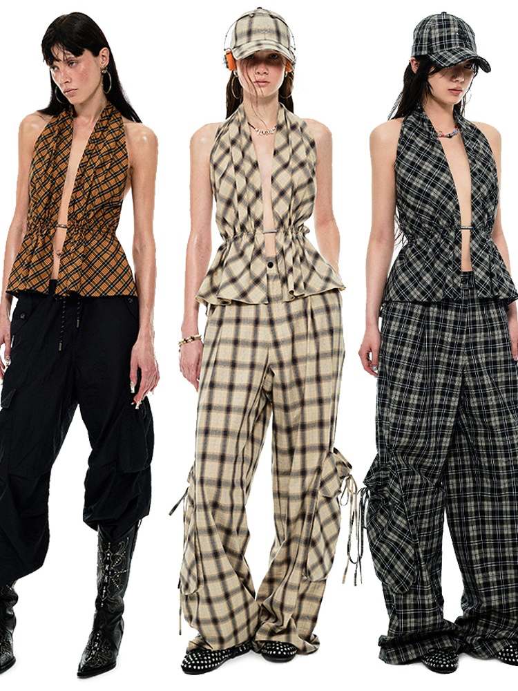 Multilayer Gradient Plaid Halter Backless Tops【s0000009144】