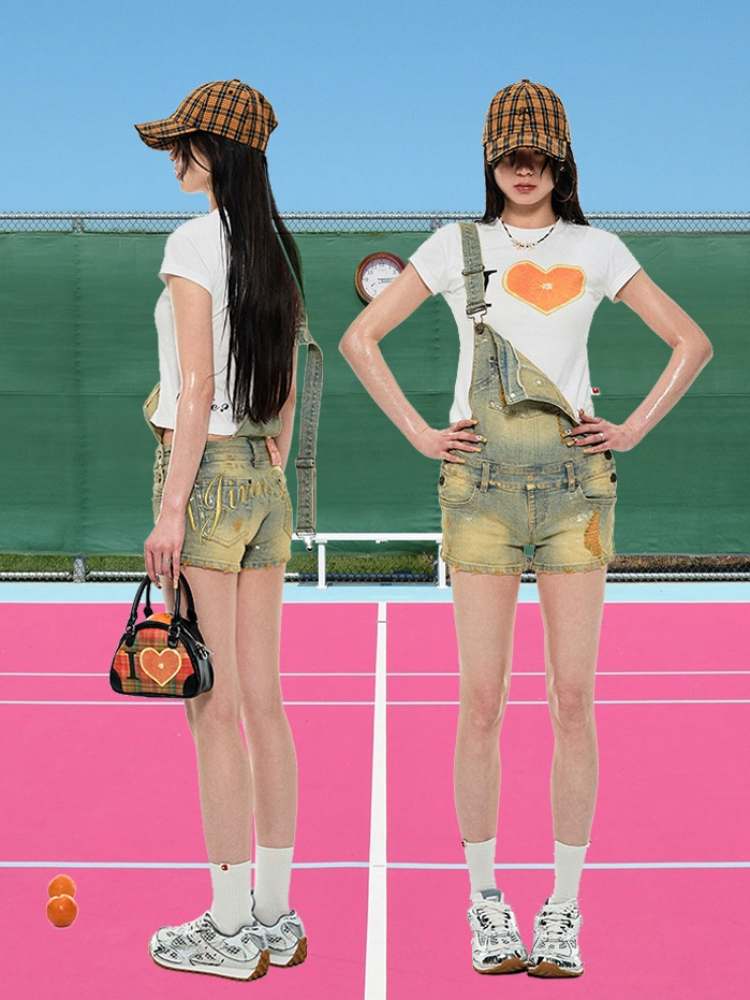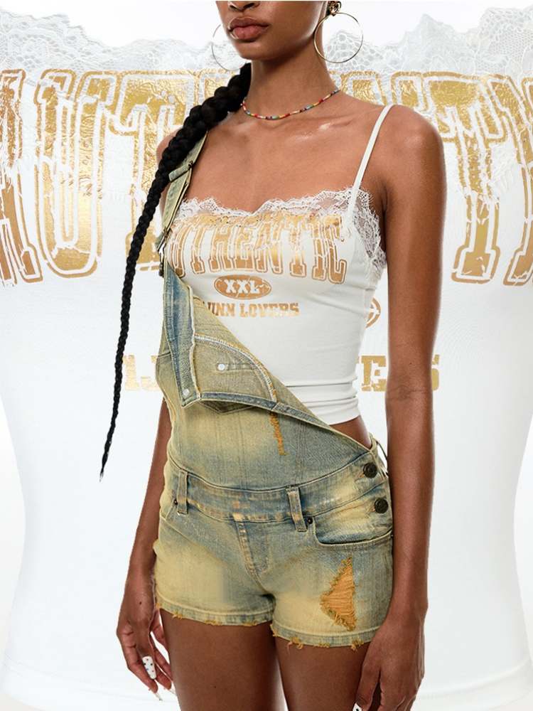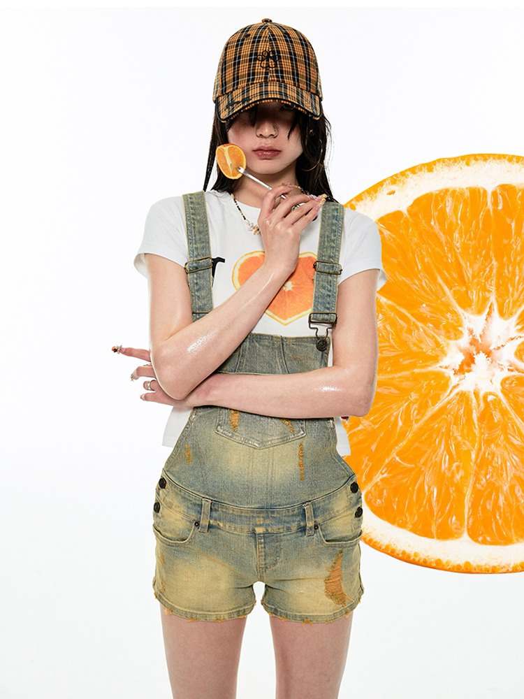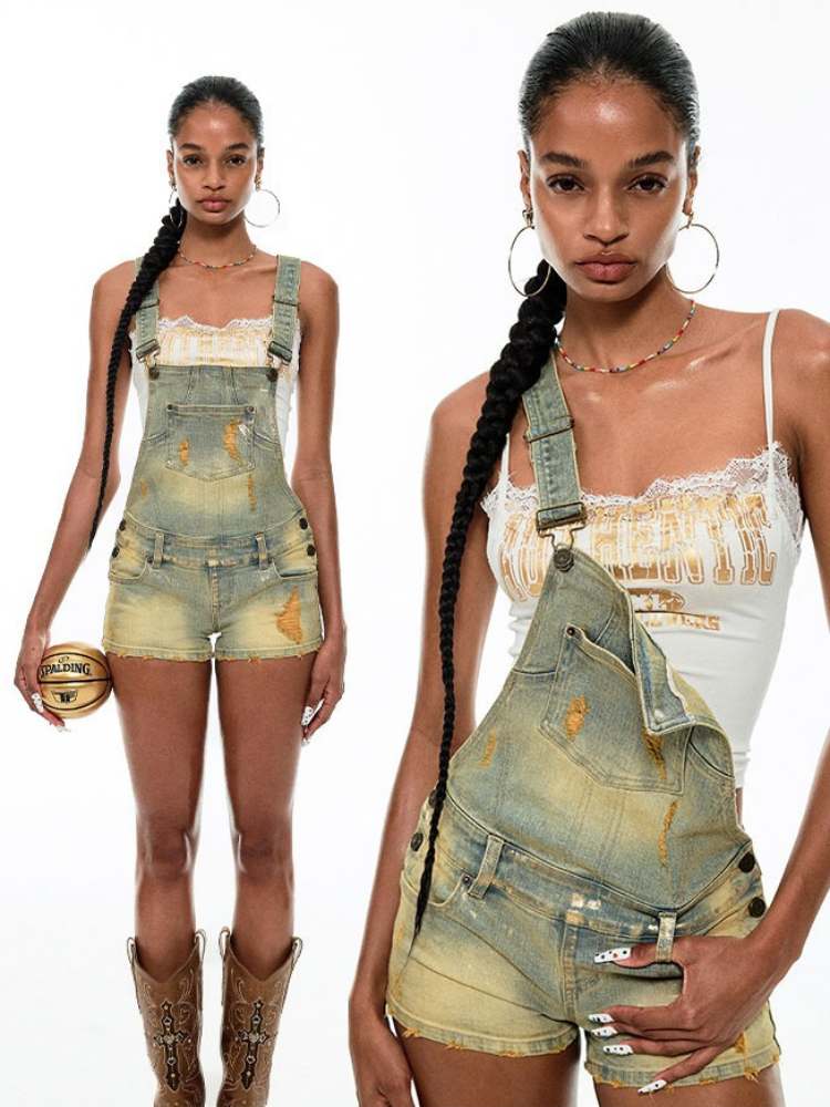 Denim Distressed Vintage Suspender Pants【s0000009149】