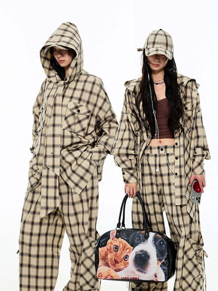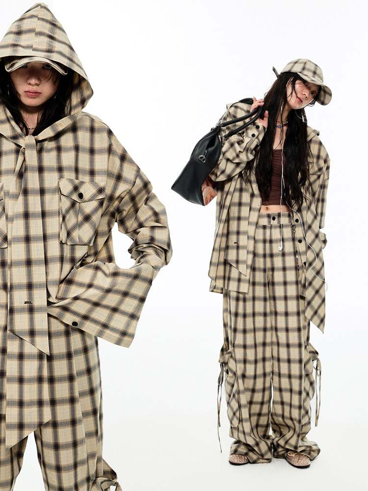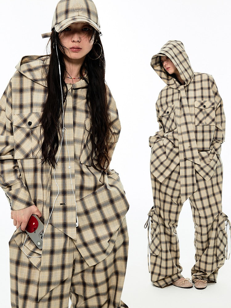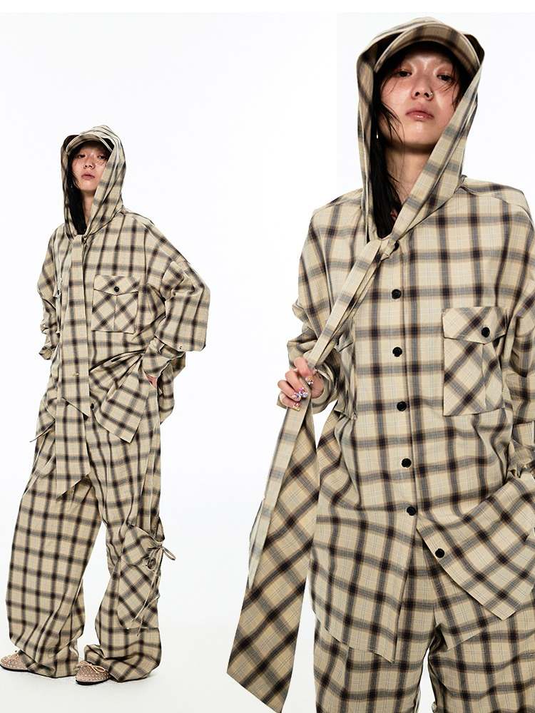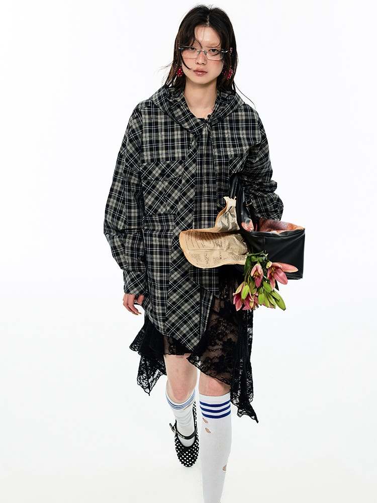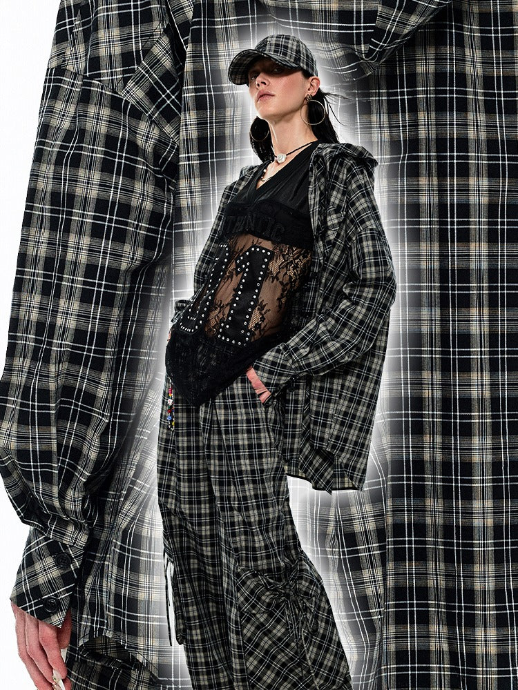 Gradient Plaid Casual Hooded Shirt【s0000009155】