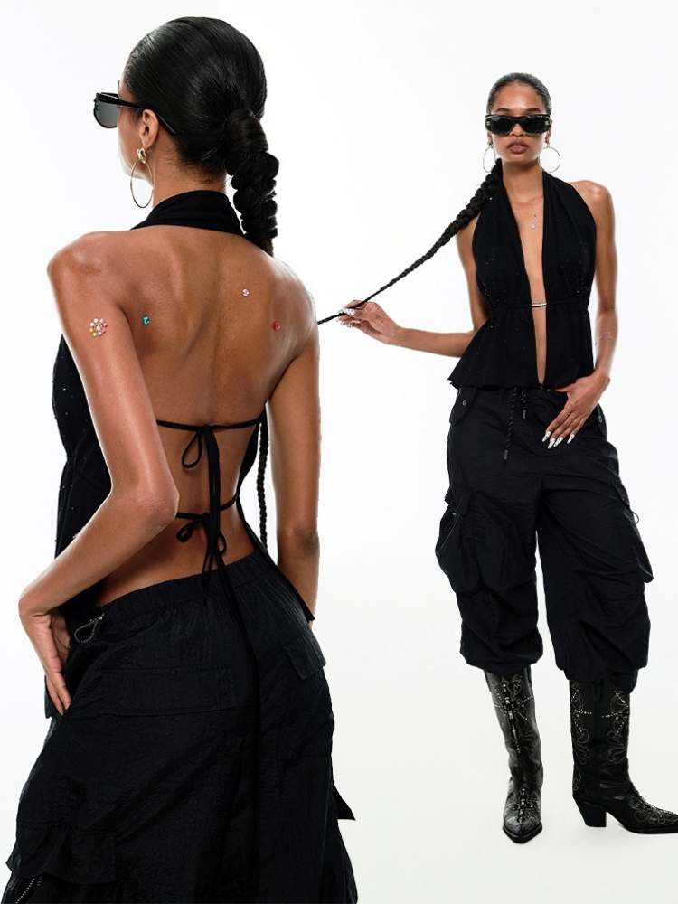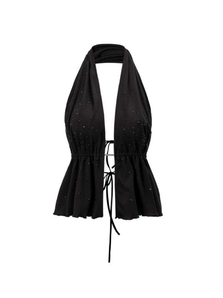 Rhinestone Backless Halter Neck Tops【s0000009158】