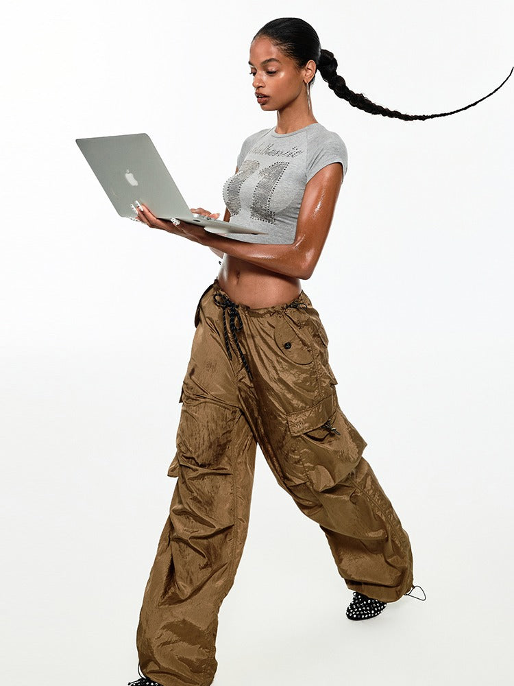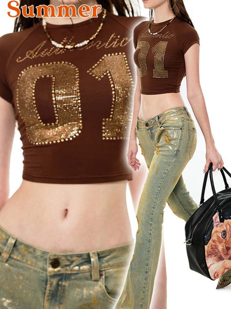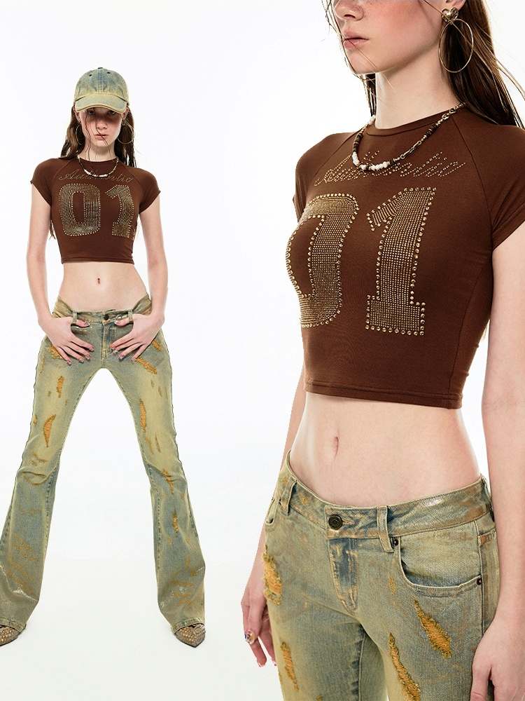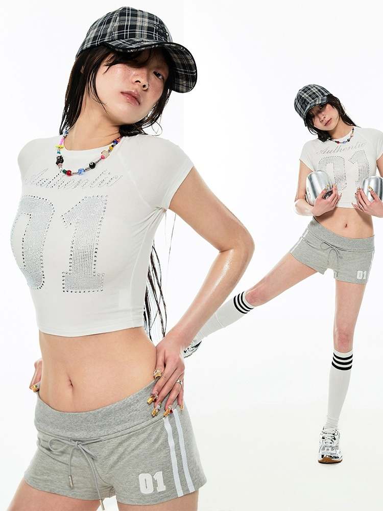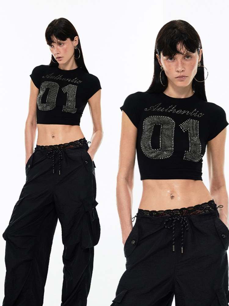 Rhinestone Numbers Cropped Tee【s0000009162】