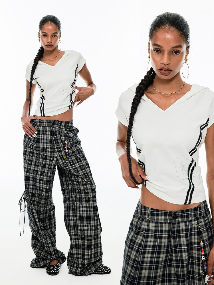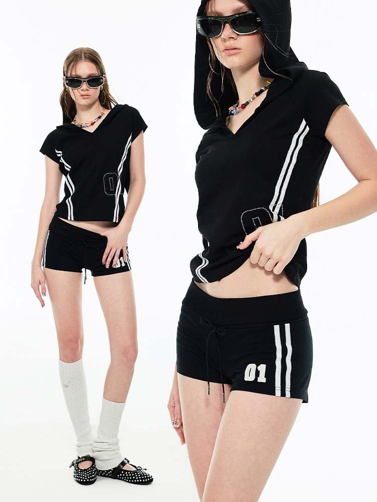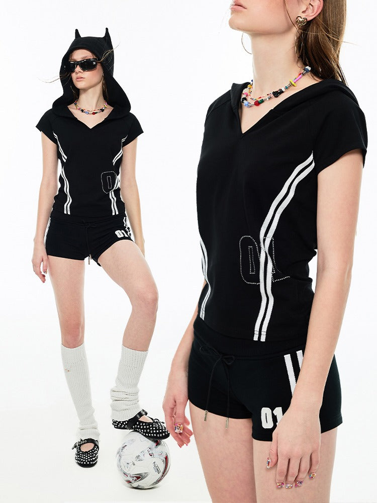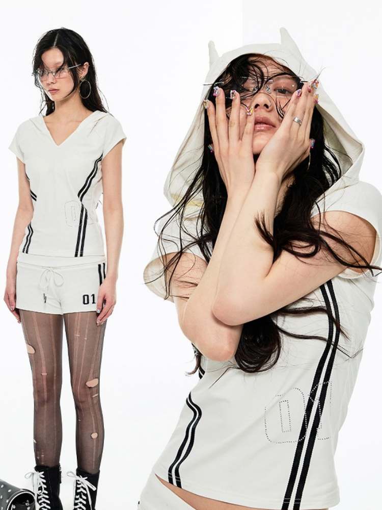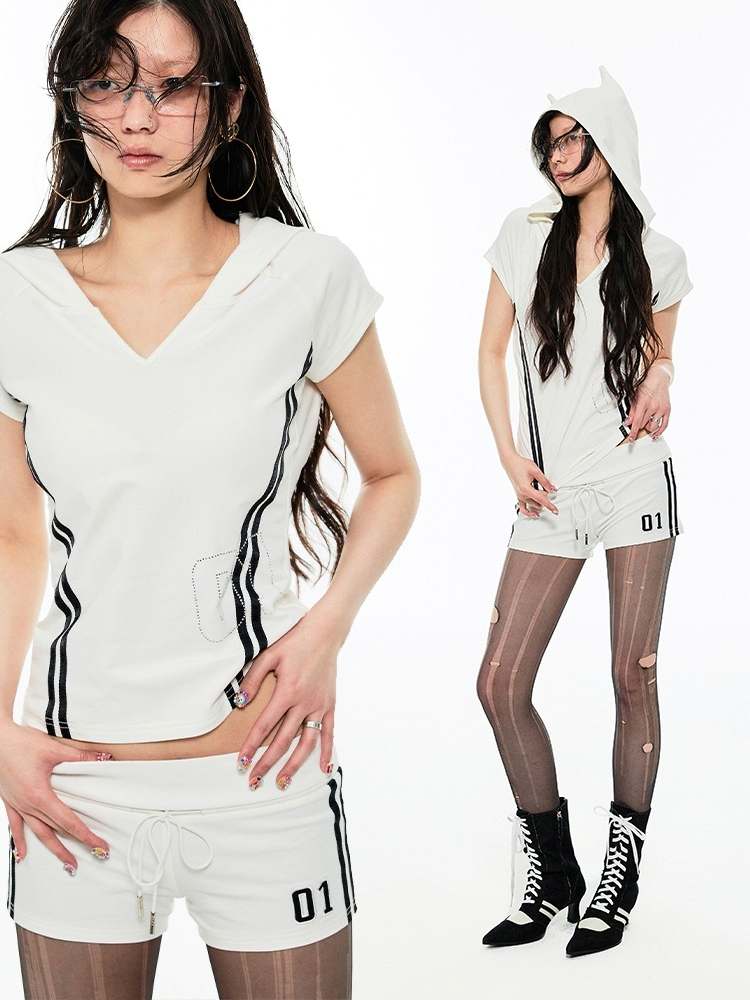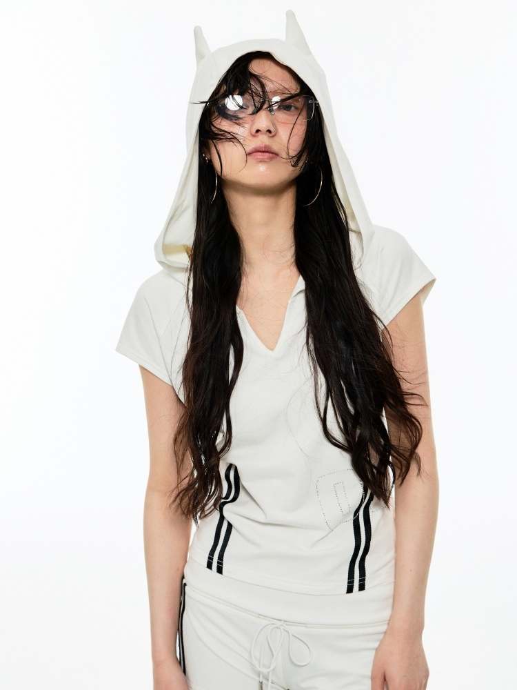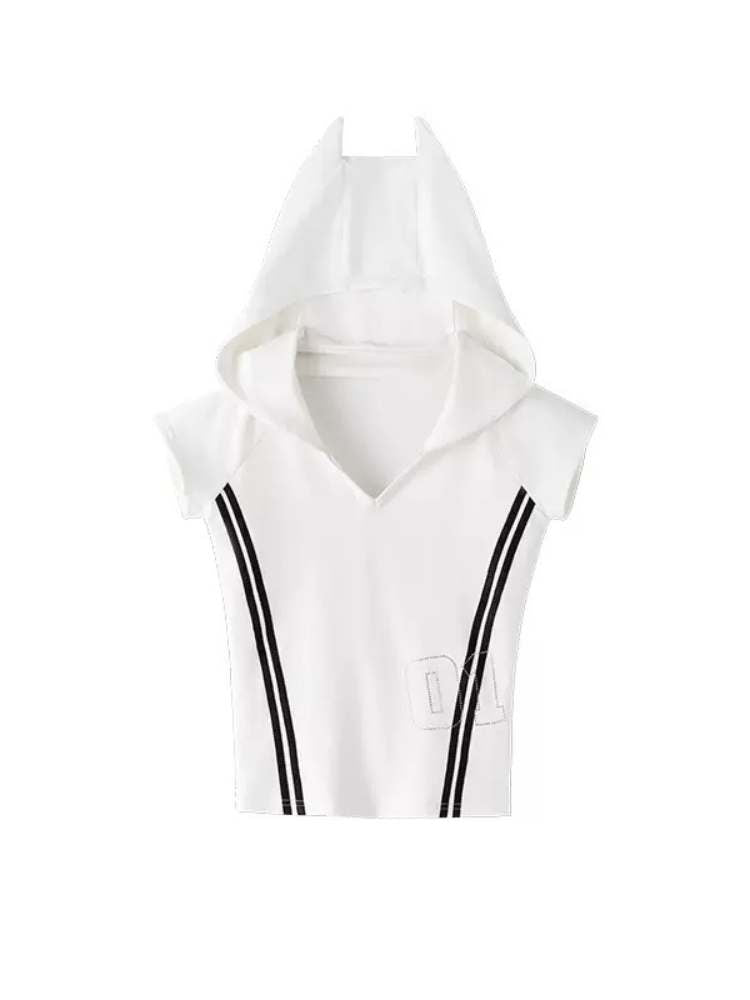 Black & White Line Hoodie V-Neck Tee【s0000009164】