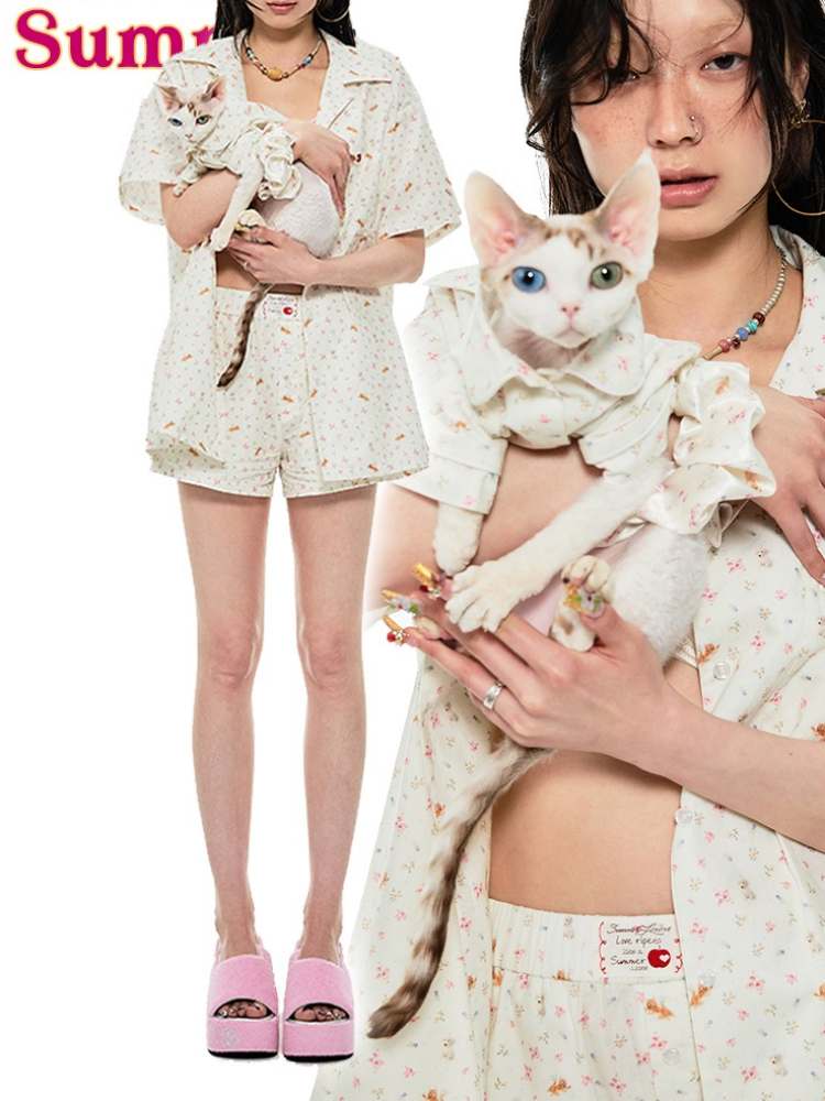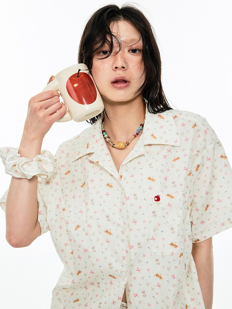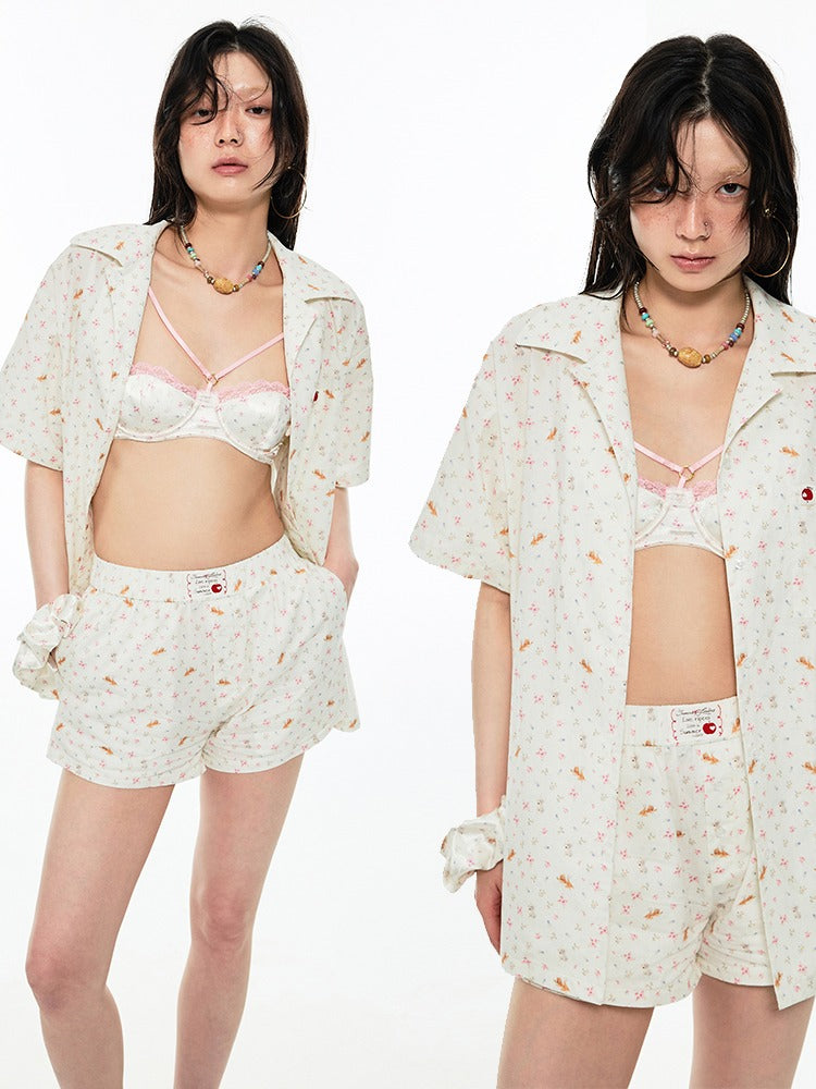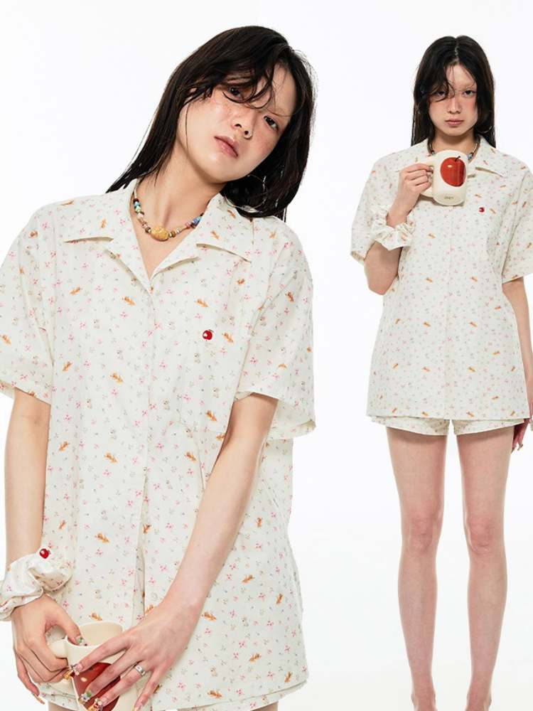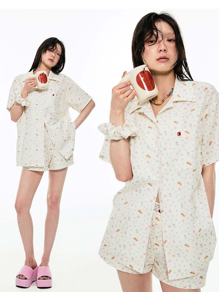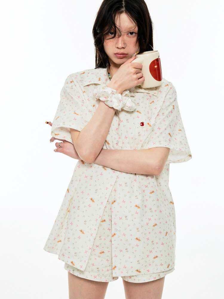 Animal Flower Print Shirt & Short Pants Set Up【s0000009167】