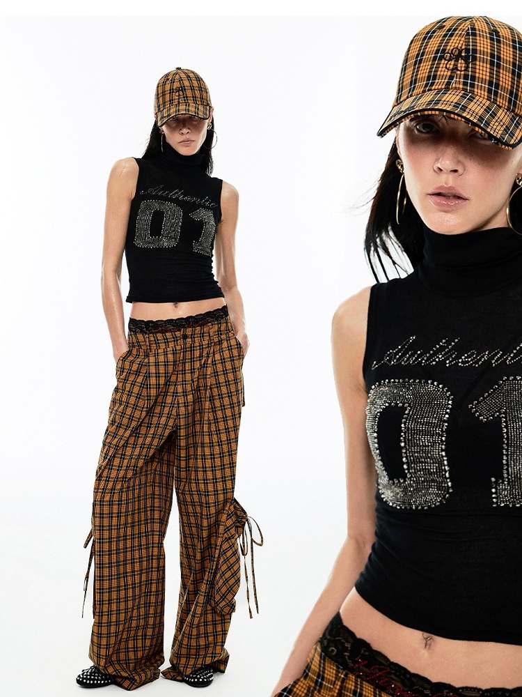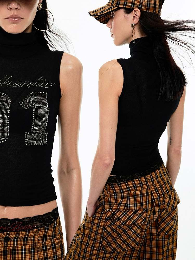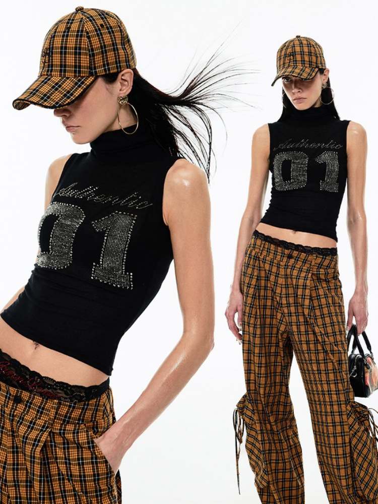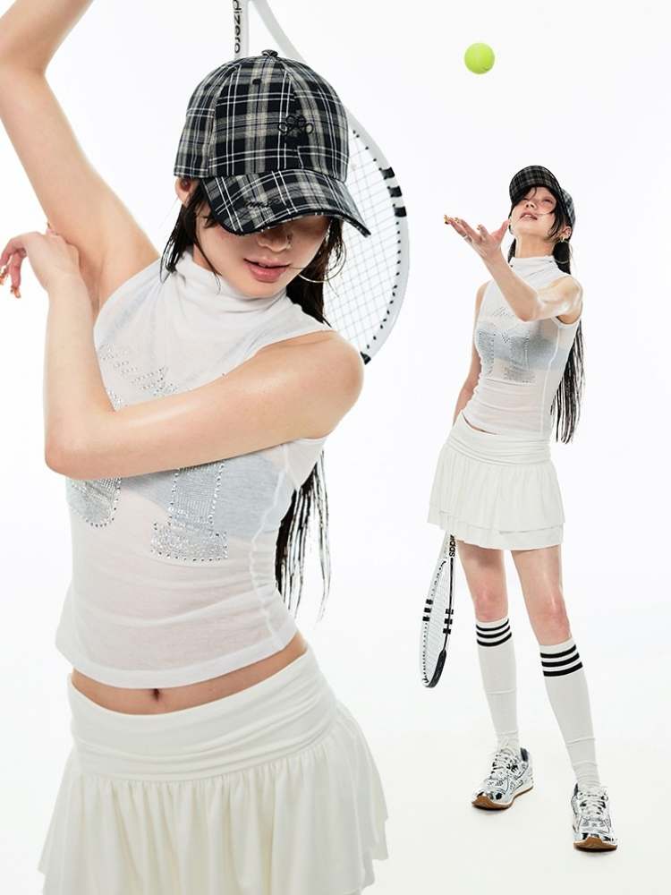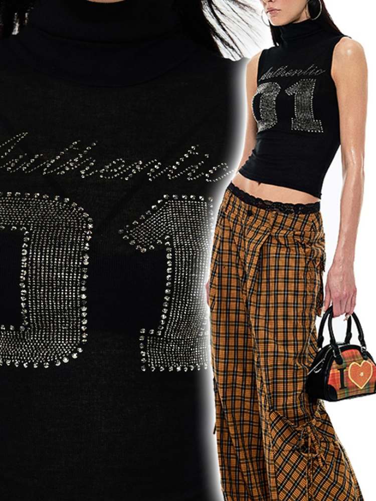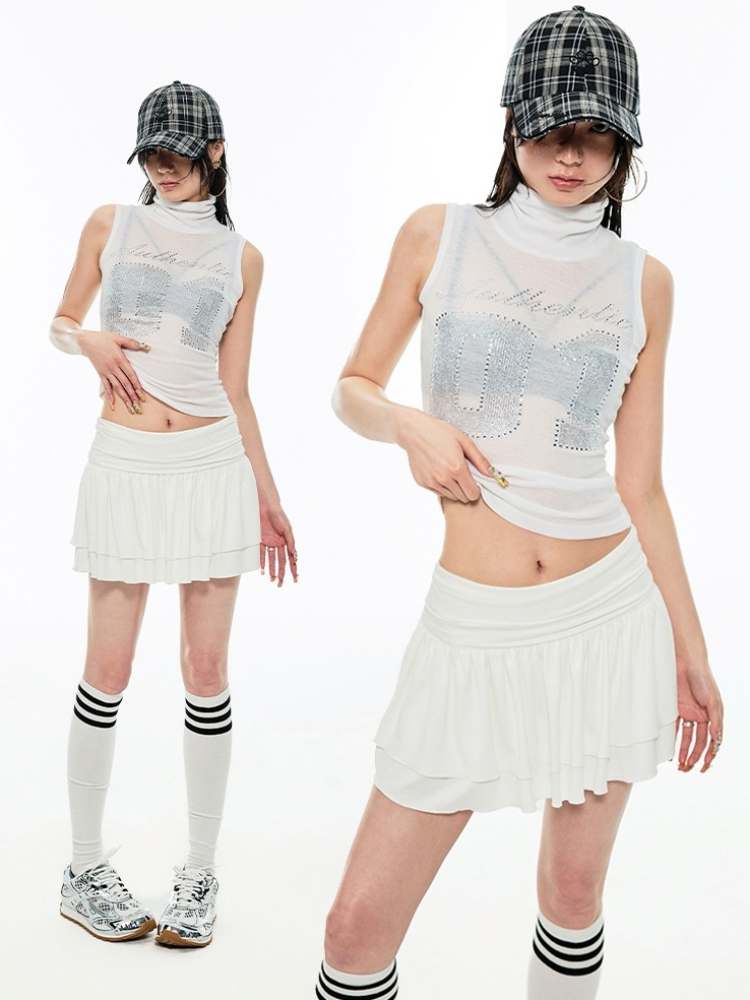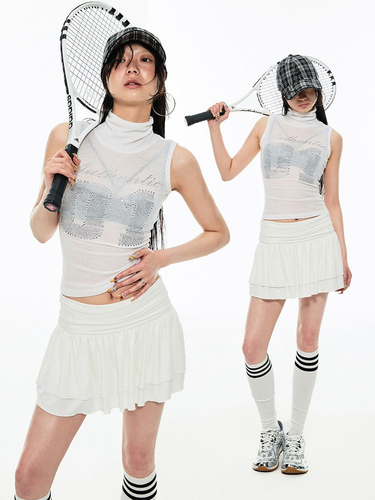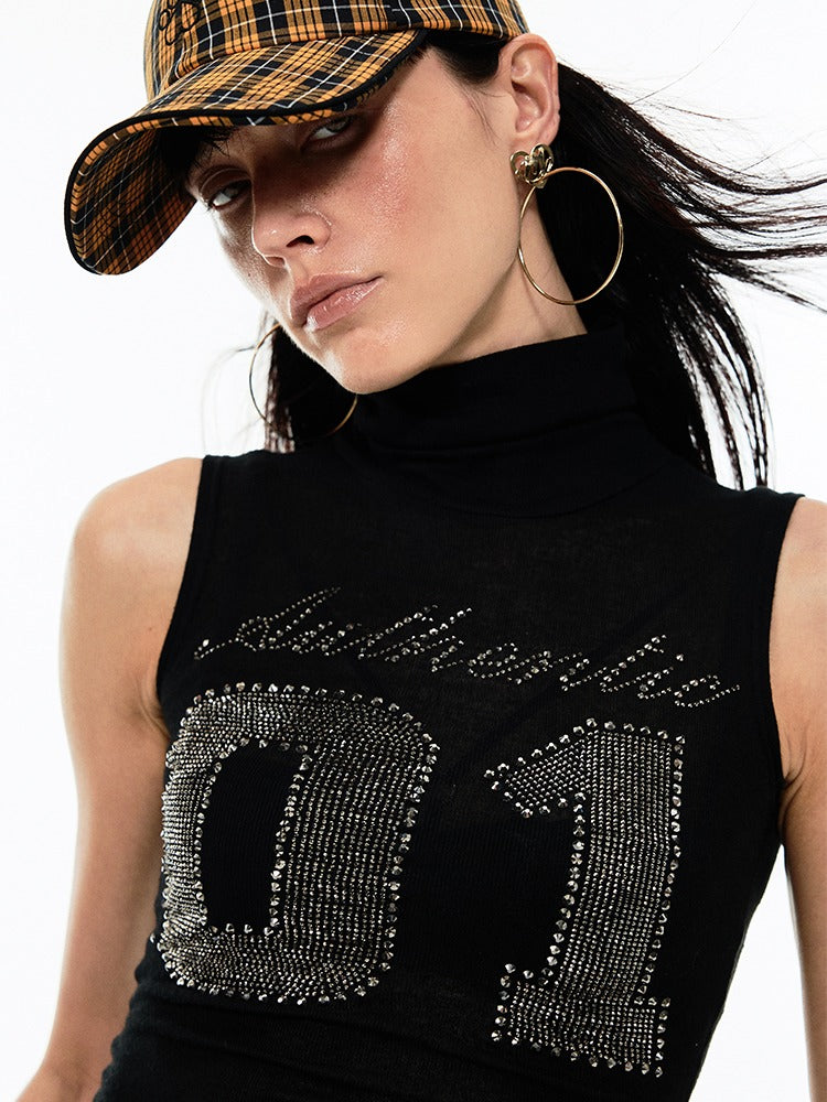 Rhinestone Numbers High Neck Mesh Vest【s0000009180】