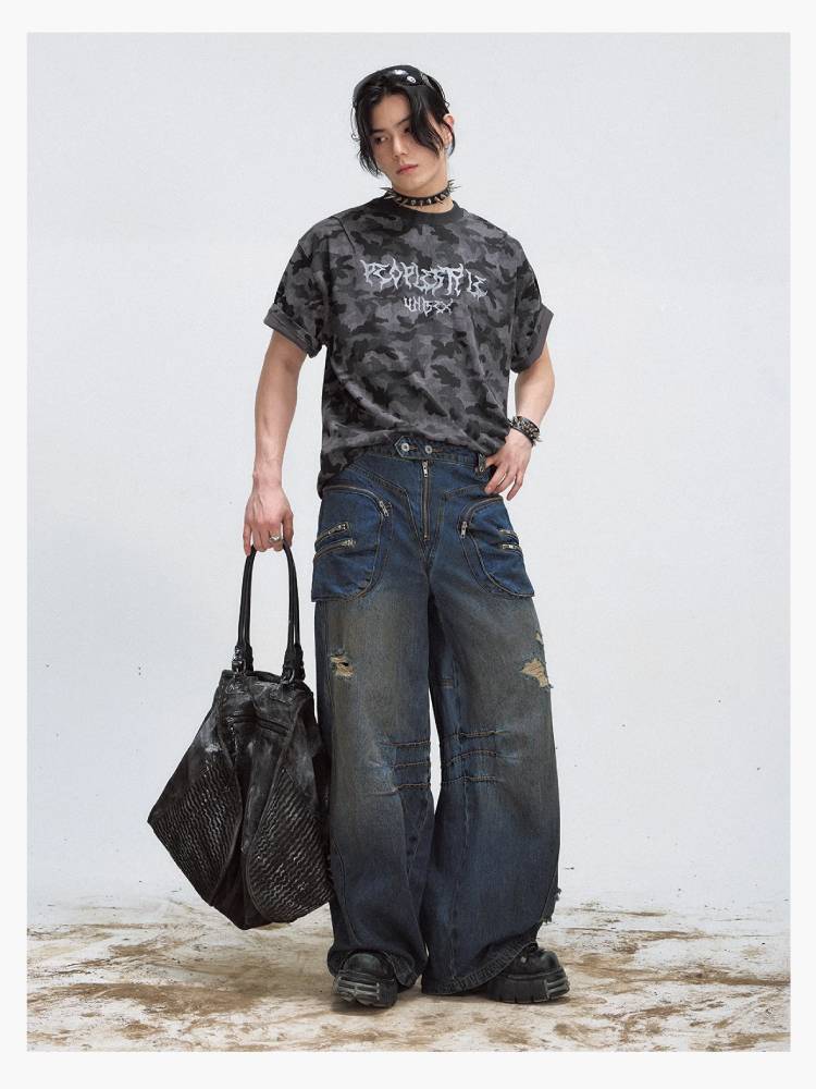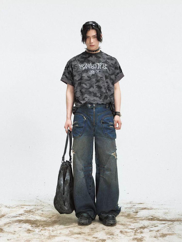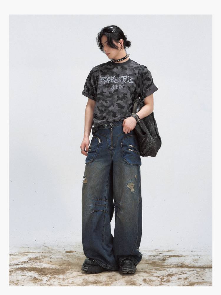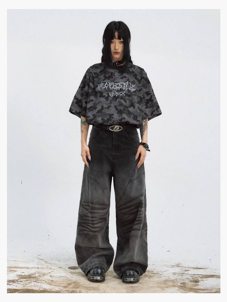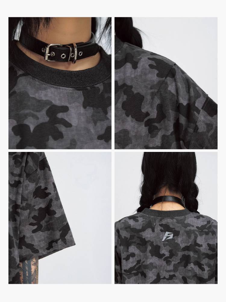 Camouflage print wash T-shirt【s0000009204】