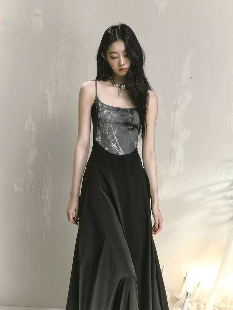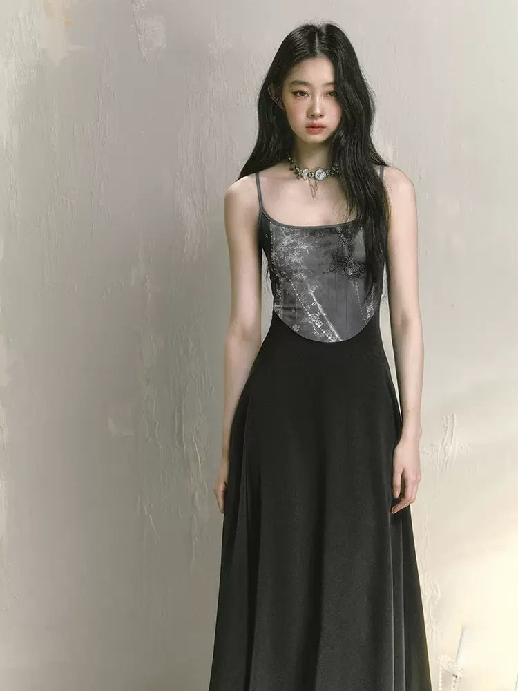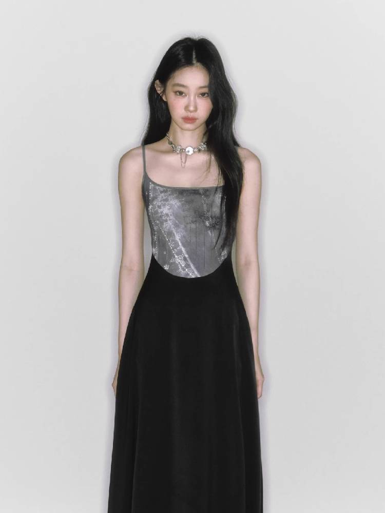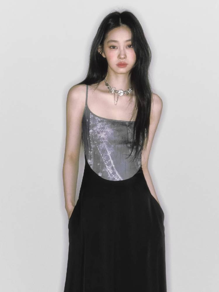 Printed suspender slim skirt【s0000009230】