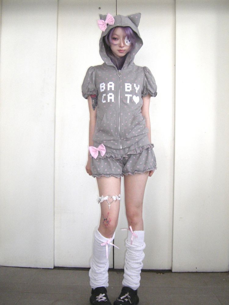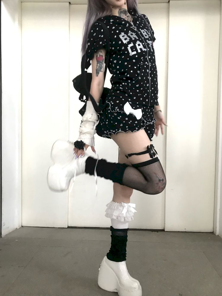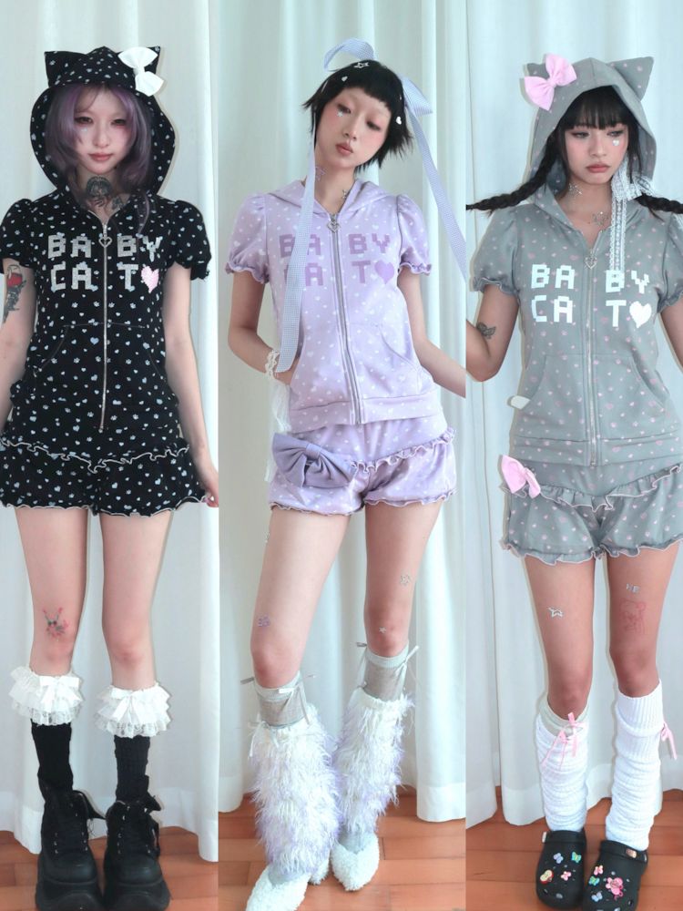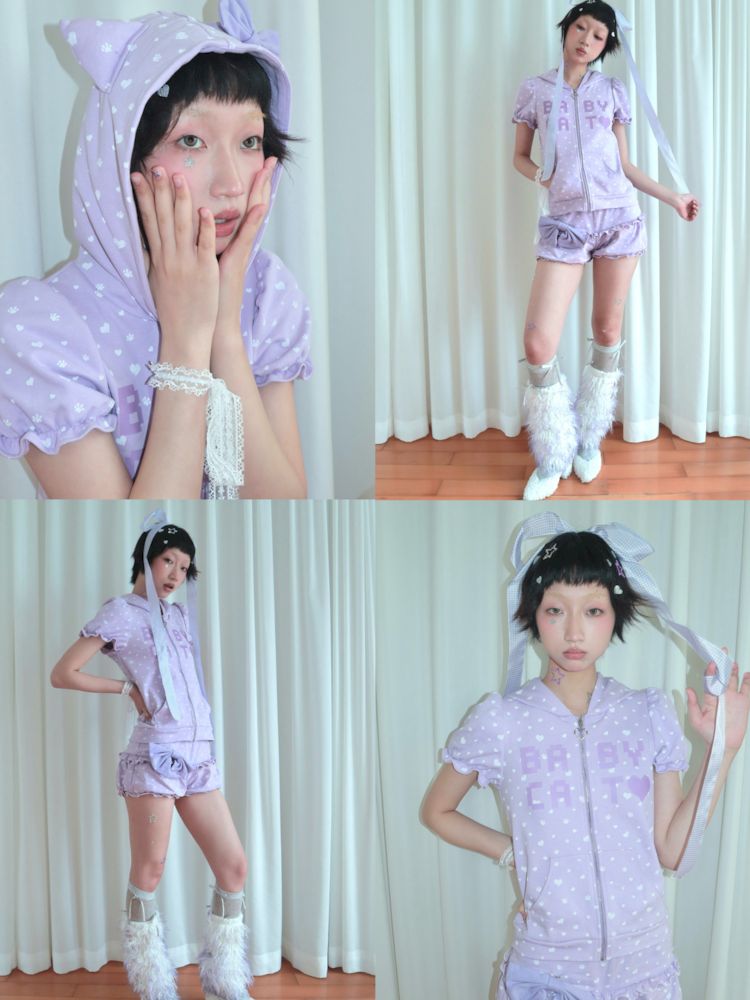 Bubble Sleeve Polka Dot Black White Purple Babycat Set【s0000009267】