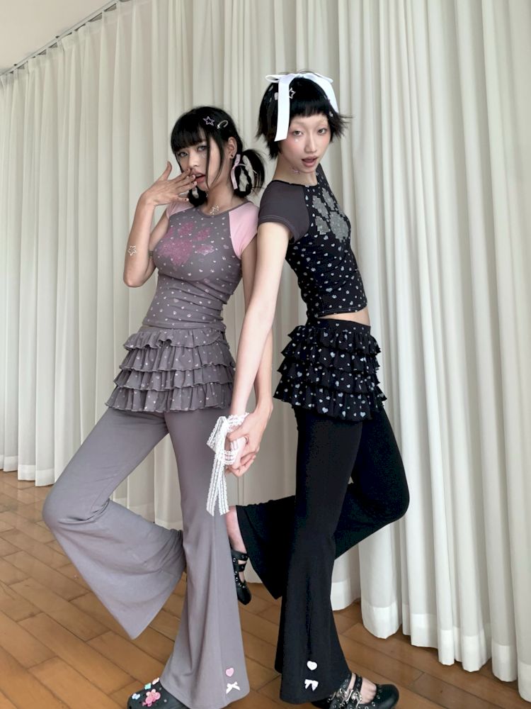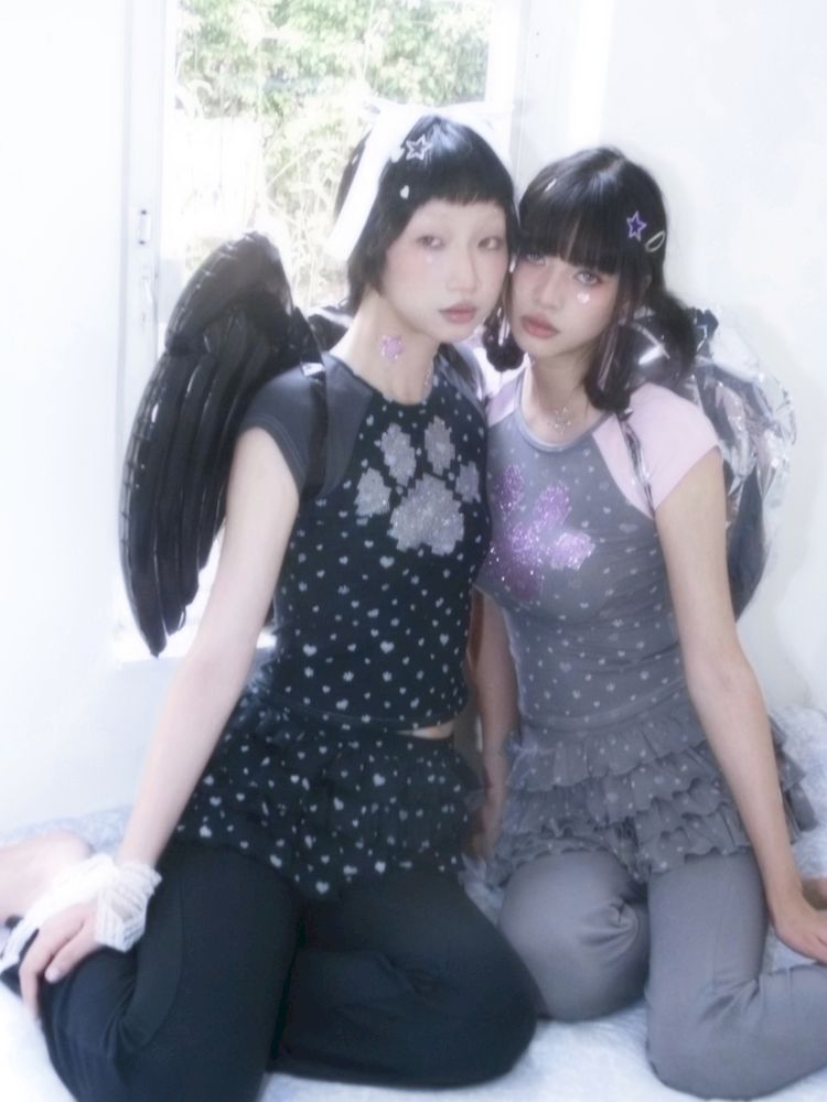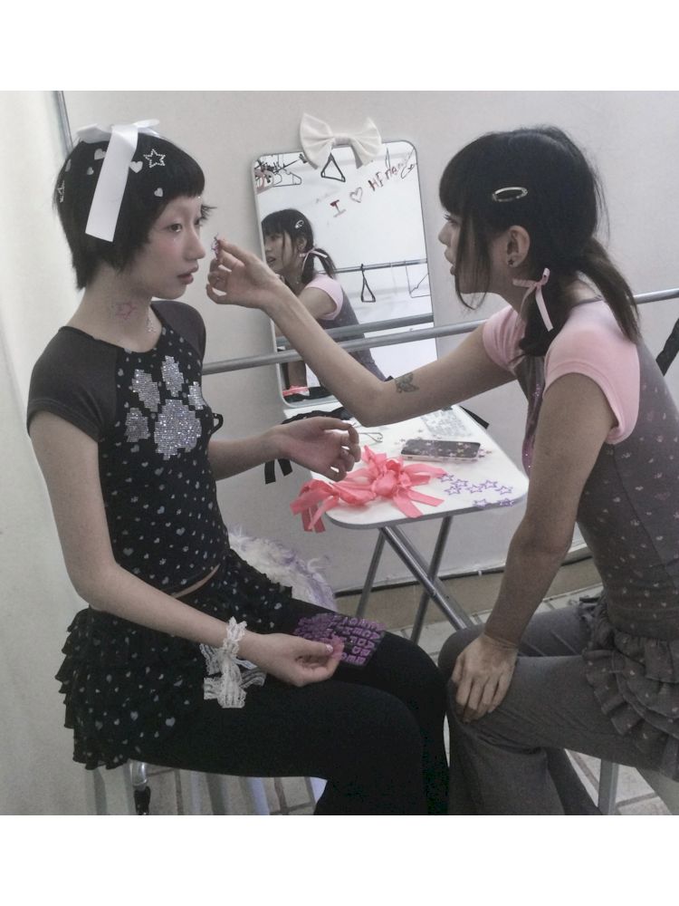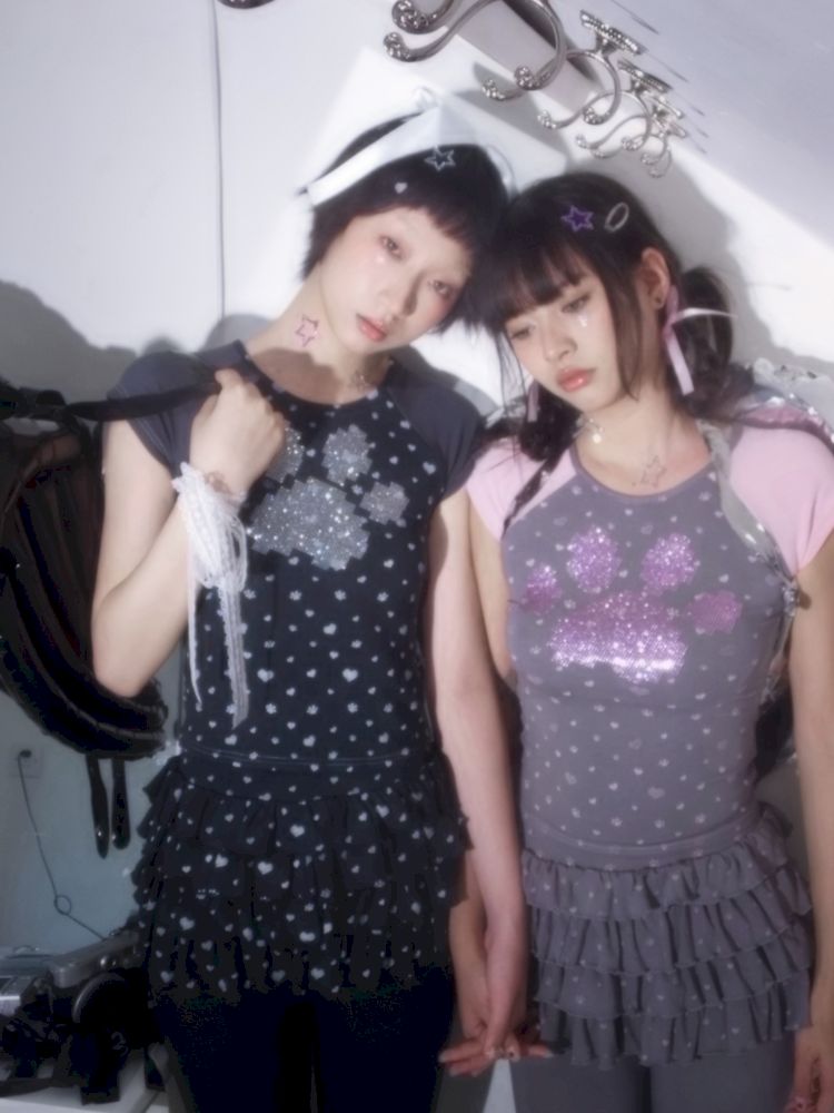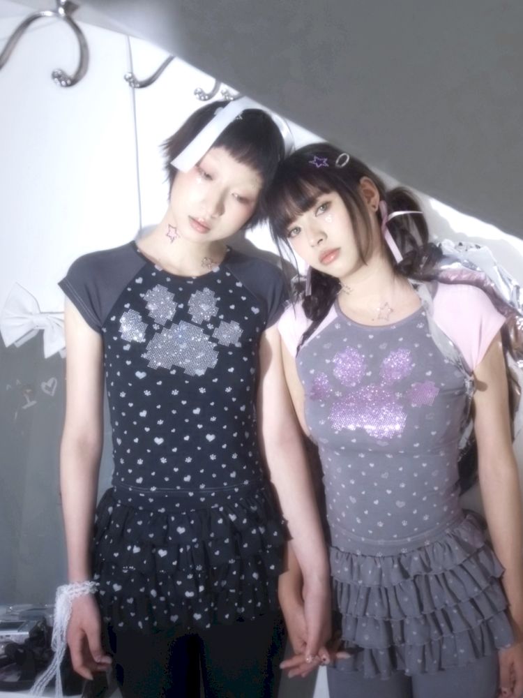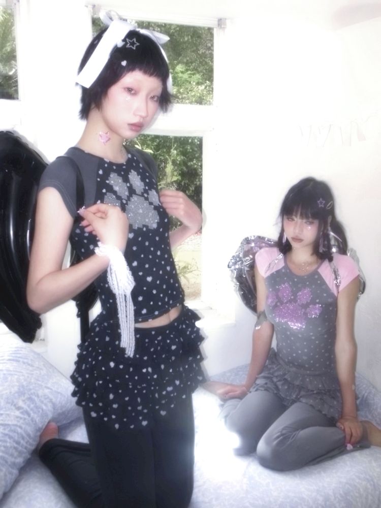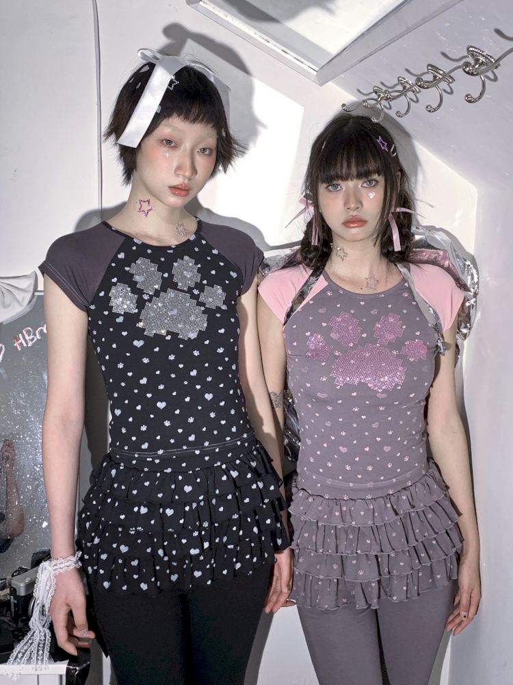 Cat Paw Love Mosaic Spice Girl Patchwork Short Sleeve【s0000009273】