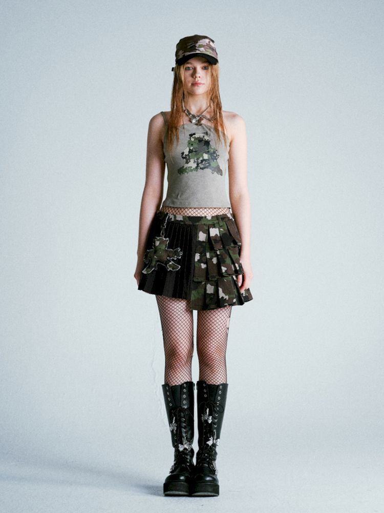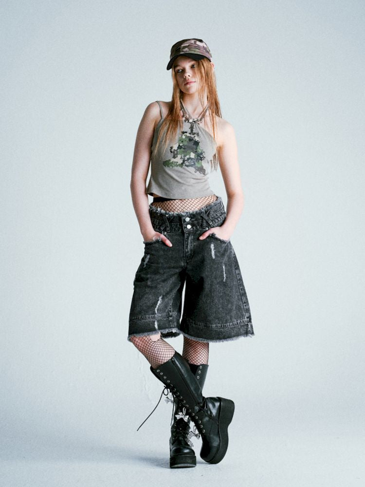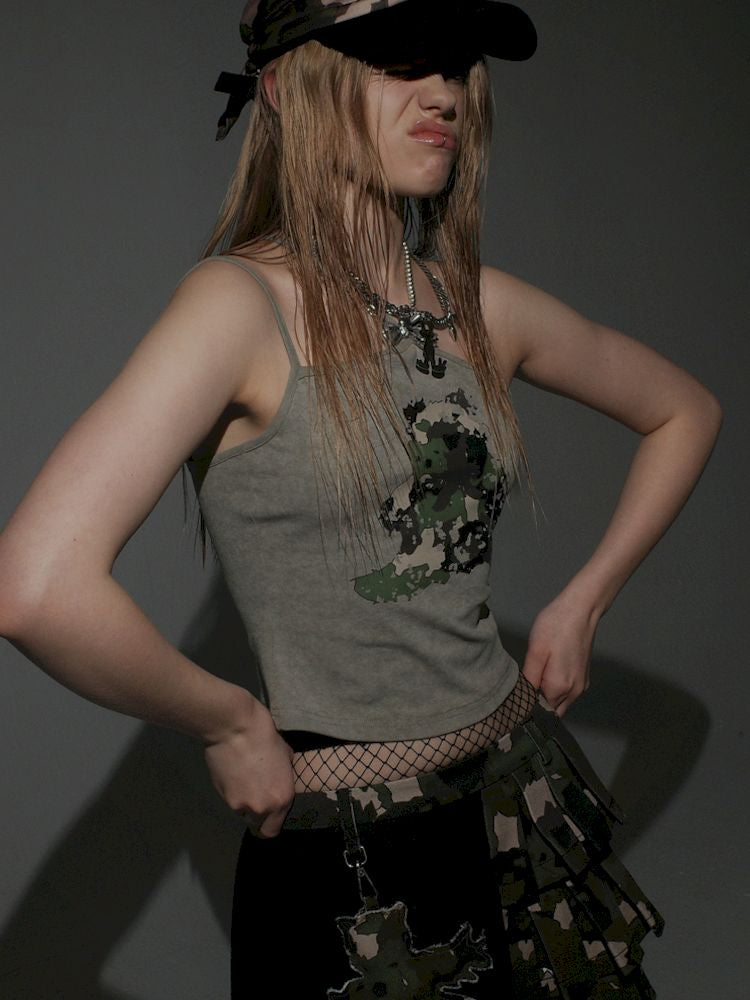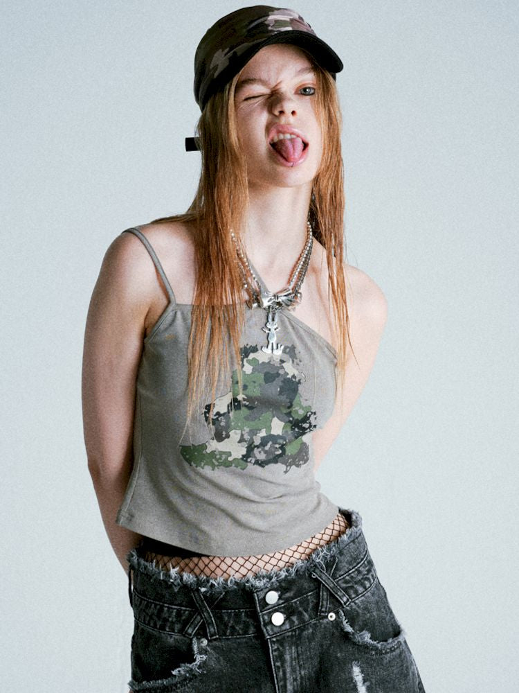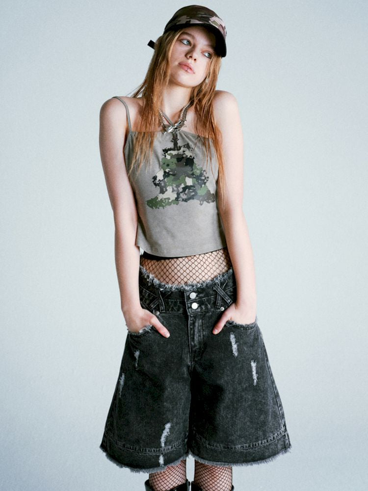 Slant Shoulder Bear Mottled Old Batik Stretch Suspenders【s0000009278】