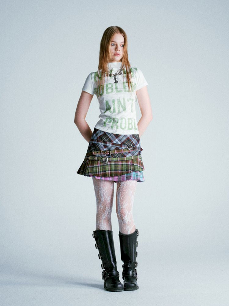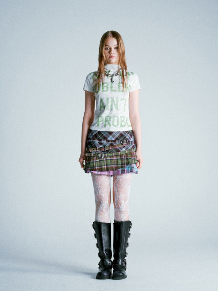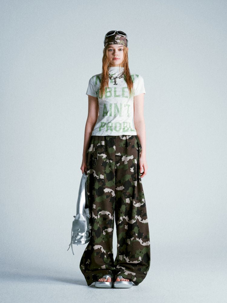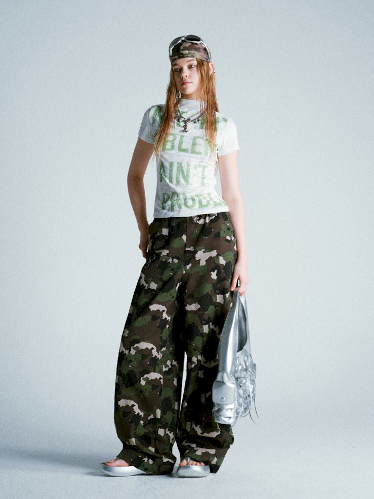 Mottled Green Alphabet All Over Stretch T-Shirt【s0000009279】