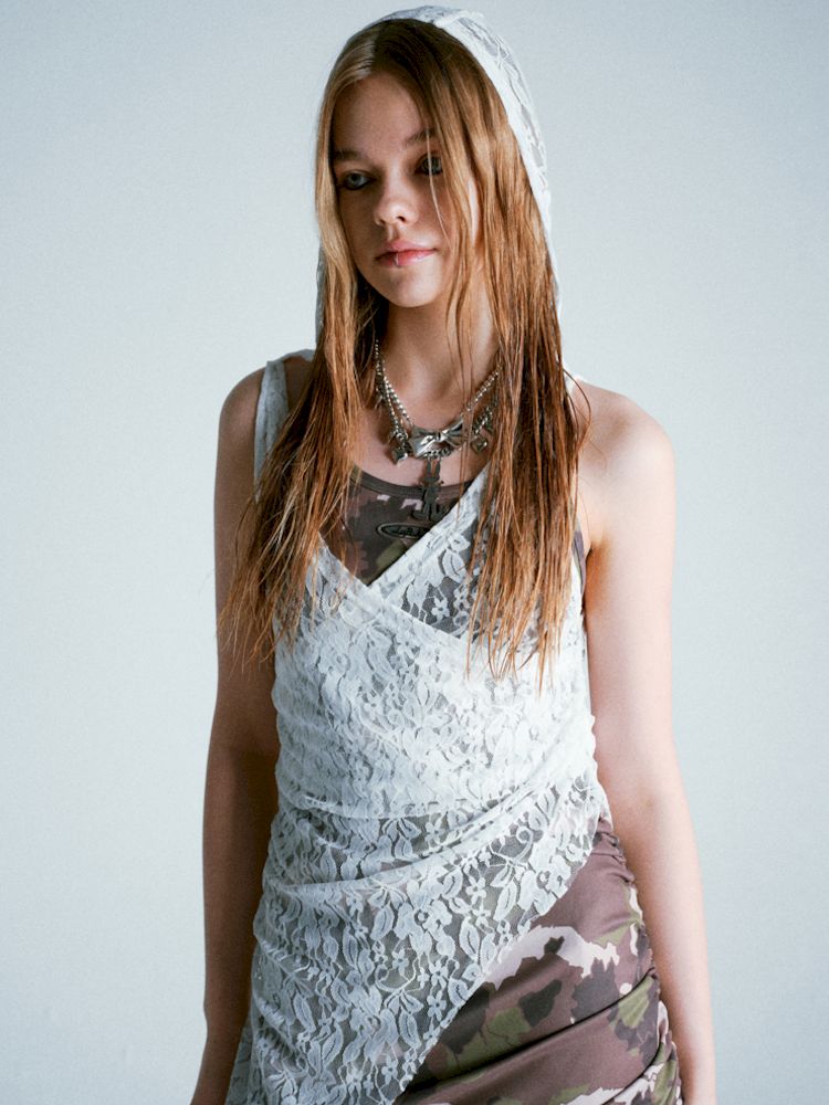 Lace Hooded Cowl Dress【s0000009285】