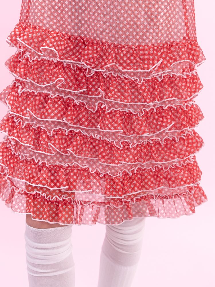 Red Plaid Mesh Undershirt Dress【s0000009322】