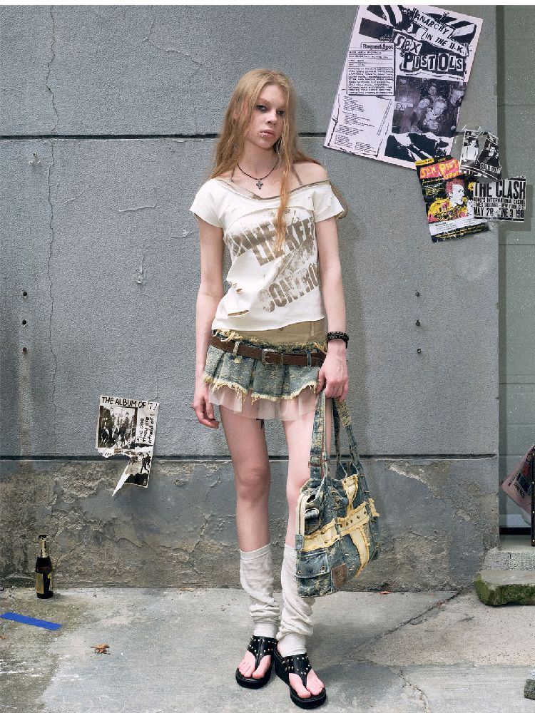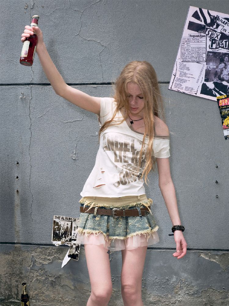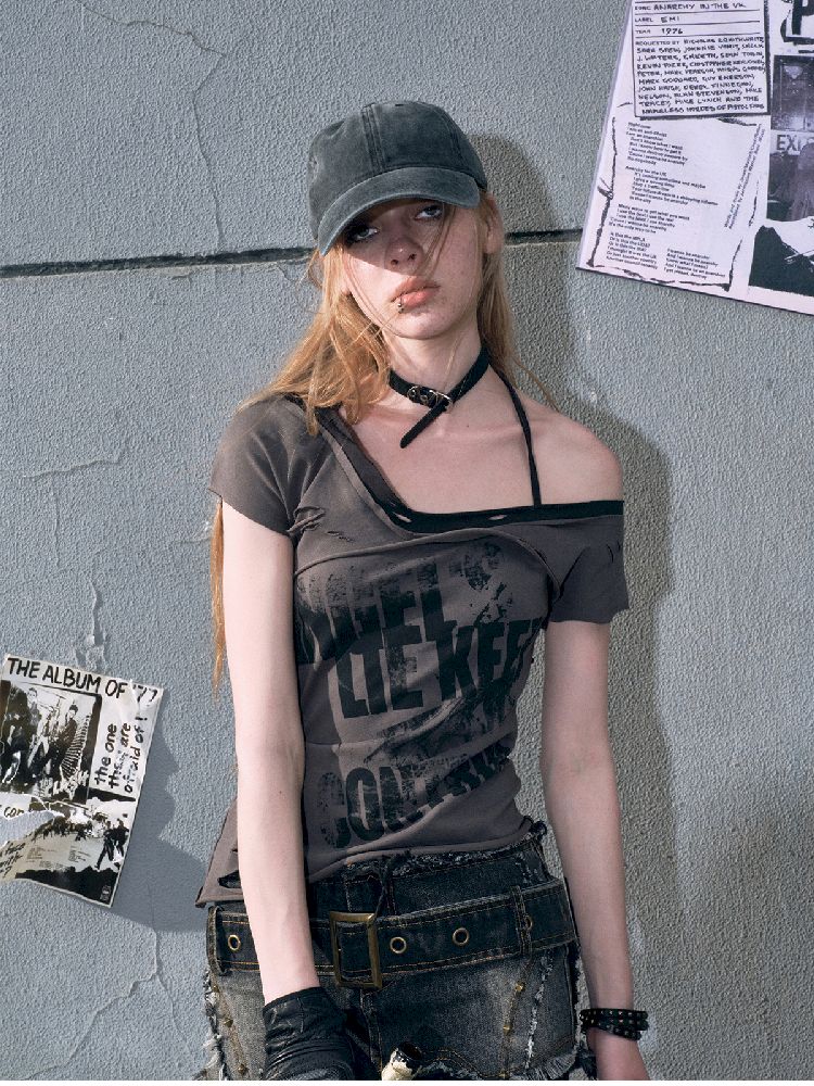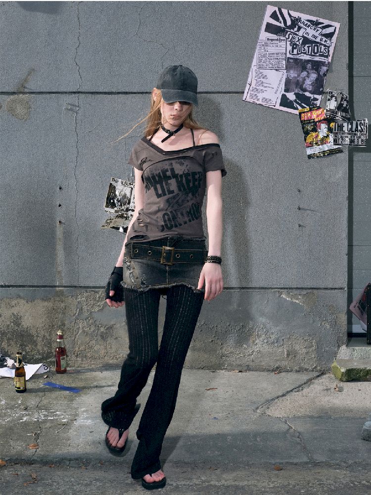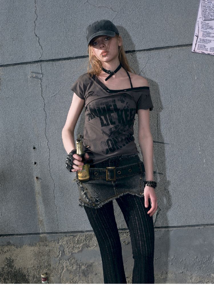 "Crooked" Raw Edge Graffiti T-Shirt【s0000009366】