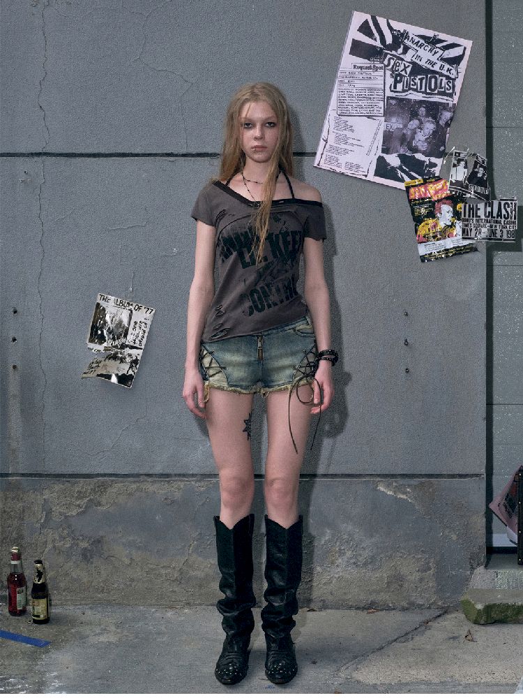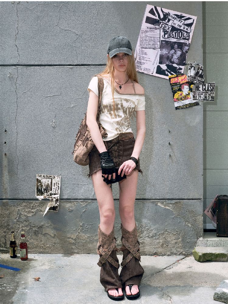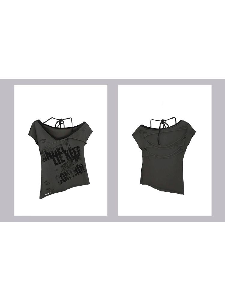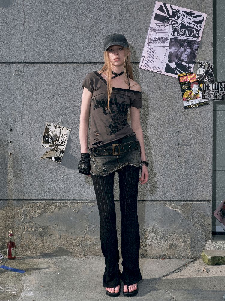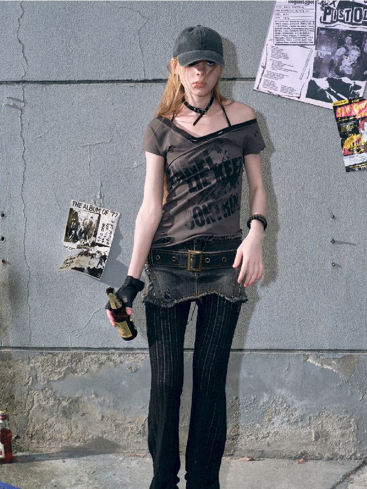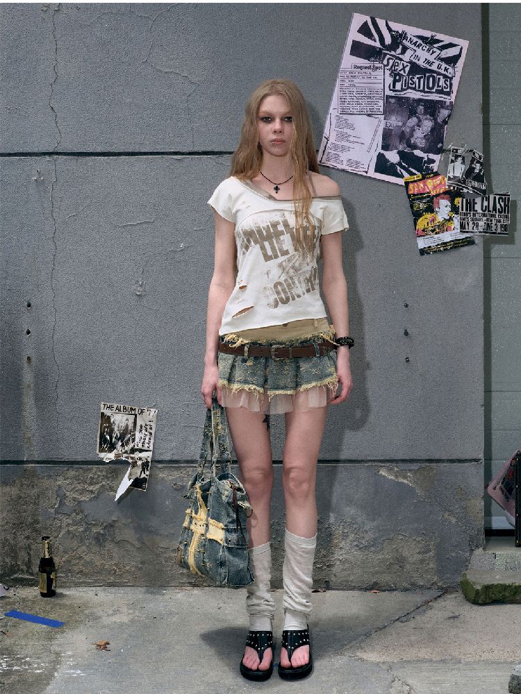 "Crooked" Raw Edge Graffiti T-Shirt【s0000009366】