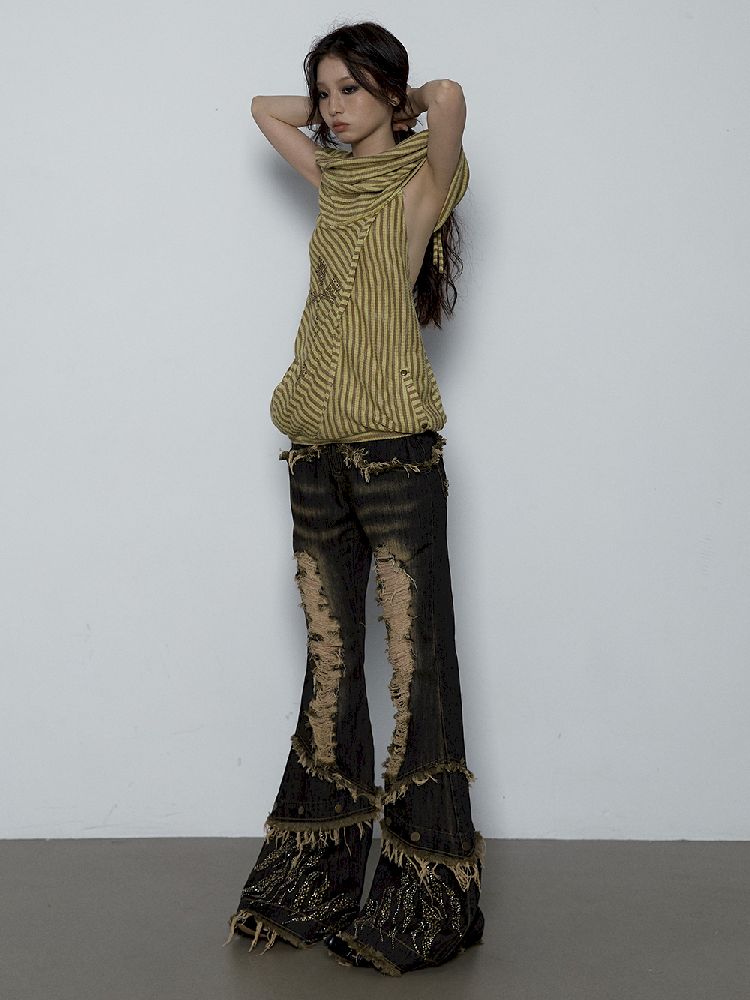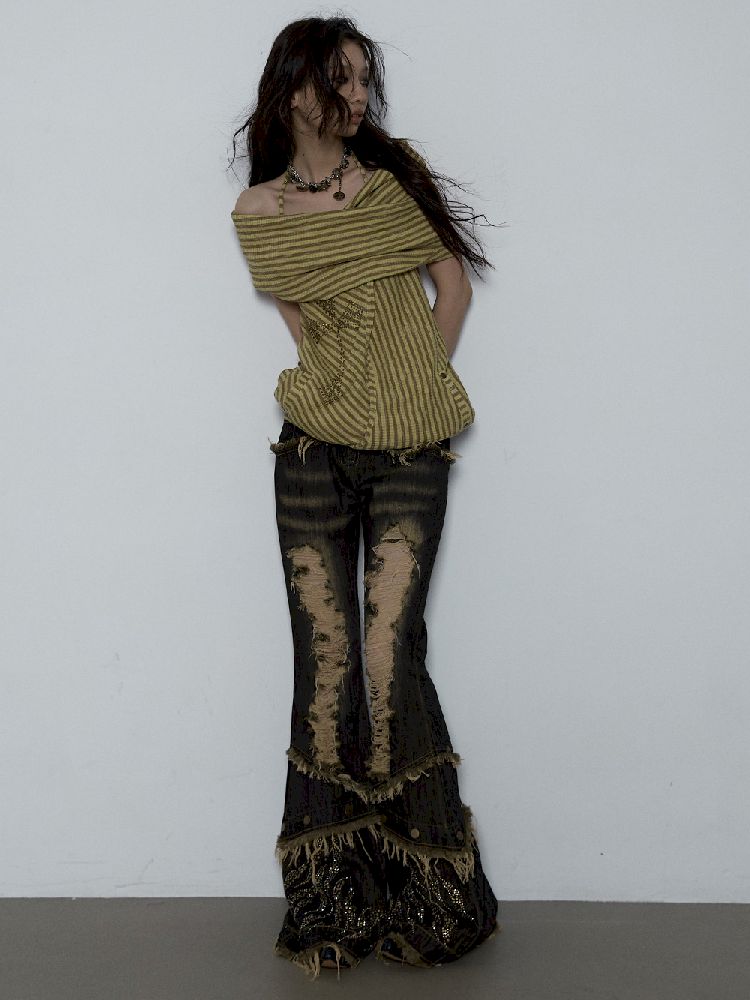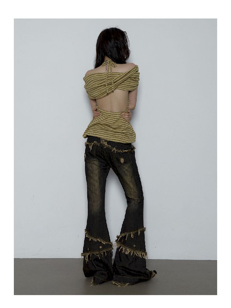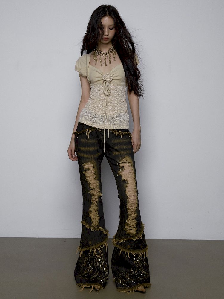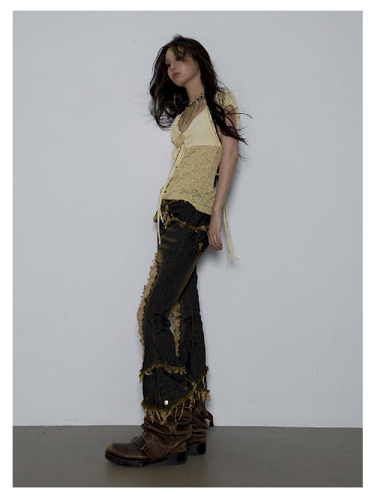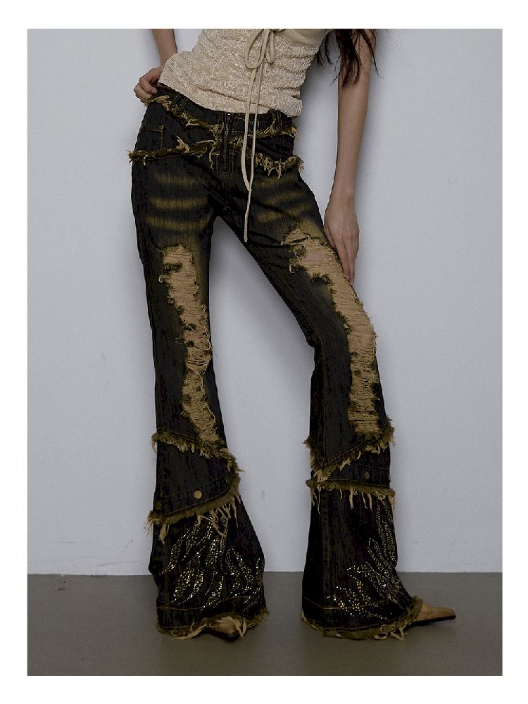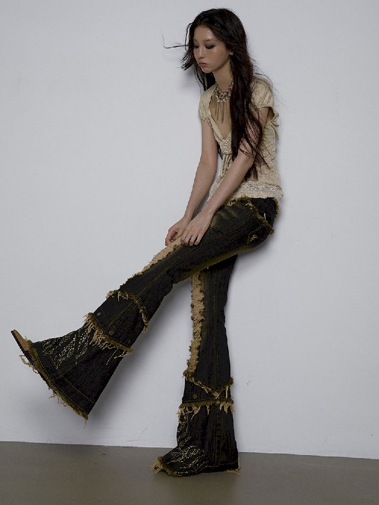 Low Waisted Two Wear Flared Jeans Jeans【s0000009381】