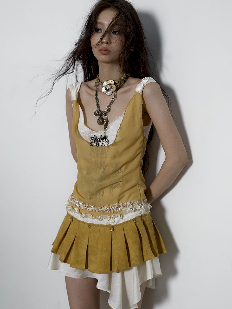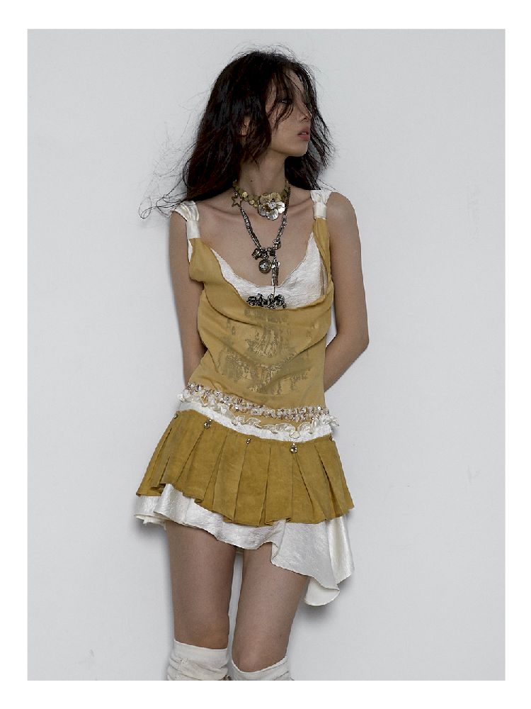 False Two Piece Spliced Irregular Halter Printed Dress【s0000009385】