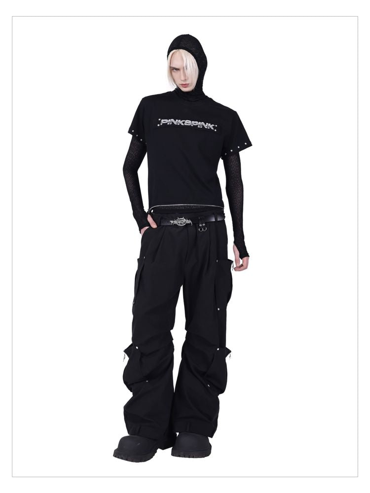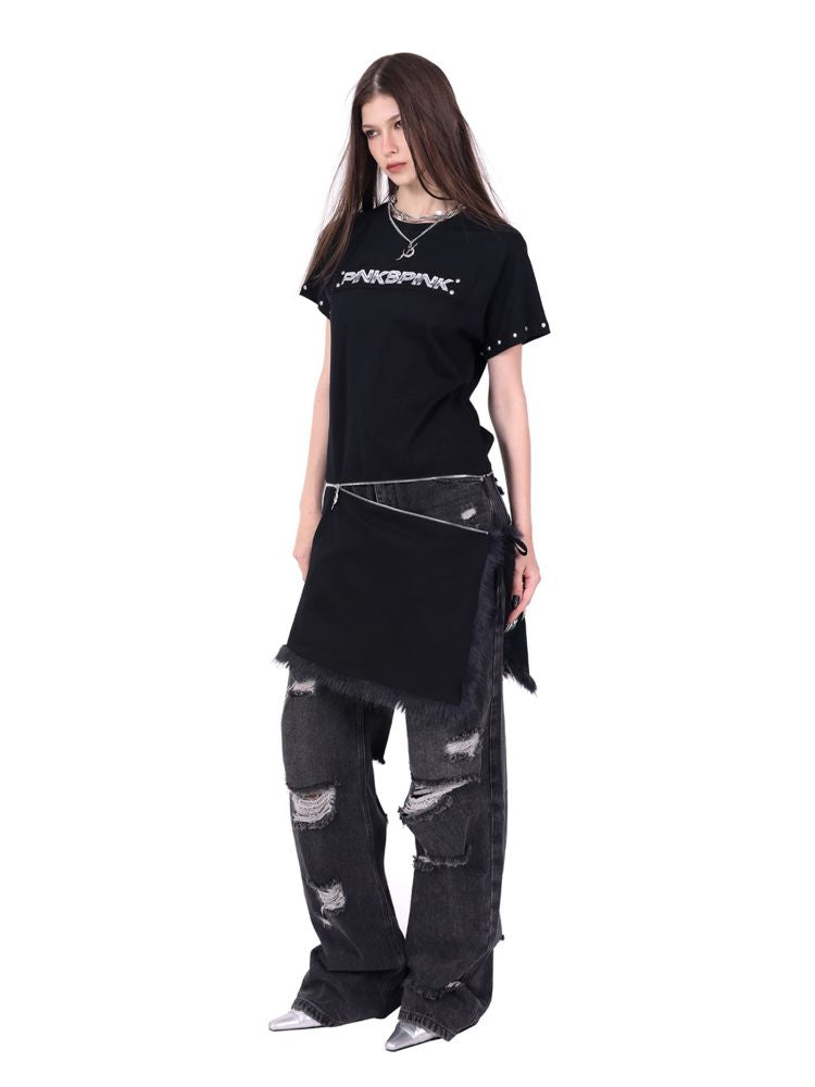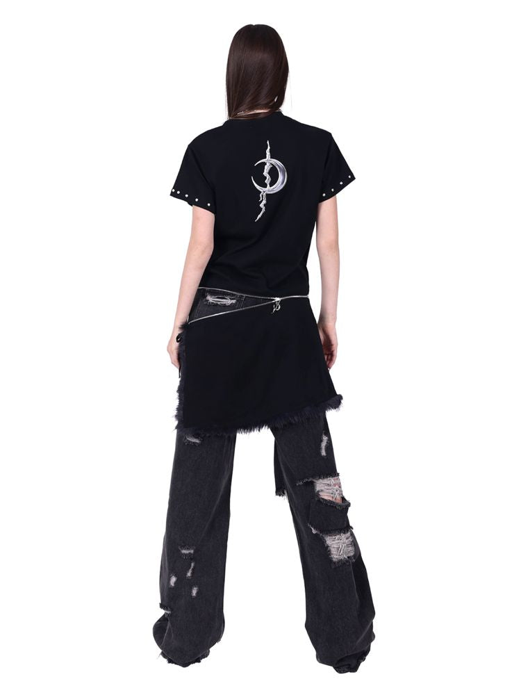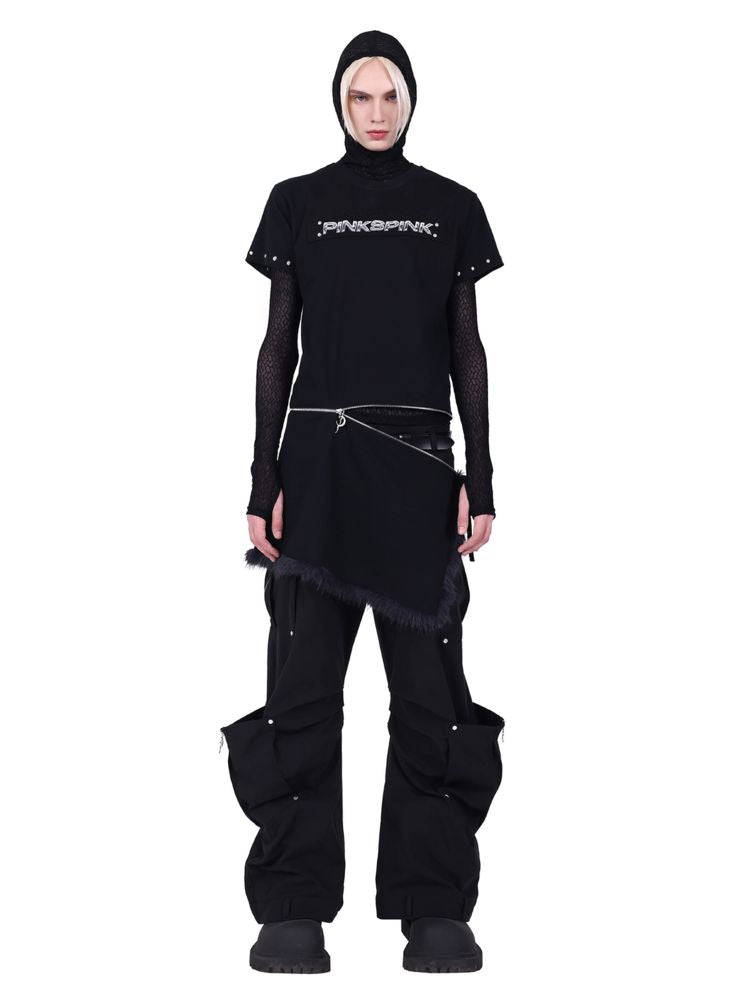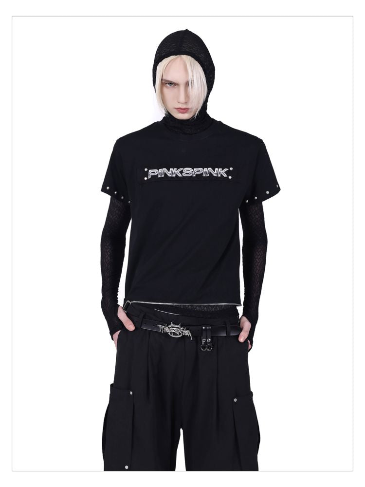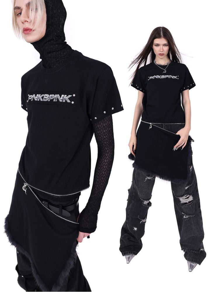 Studded Zip Slim Split Genderless Short Sleeve【s0000009398】