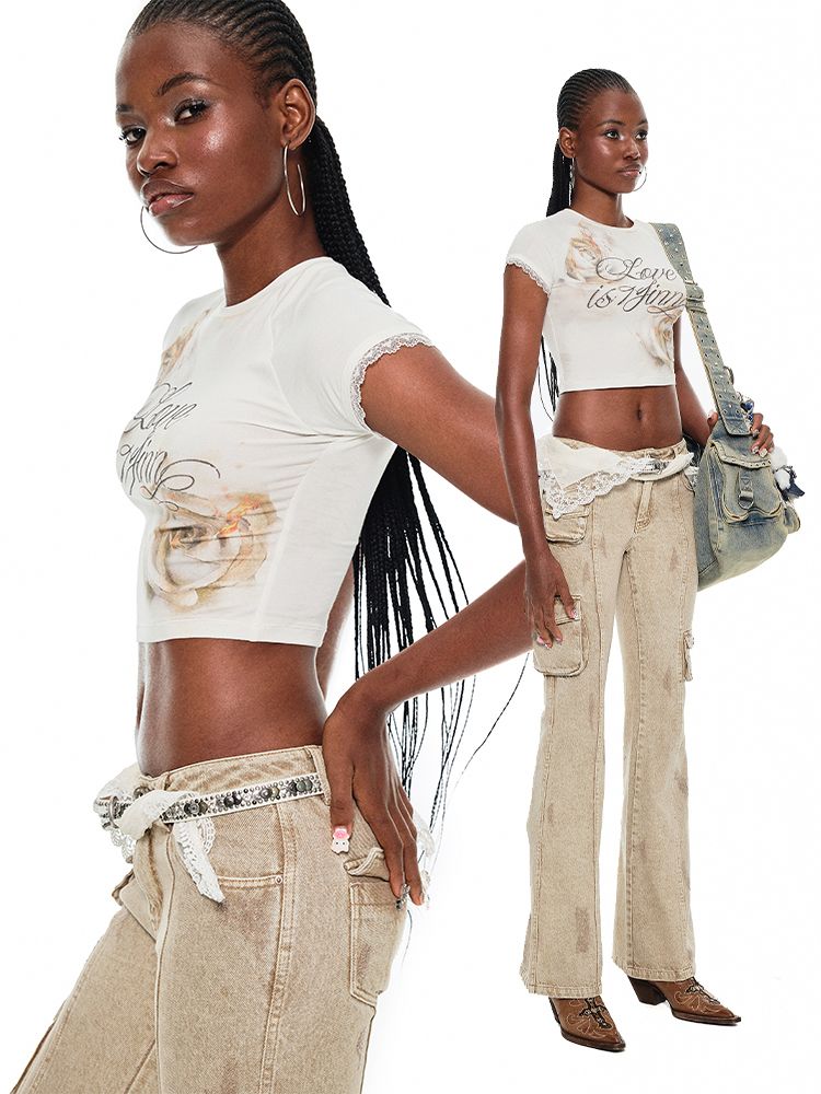 Lace Short Sleeve Skinny T-Shirt【s0000009443】