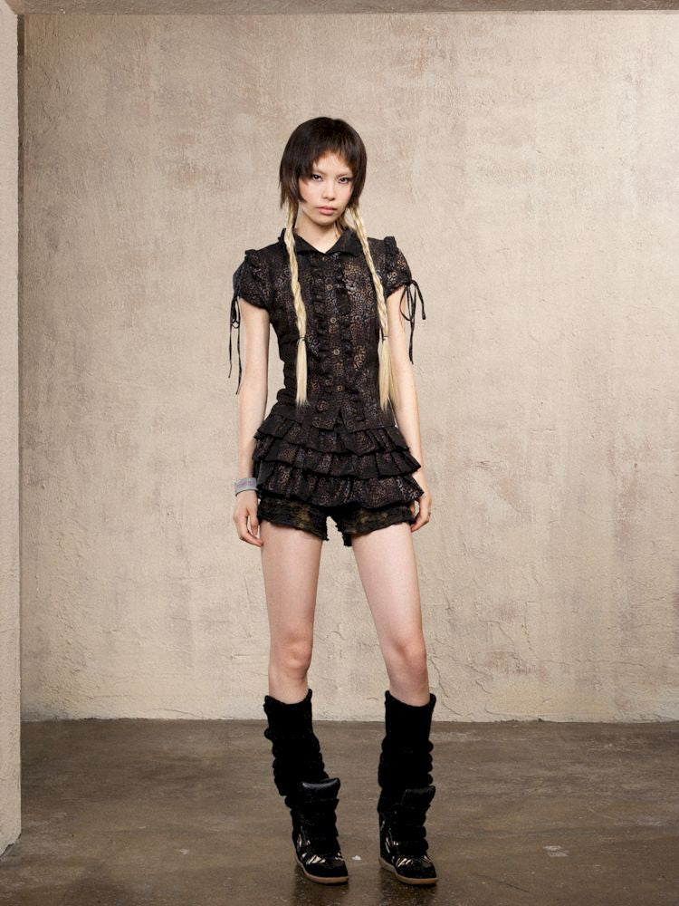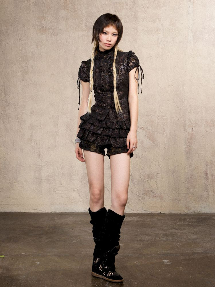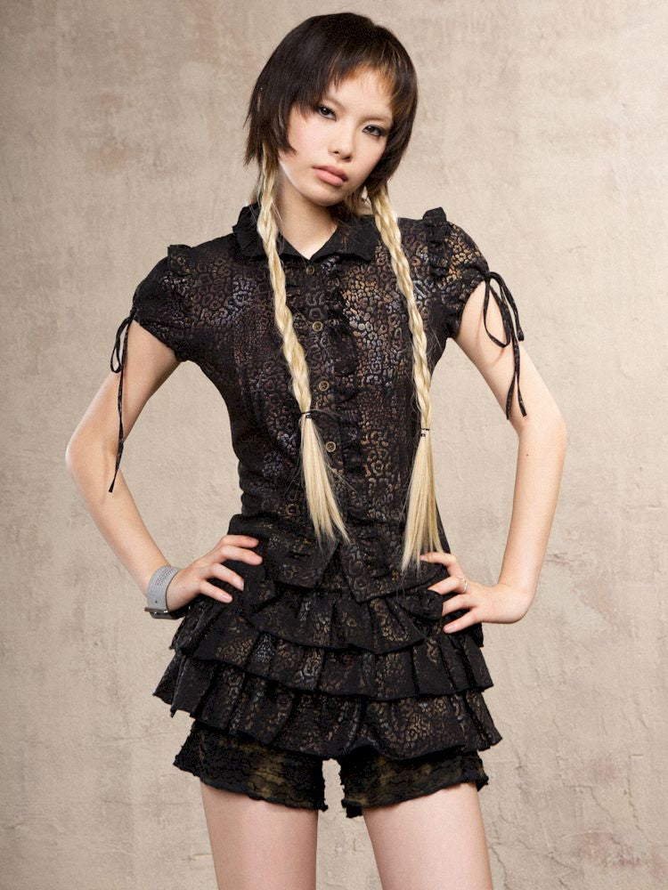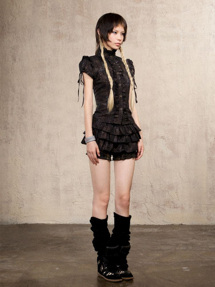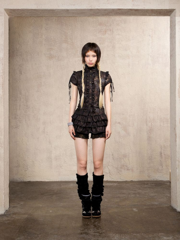 Slim Standing Collar Leopard Shirt Blouse【s0000009476】