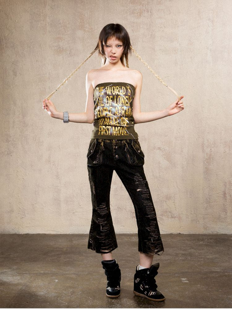 Heavy duty brushed gold low-rise casual denim【s0000009480】