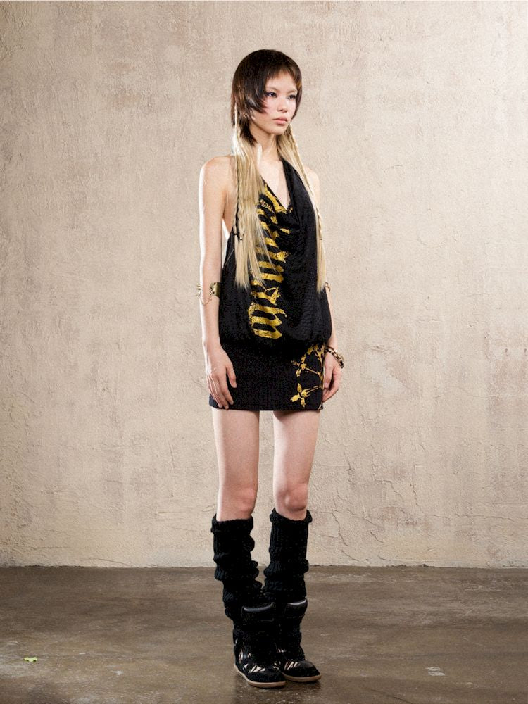 Stamped Hanging Neck Swing Neck Dress【s0000009484】