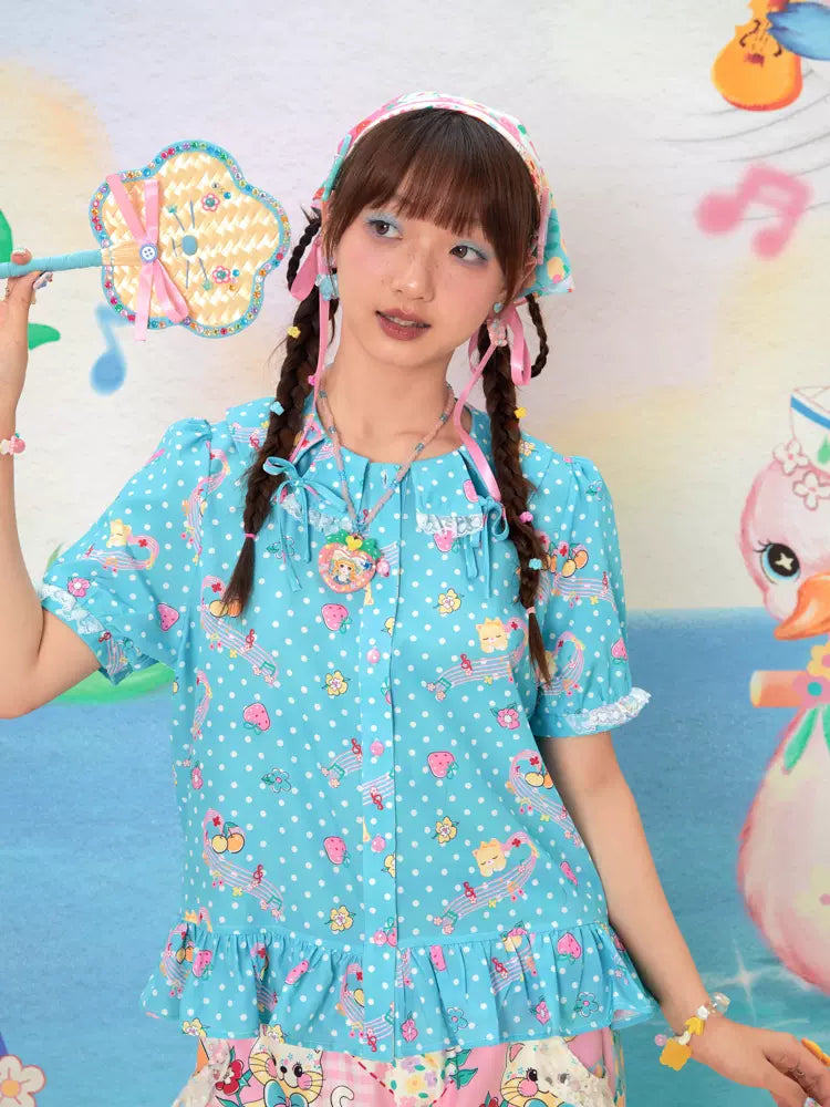 Blue cat print shirt【s0000009534】