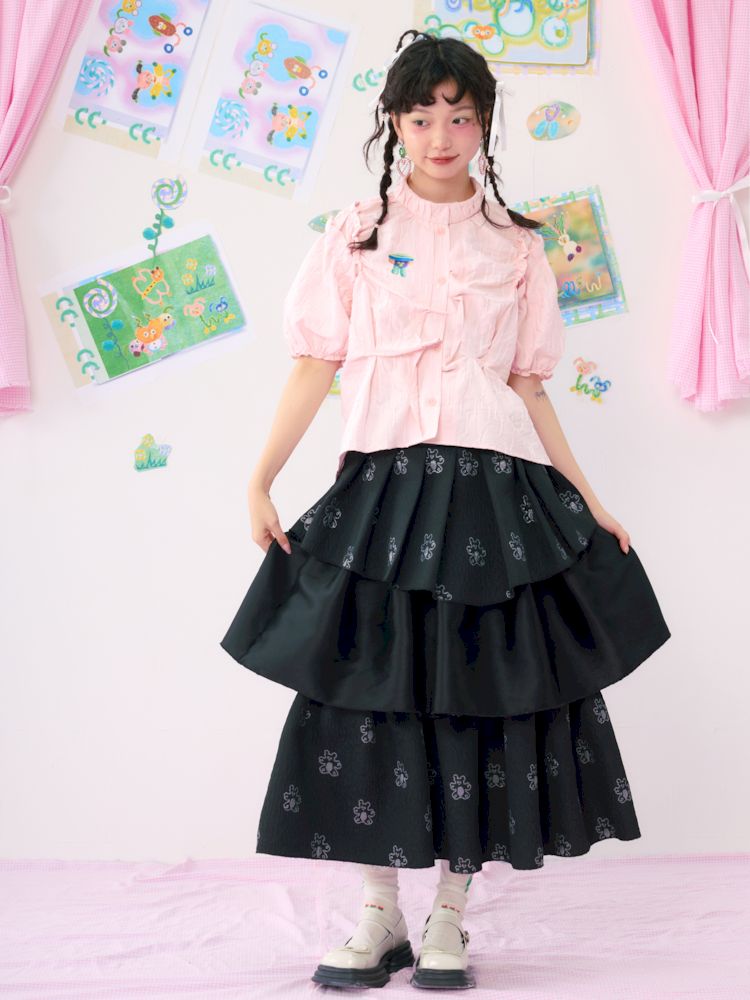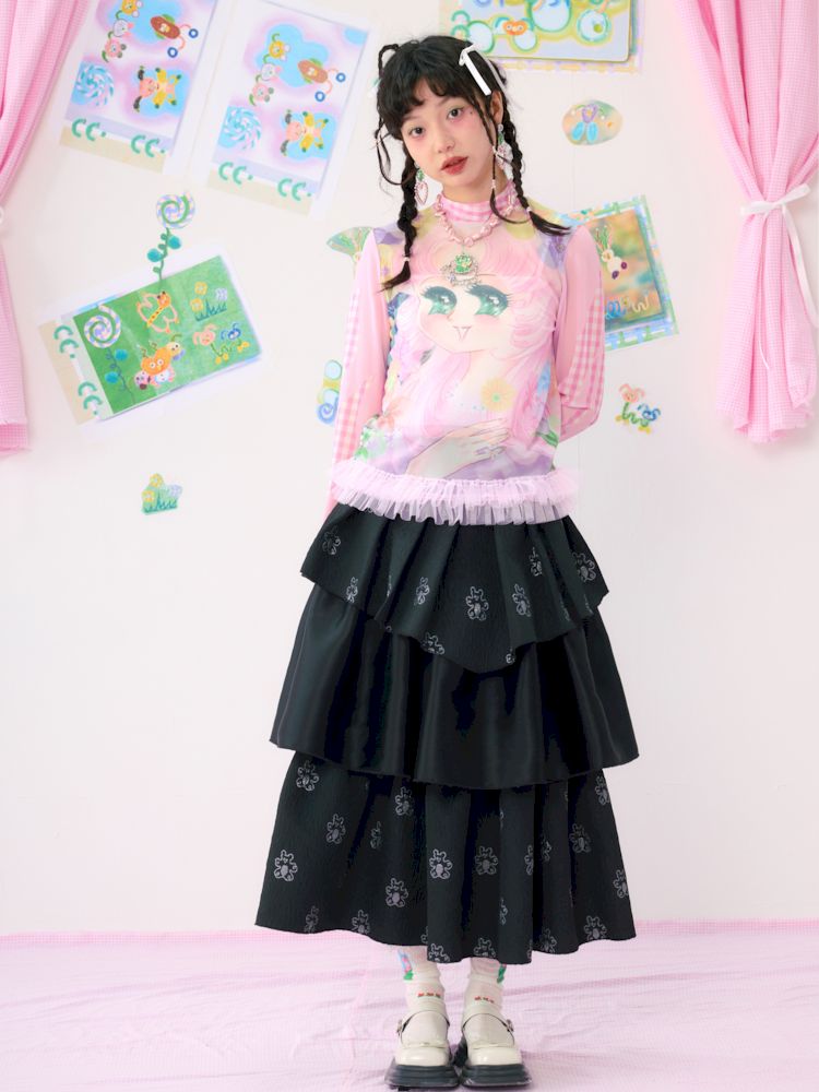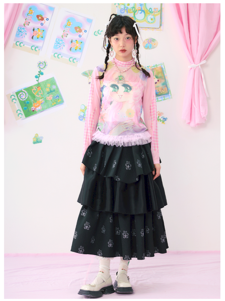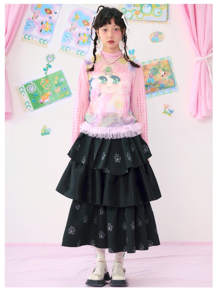 Jacquard Fabric Patchwork Large Silhouette Halter Skirt【s0000009543】