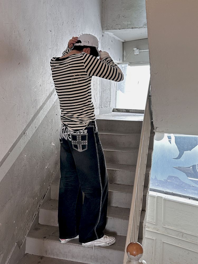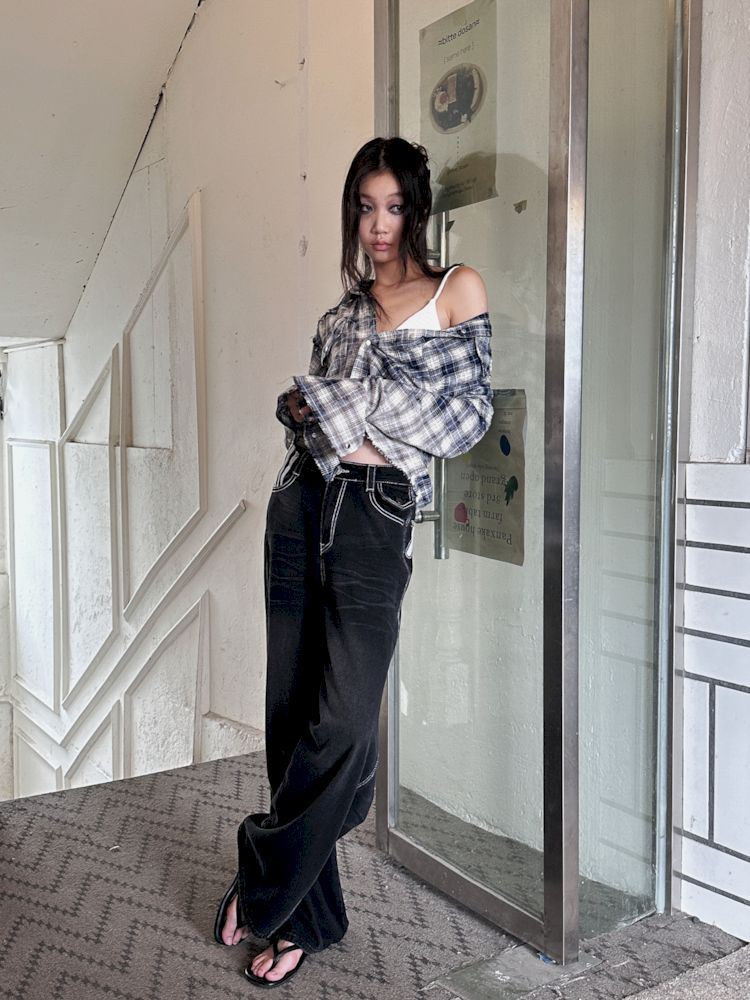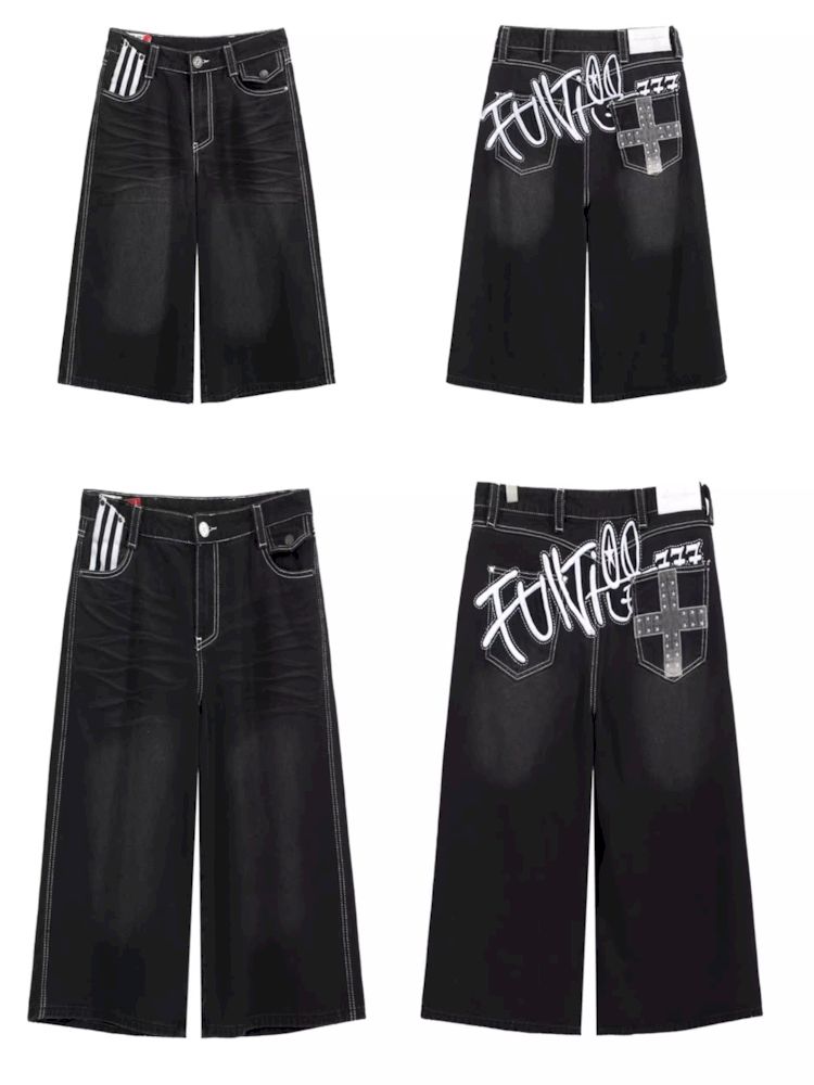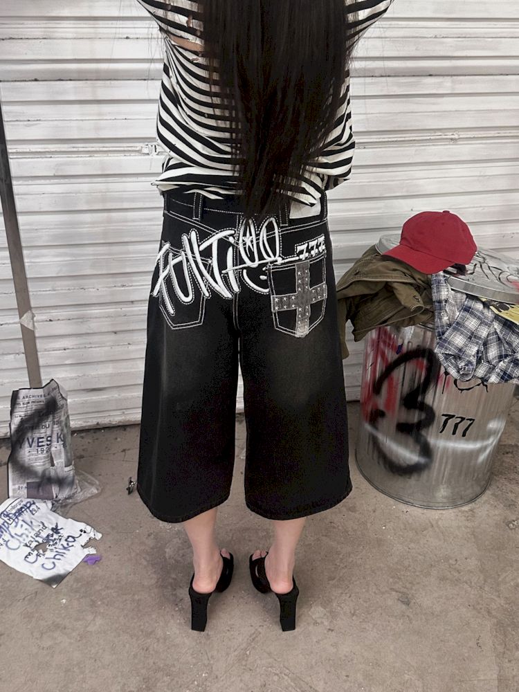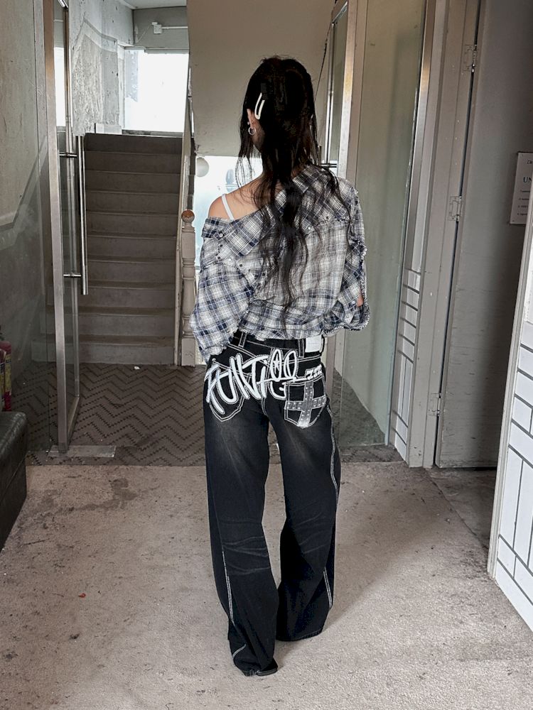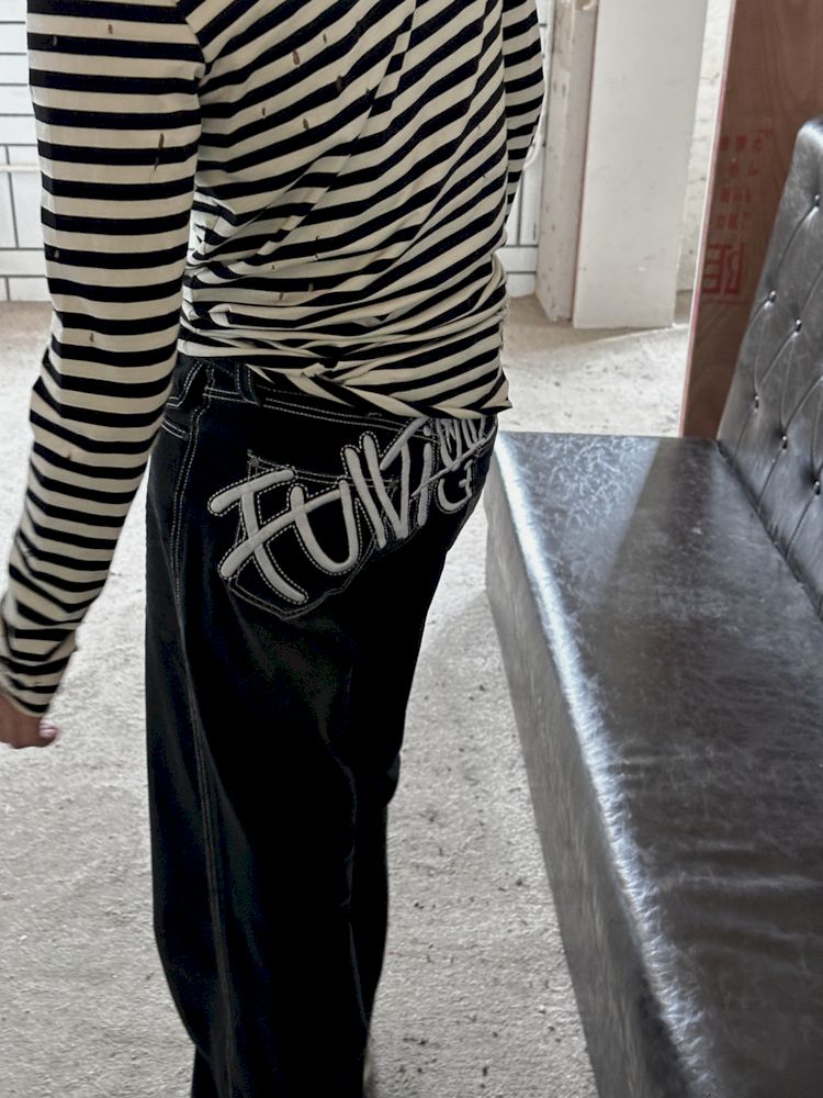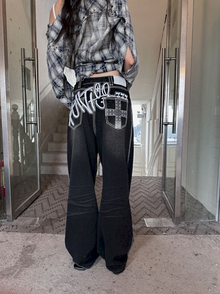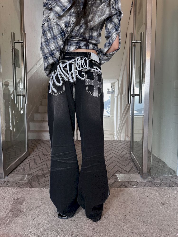 Minimalist Embroidered Washed Wide Leg Jeans【s0000009573】