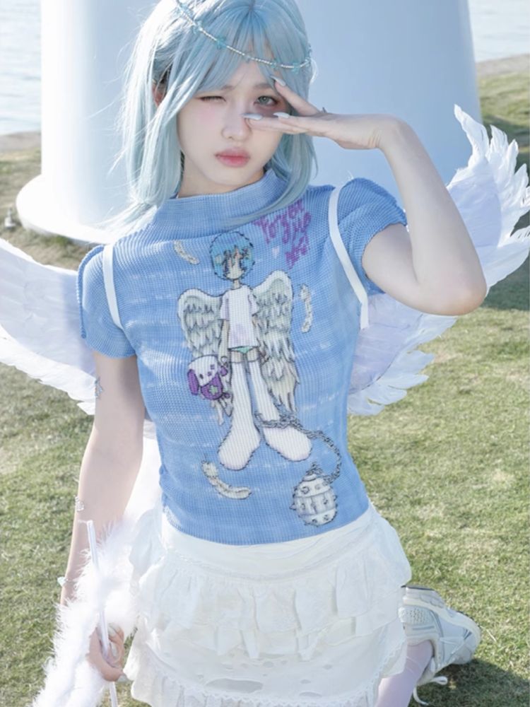 Angel Check Short Sleeve Ruffle Shirt【s0000009578】