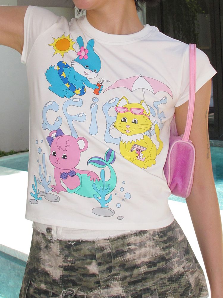 Animal Pool Party Printed T-Shirt【s0000009605】