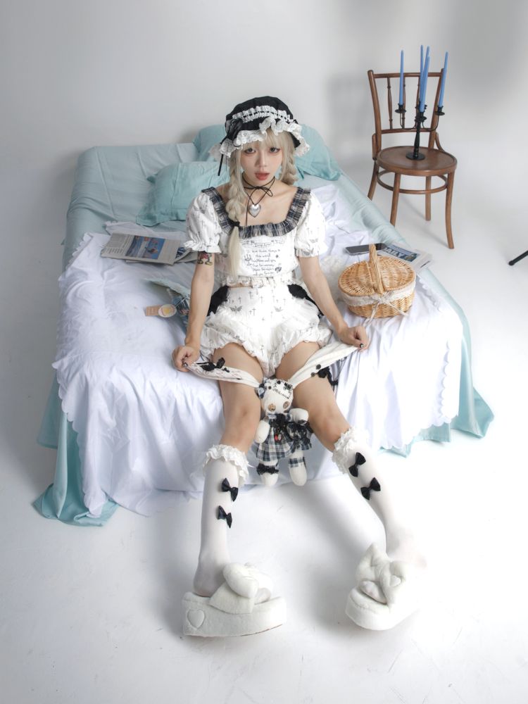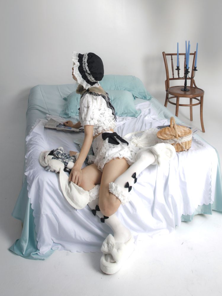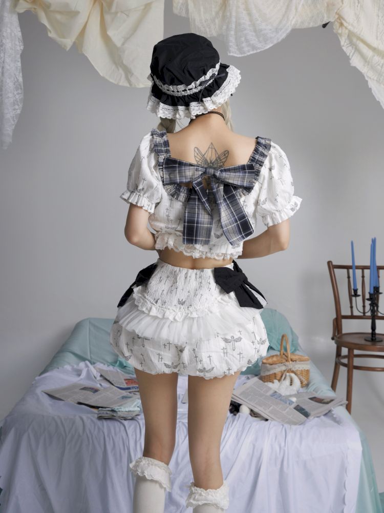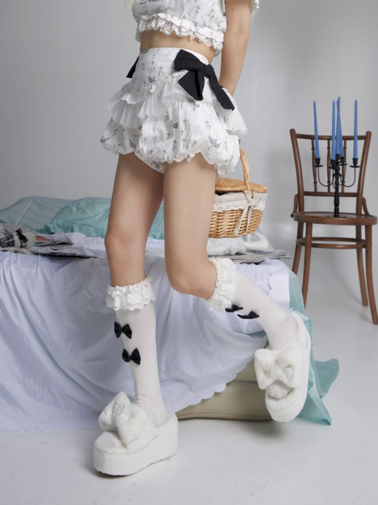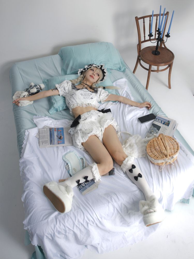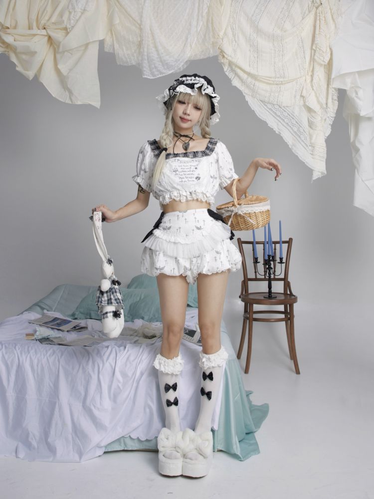 Big Bow Lace Bubble Sleeve Short Top【s0000009679】