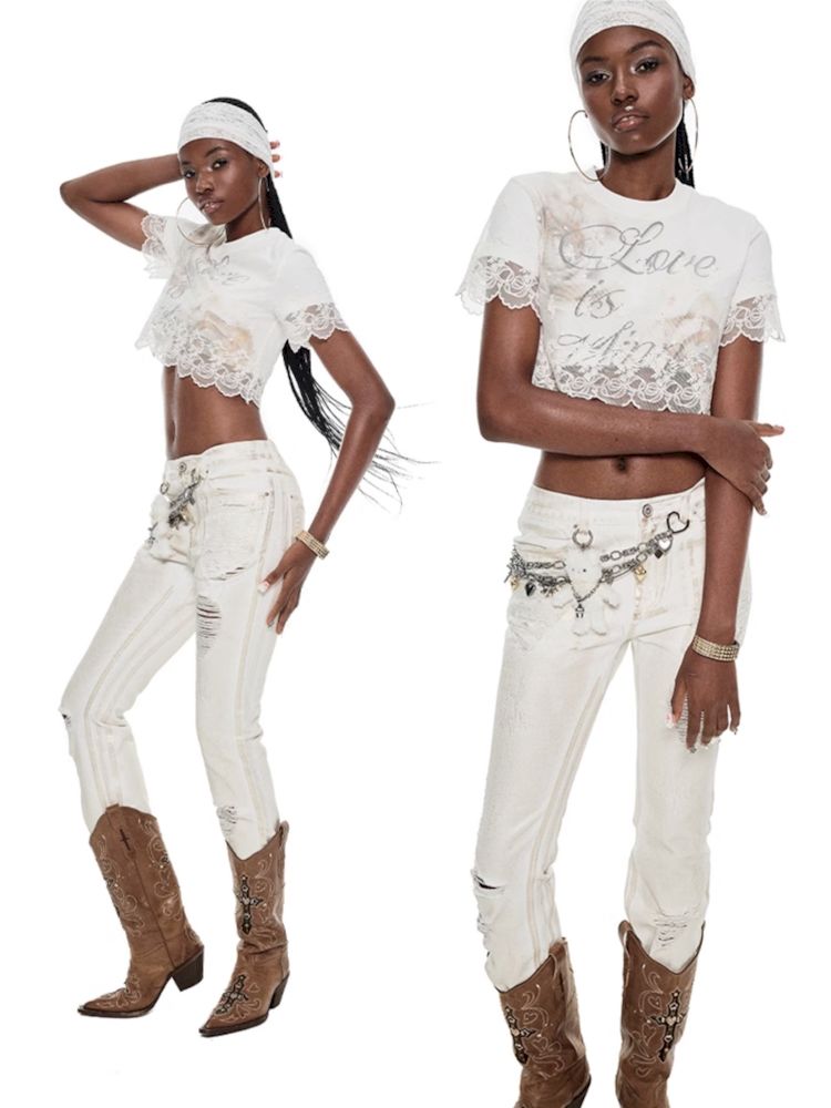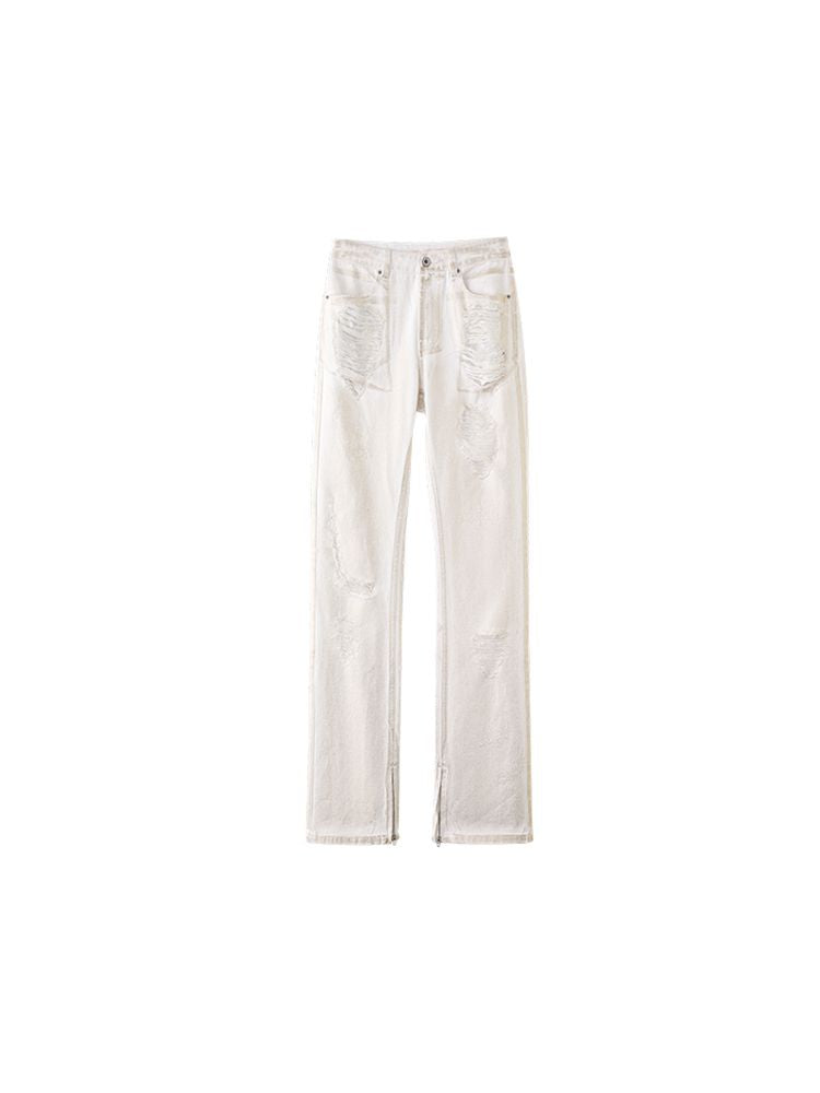 White hot gold hole Slim jeans【s0000009685】