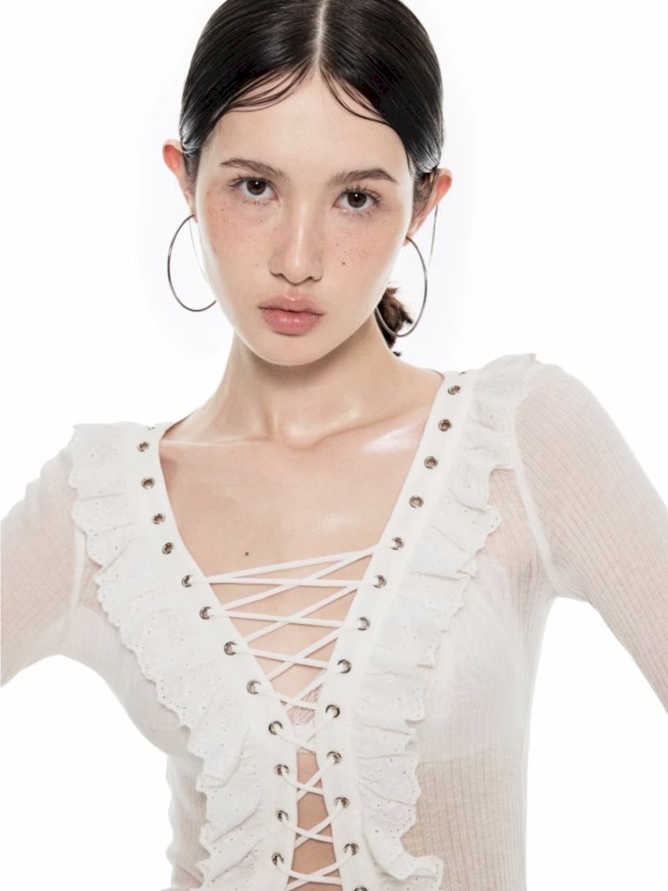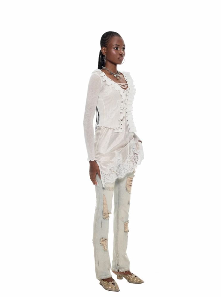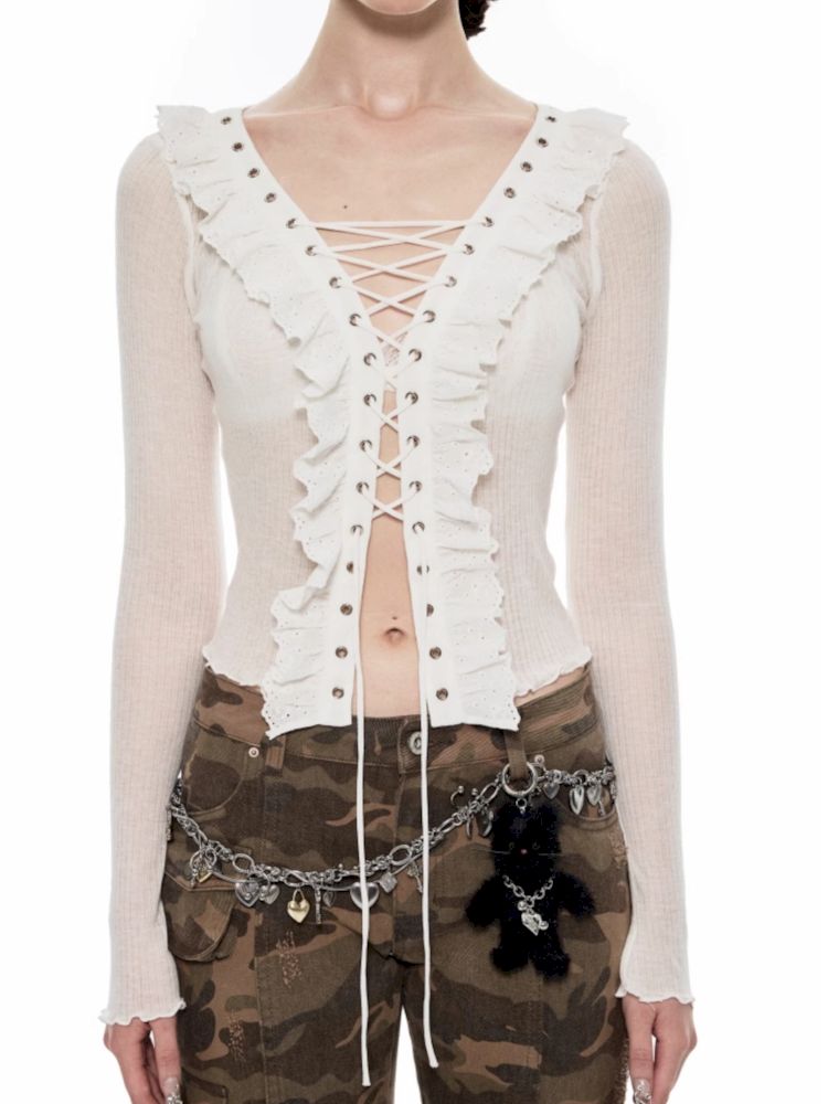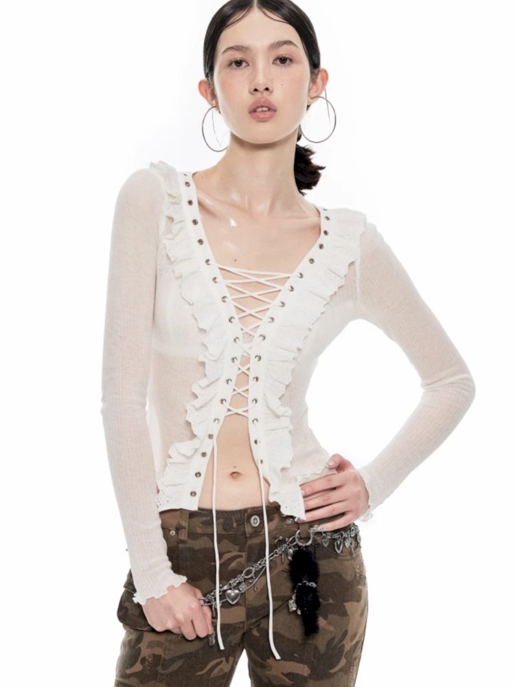 Lace Airy Eye Tie Cardigan【s0000009693】