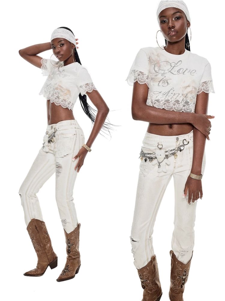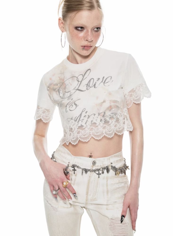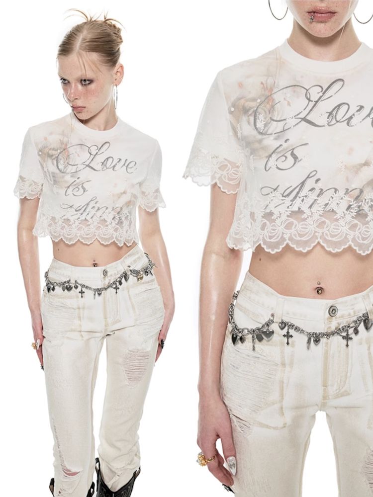 Lace false two pieces splicing short-sleeved T-shirt【s0000009694】