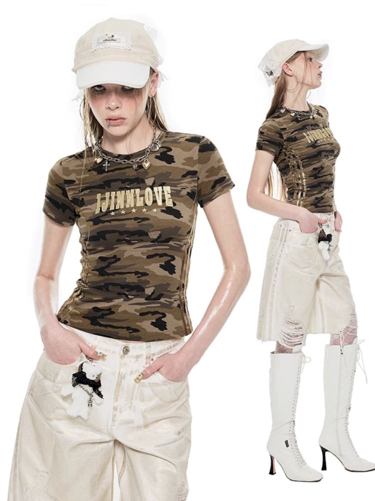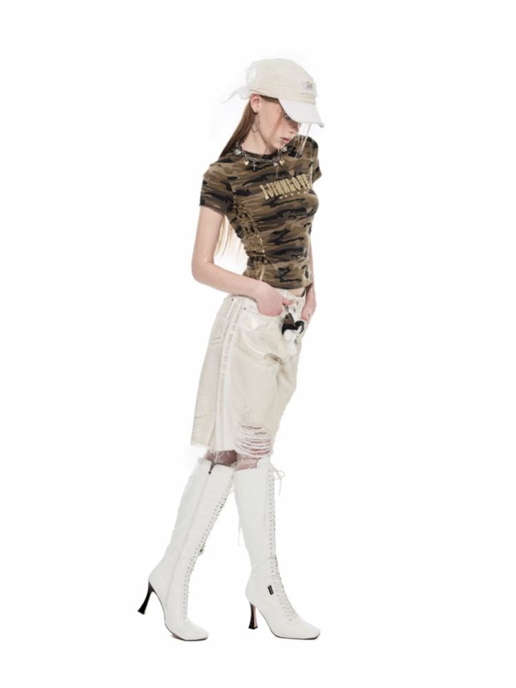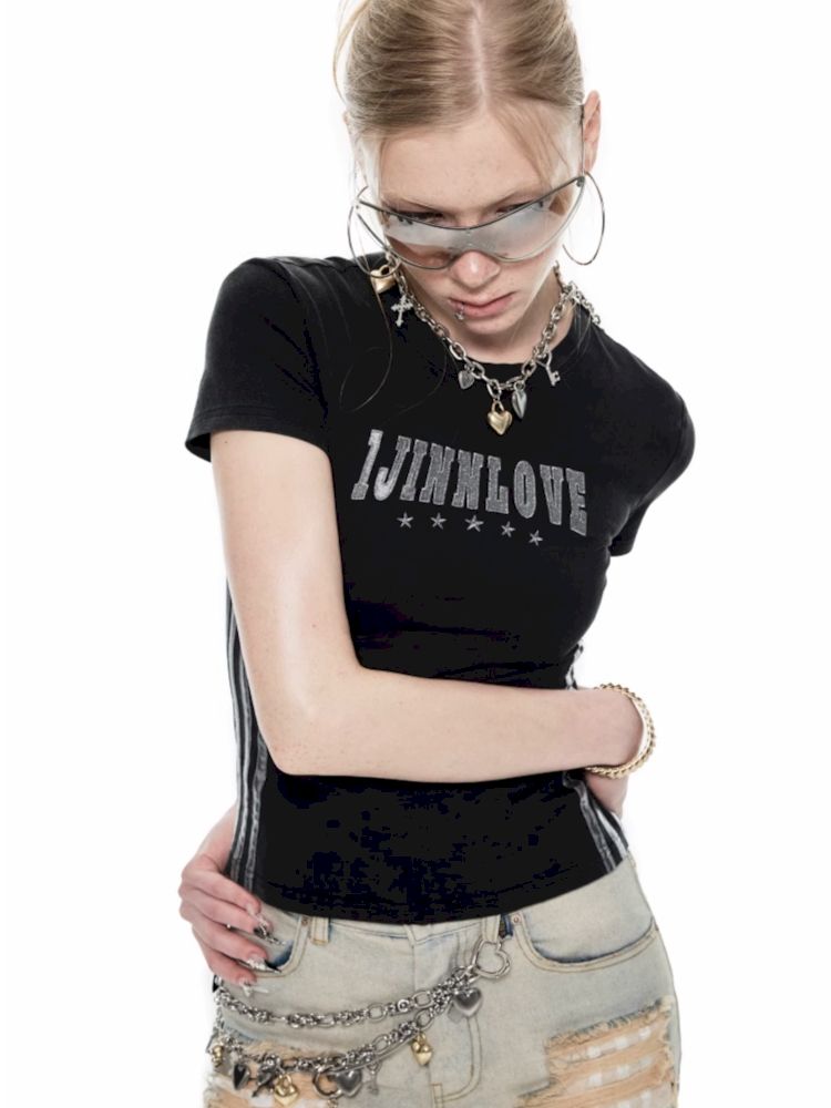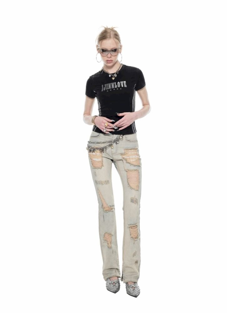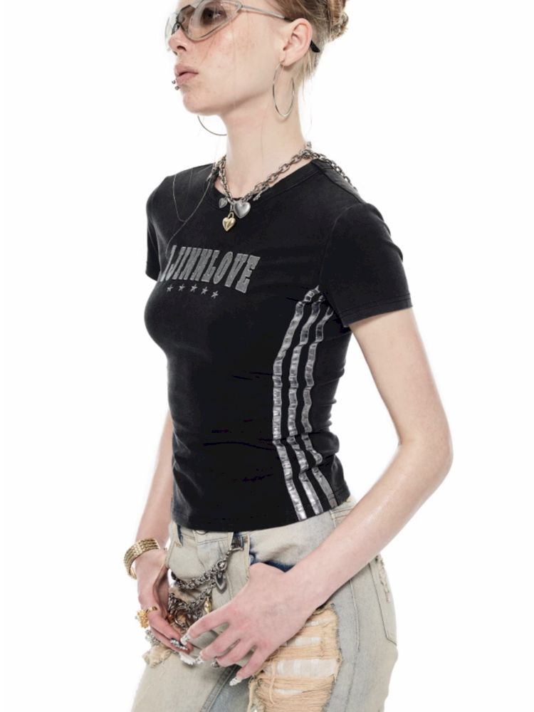 Round neck washed old splicing striped short-sleeved T-shirt【s0000009700】