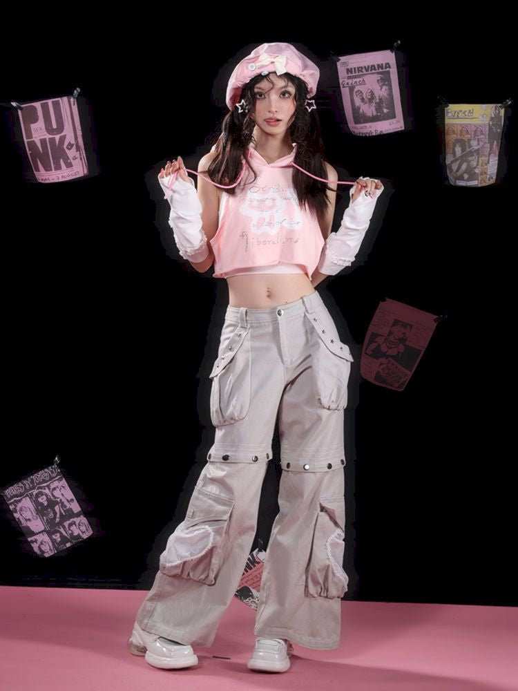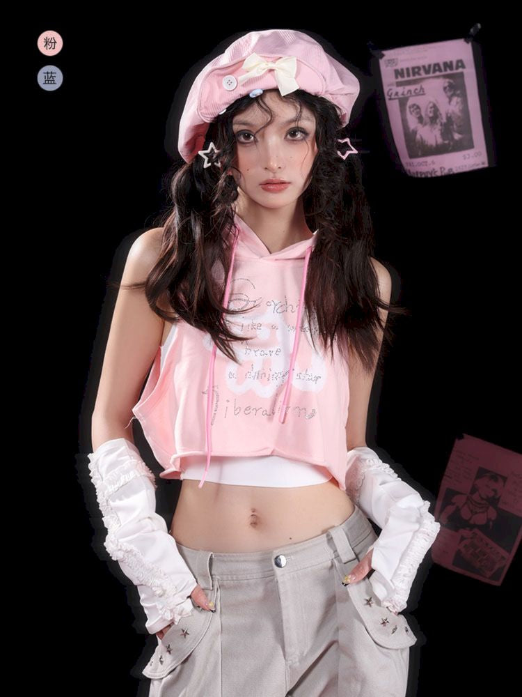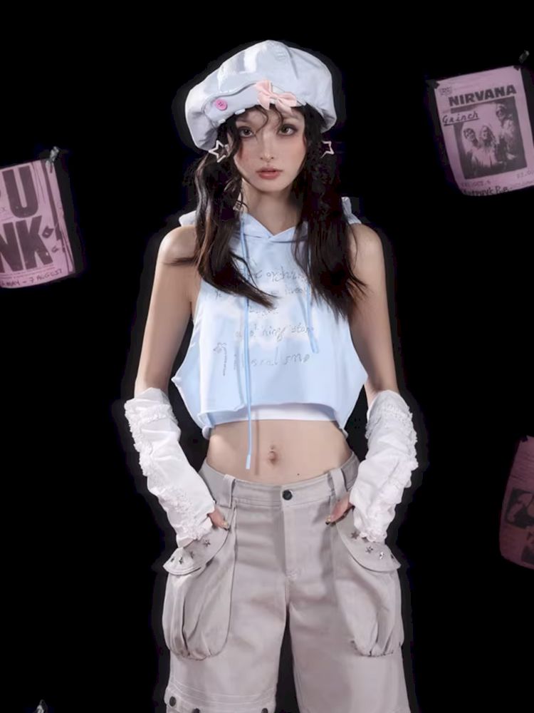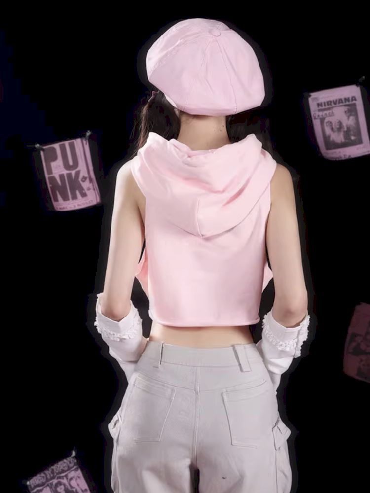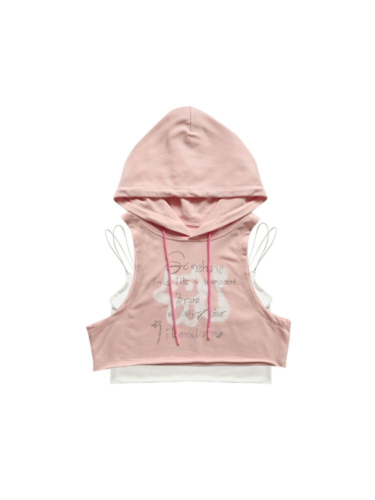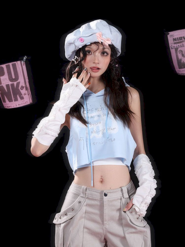 Powder Blue Hooded Sweatshirt Vest【s0000009724】