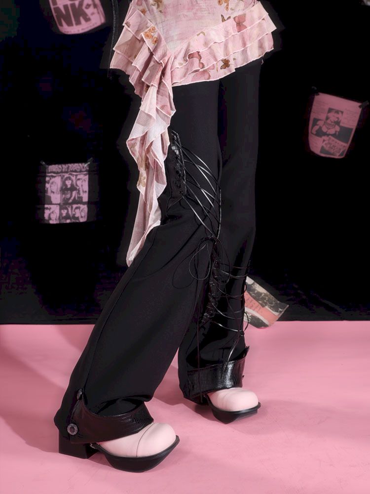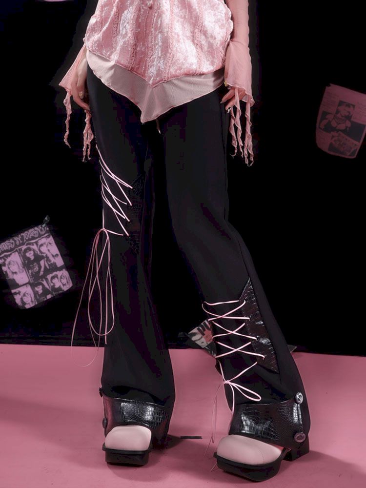 Replacement Tie Draped Silky Flared Trousers【s0000009727】