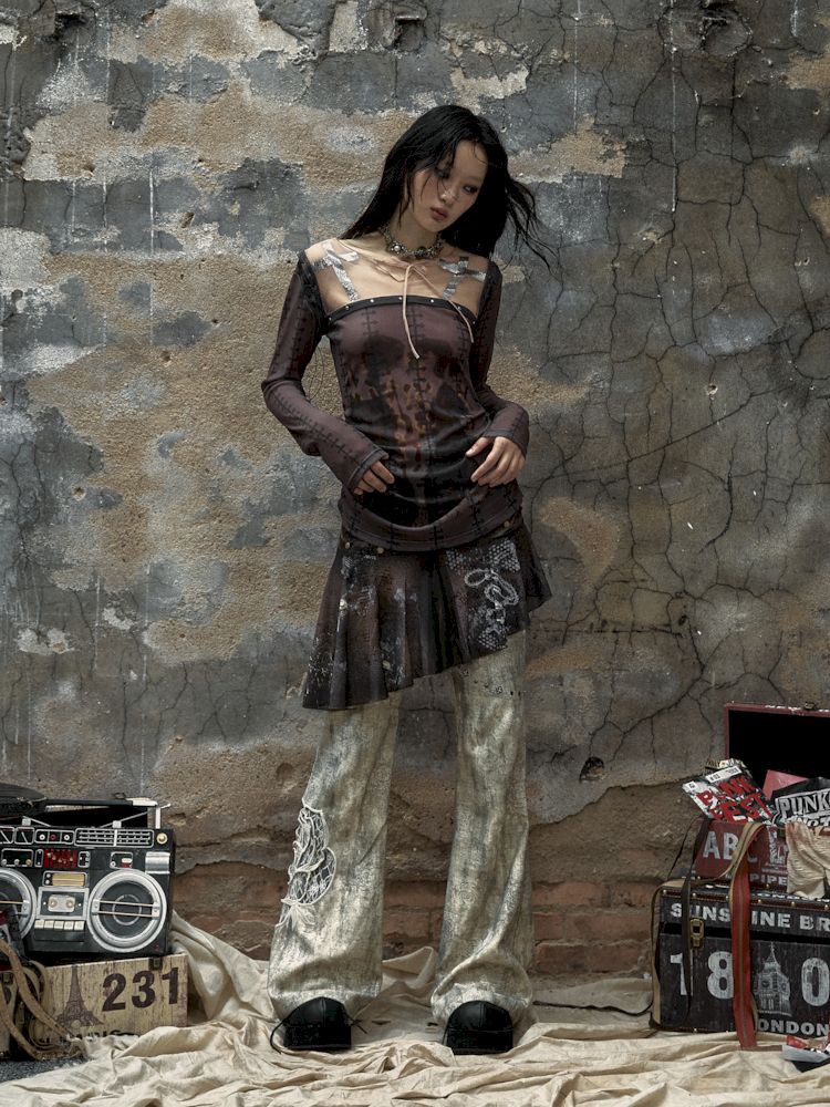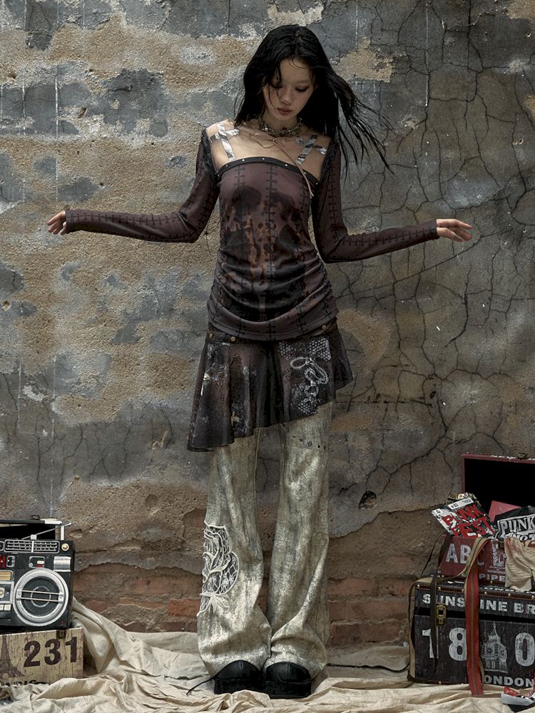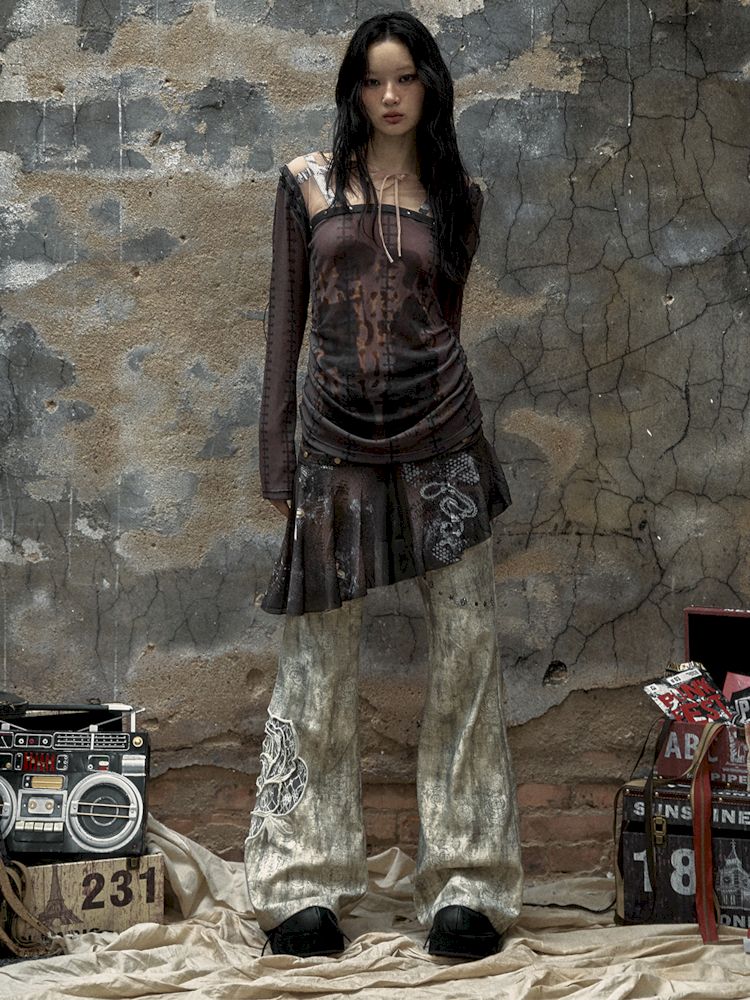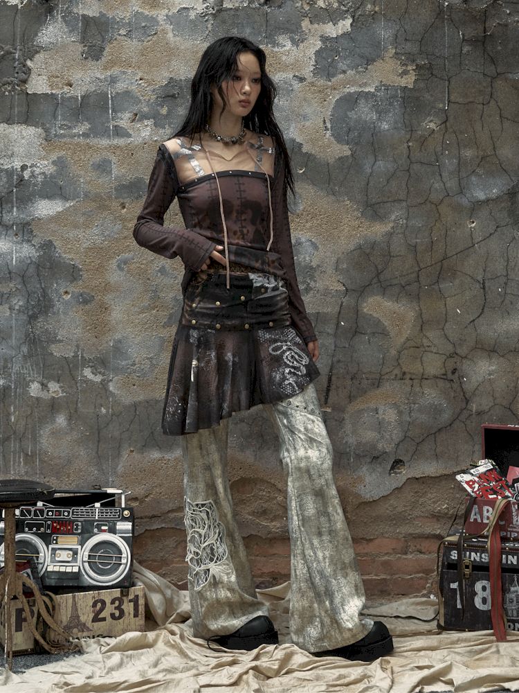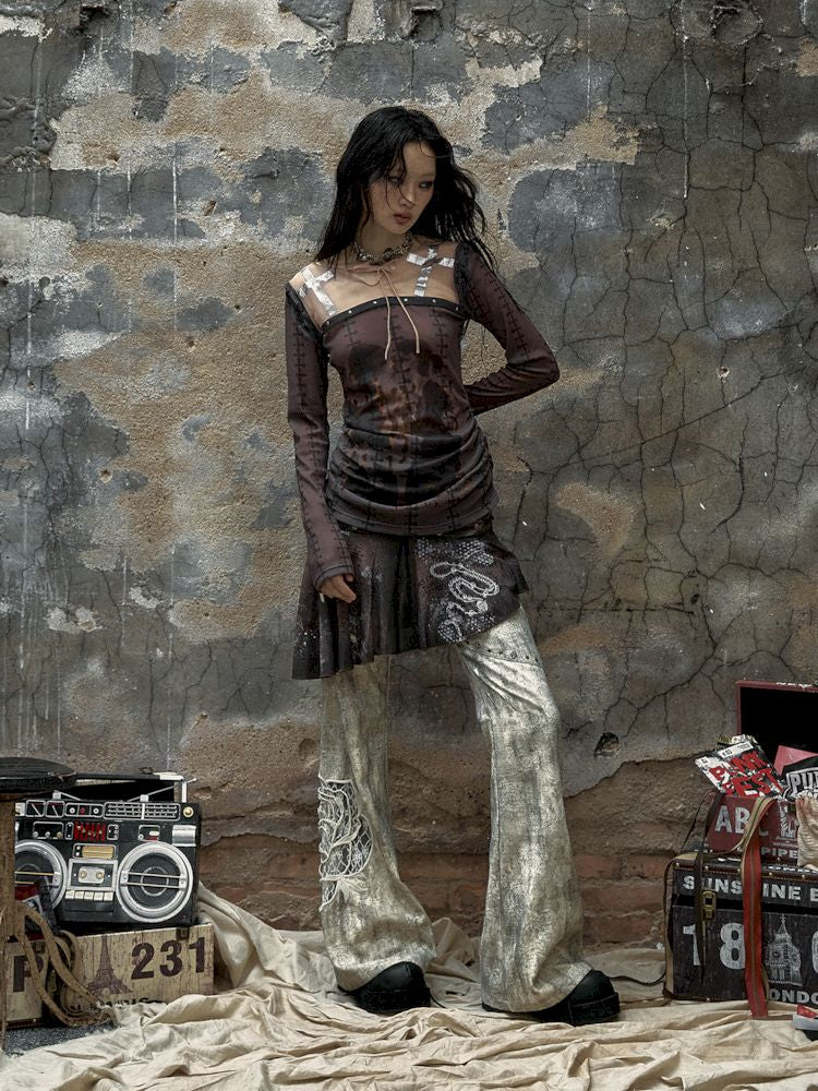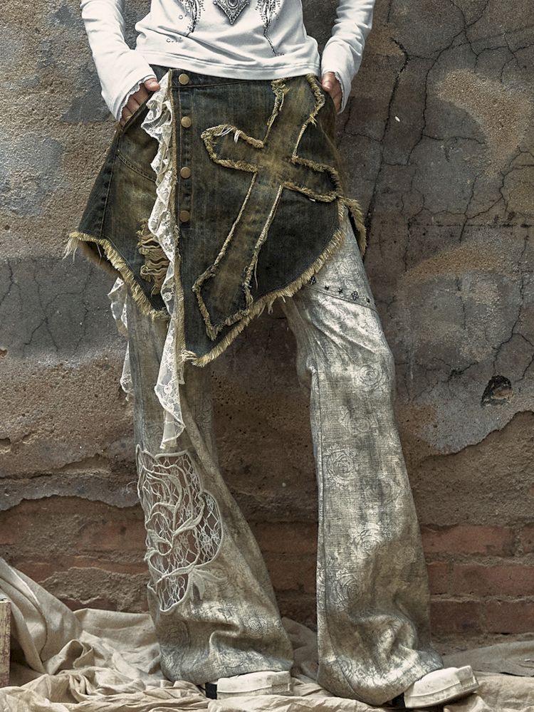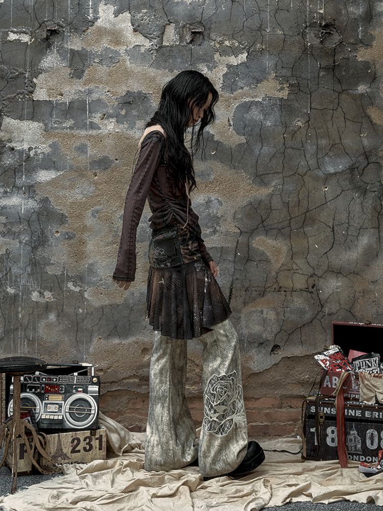 Embroidered Rose Straight Micro Flared Pants【s0000009743】