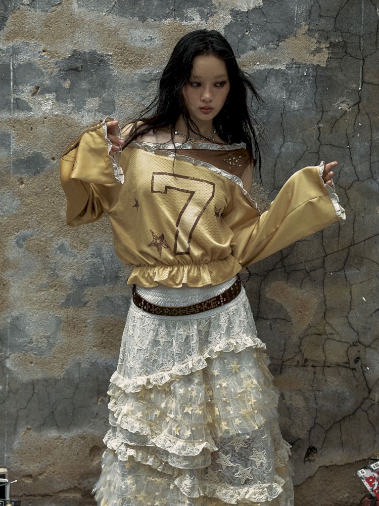 Lace Patchwork Sports Jersey Short Top【s0000009746】