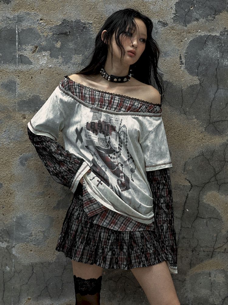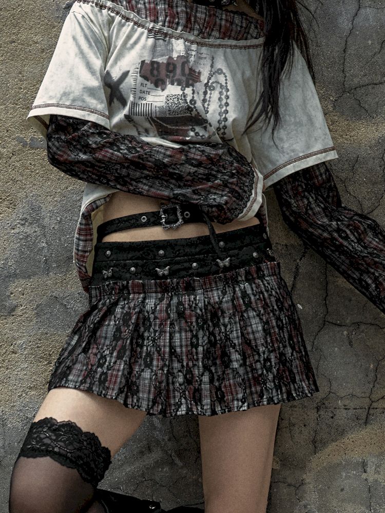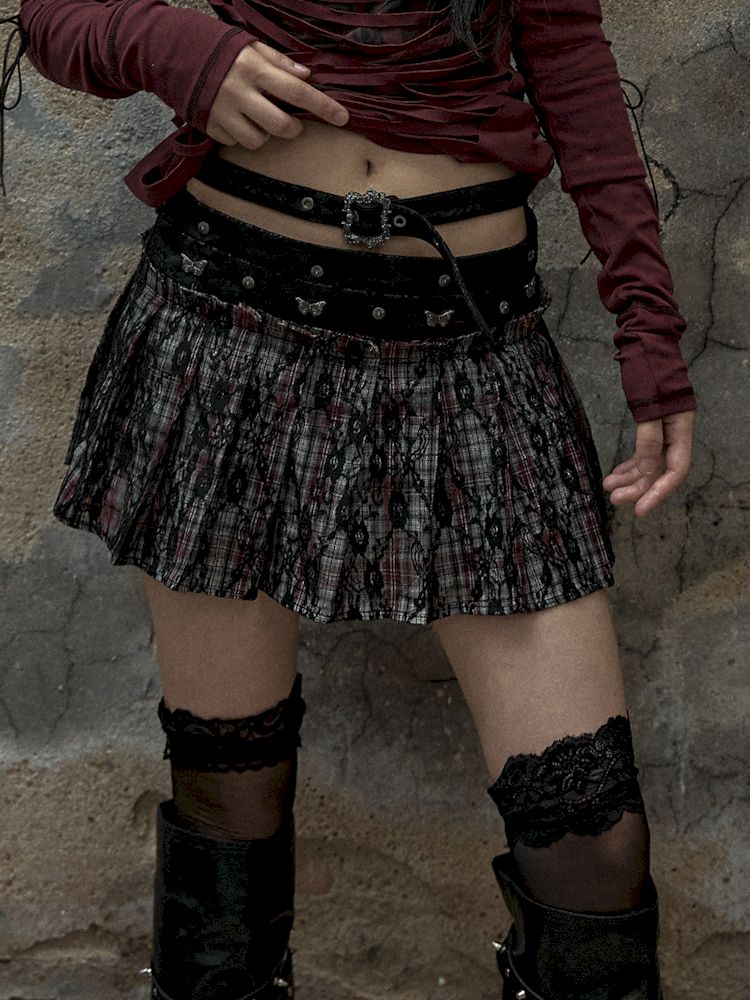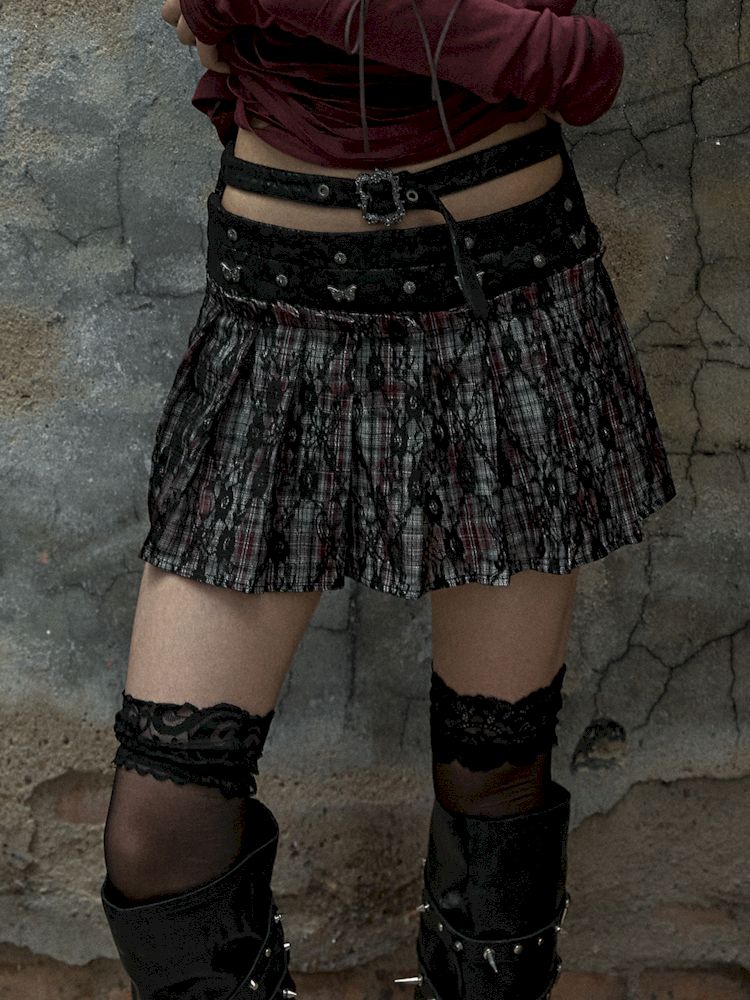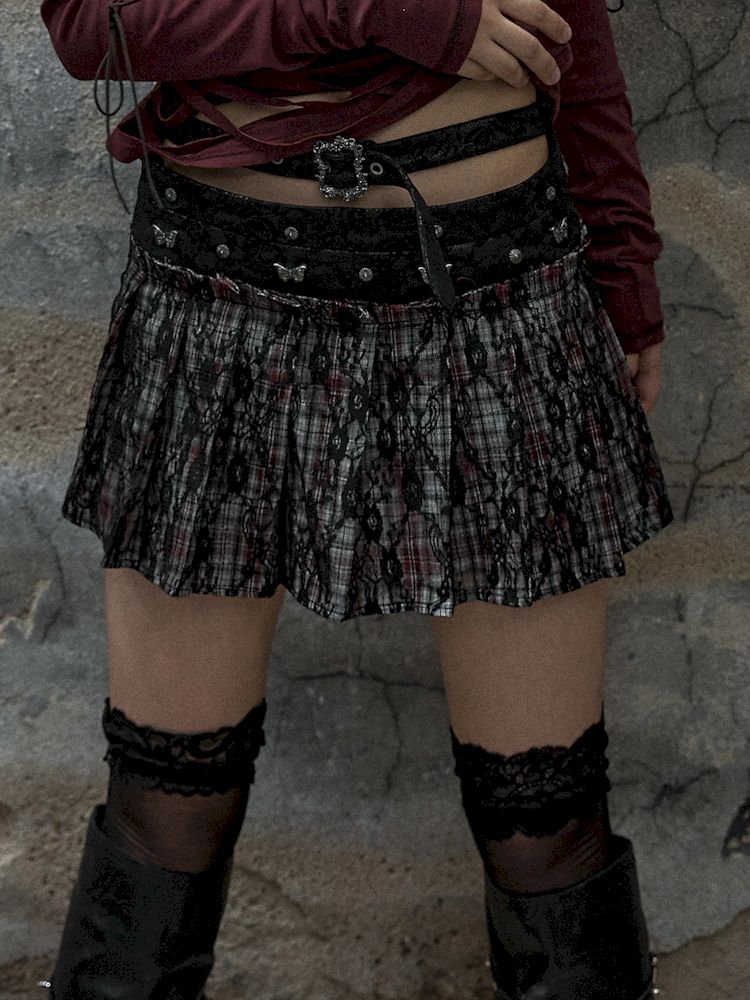 Lace Splicing Plaid Pleated Skirt【s0000009749】
