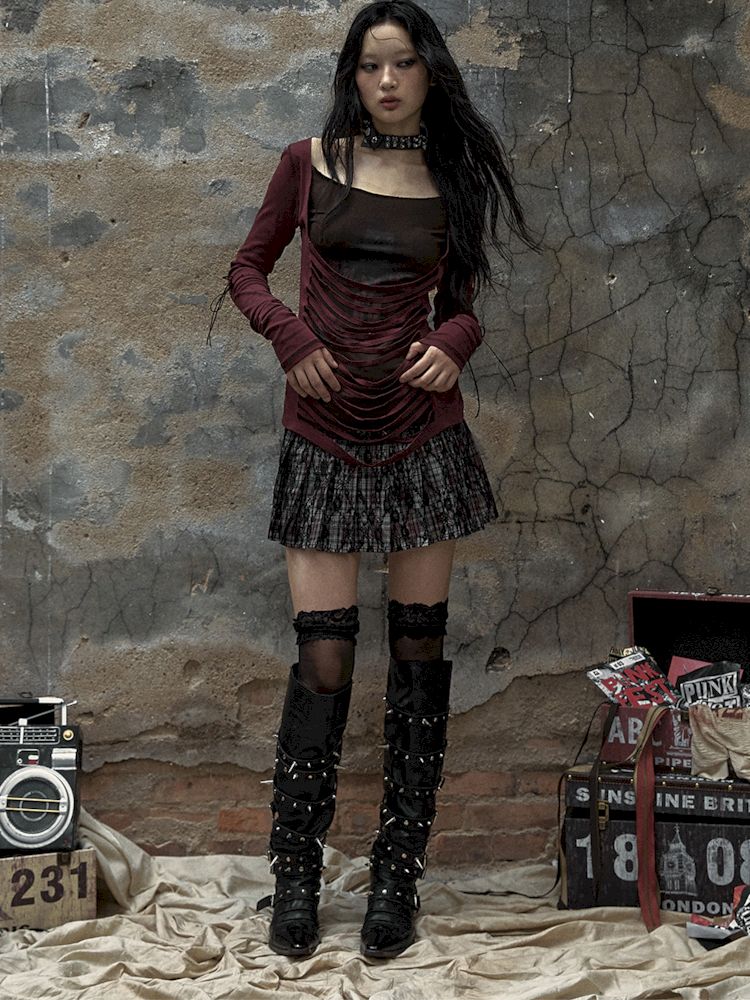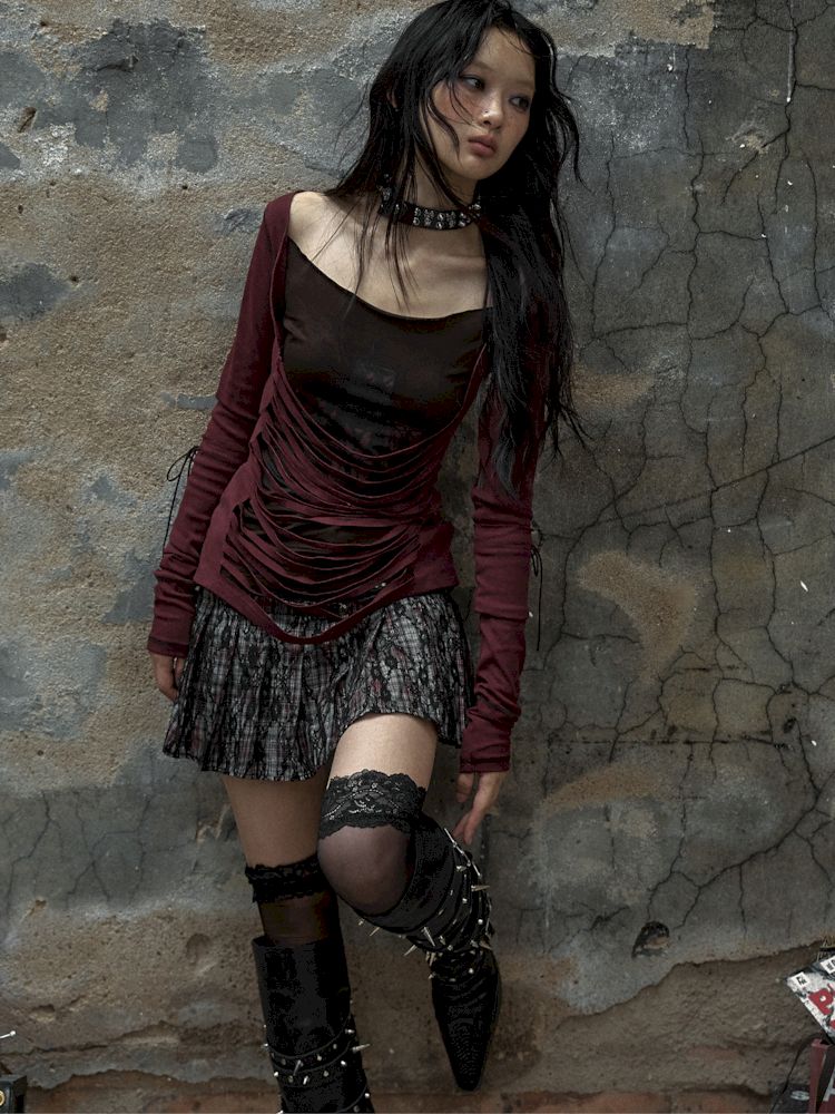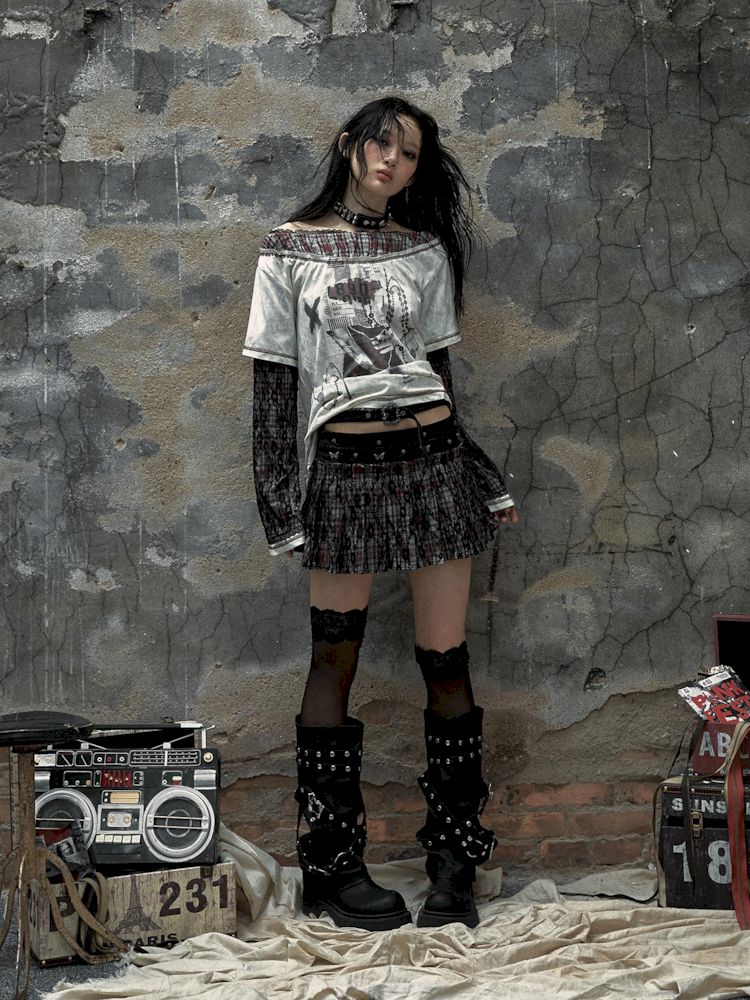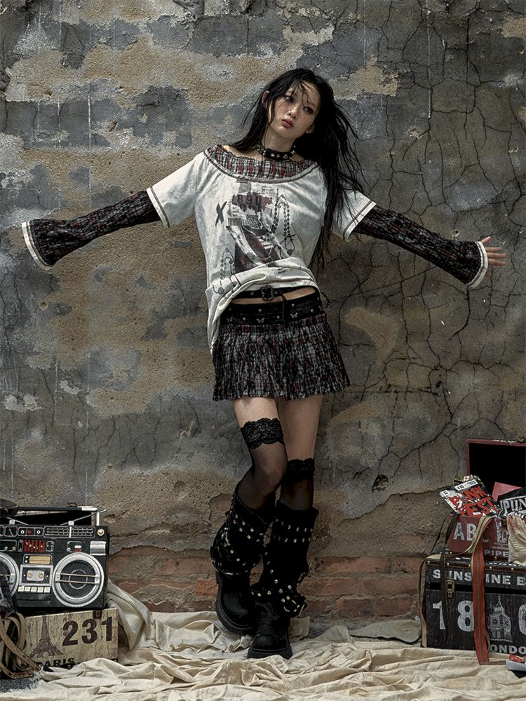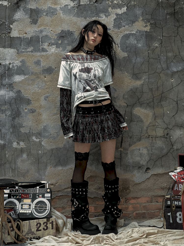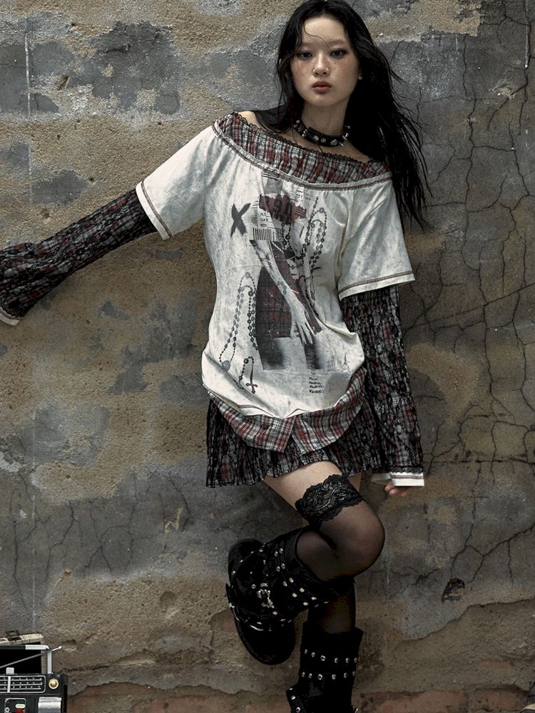 Lace Splicing Plaid Pleated Skirt【s0000009749】