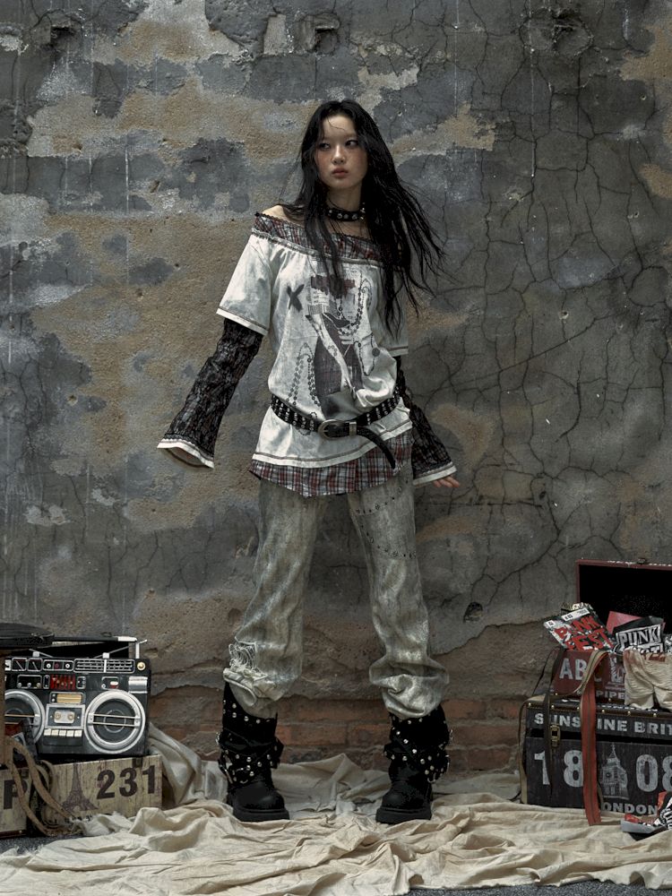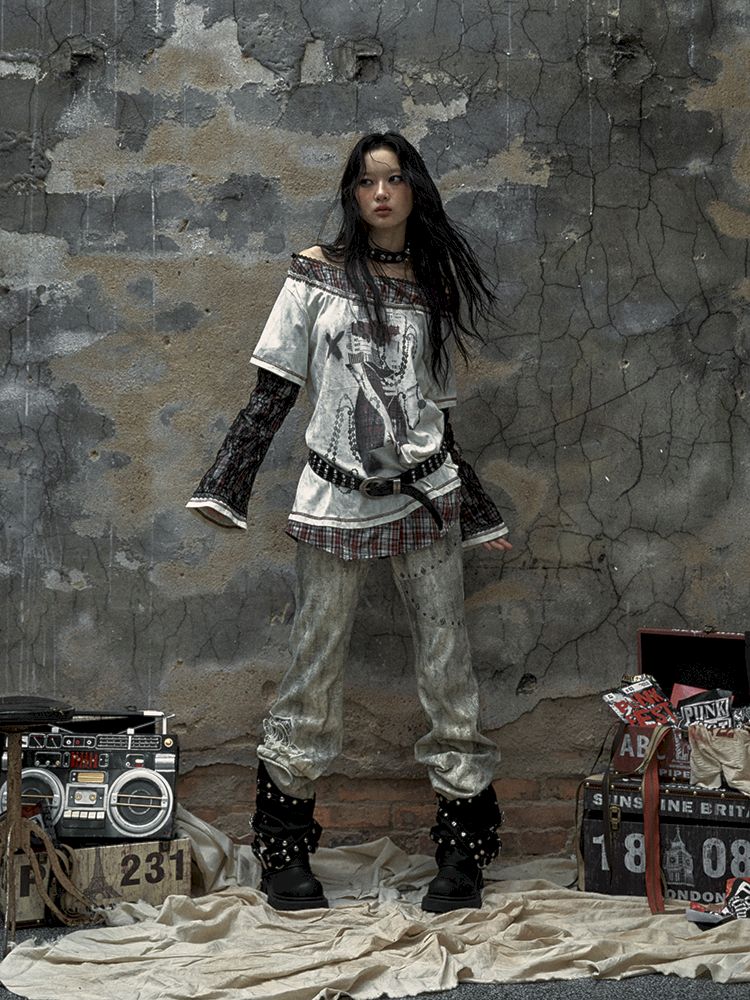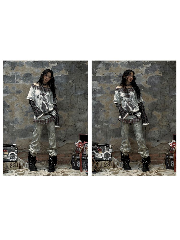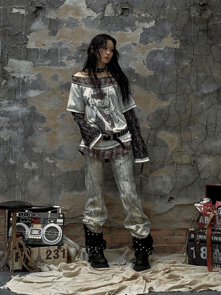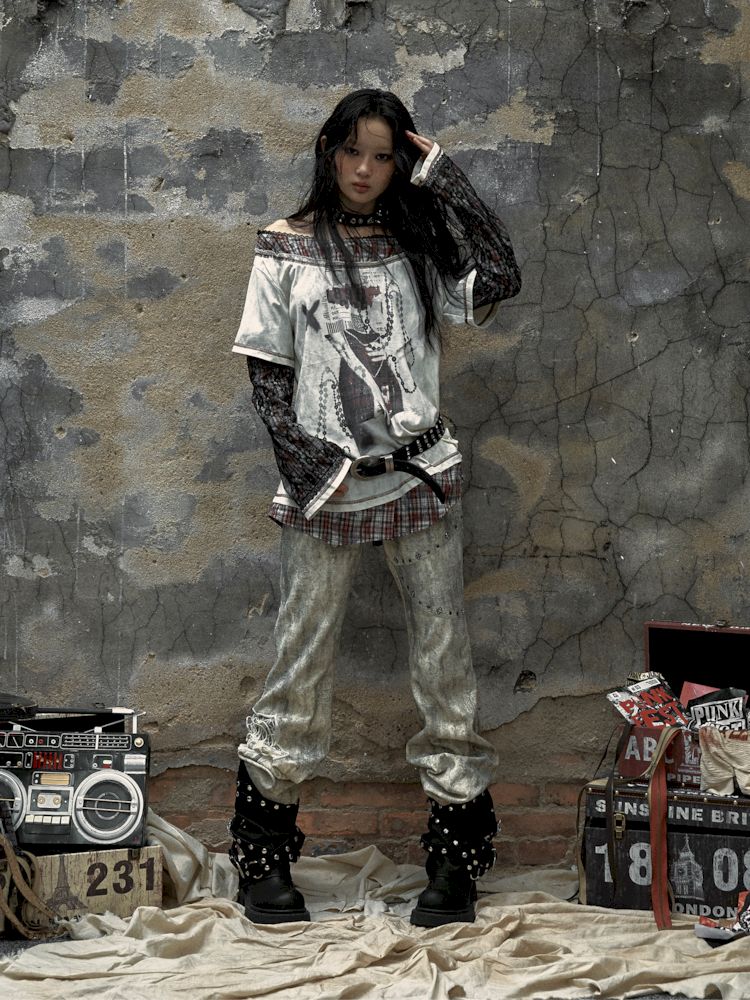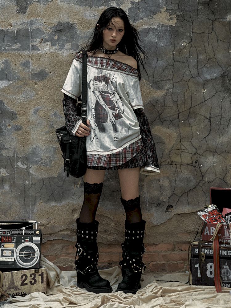 Fake Two Loose Plaid Lace Top【s0000009750】