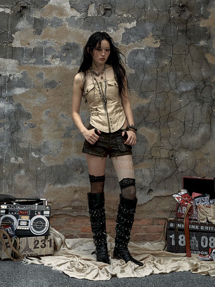 Heavy Suede Waist Corset Camisole【s0000009752】