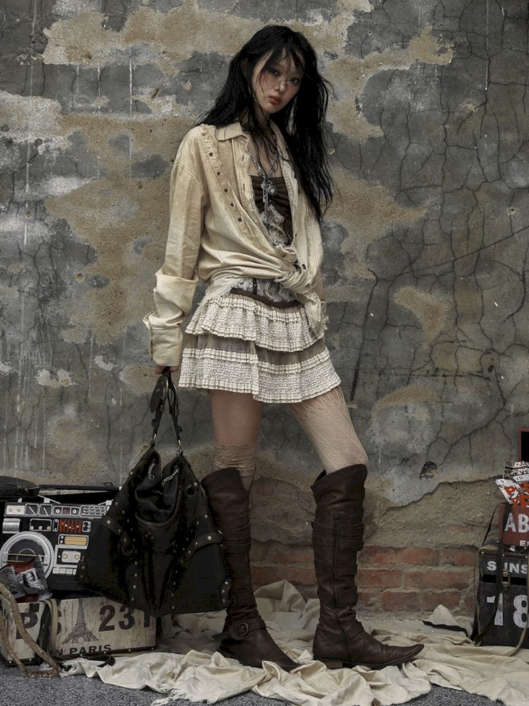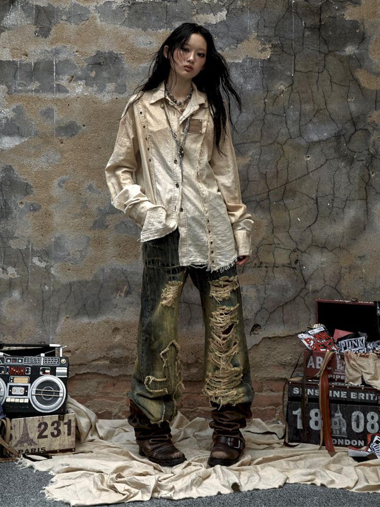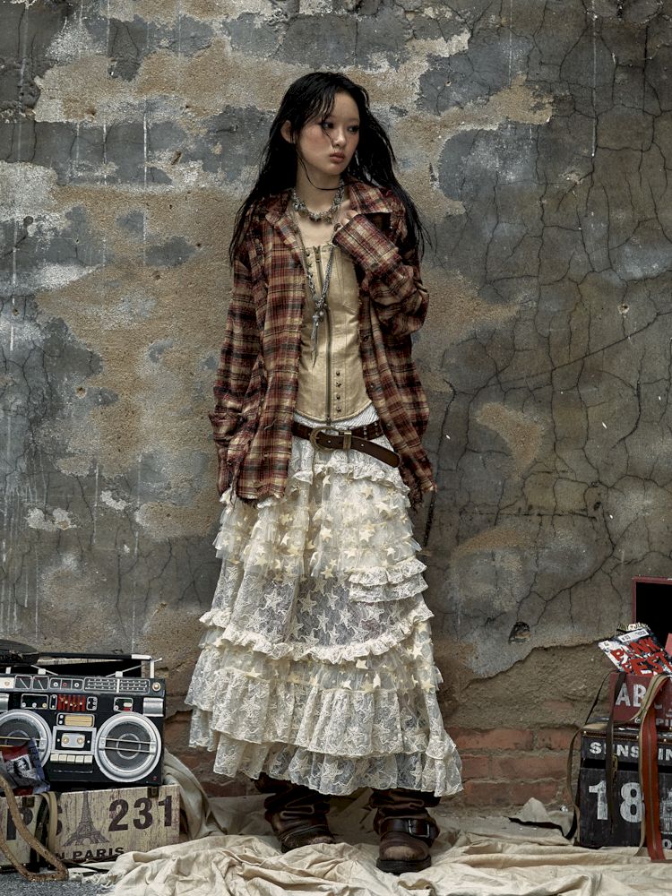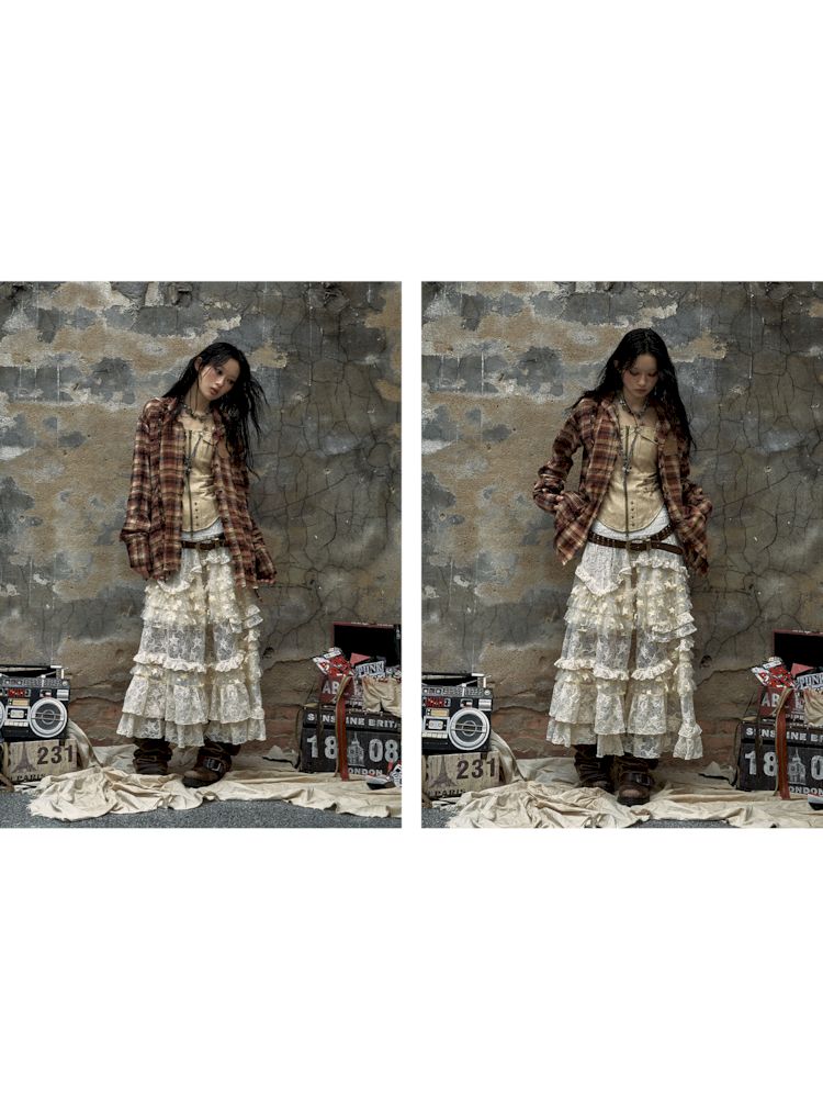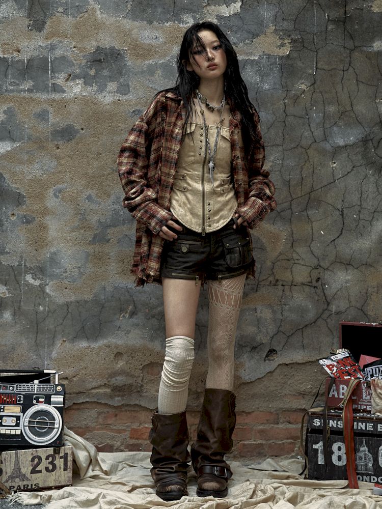Old washed color collision plaid shirt【s0000009754】