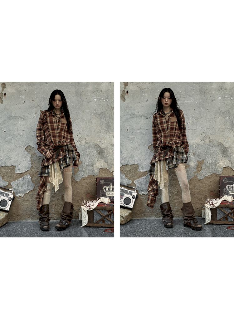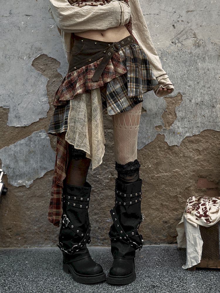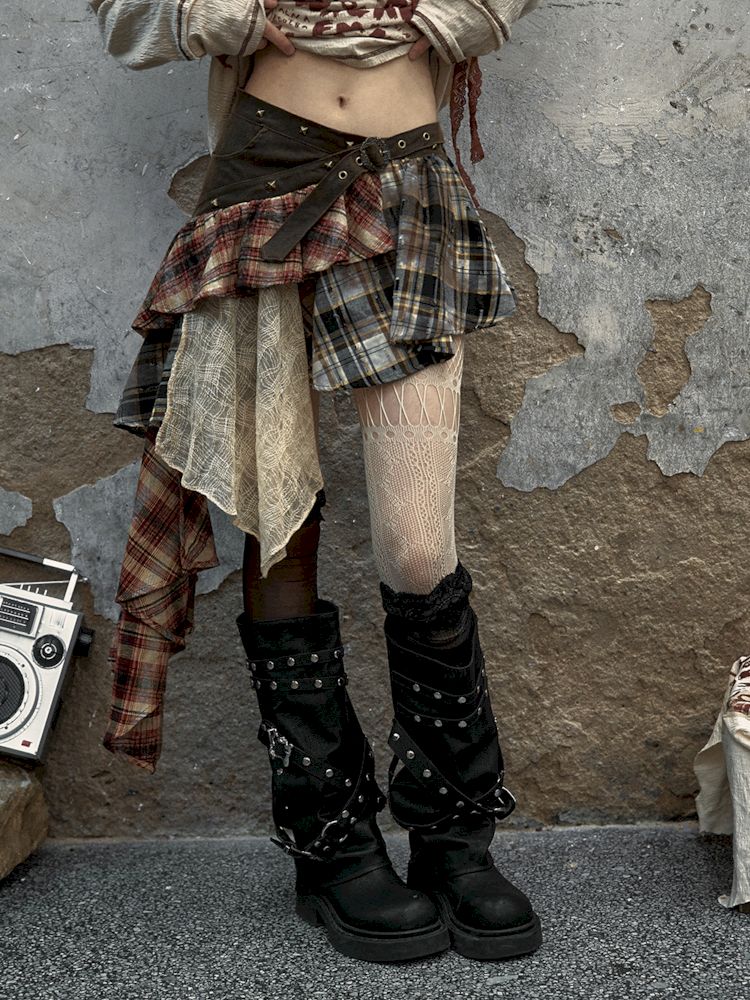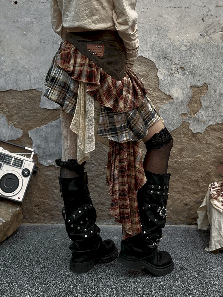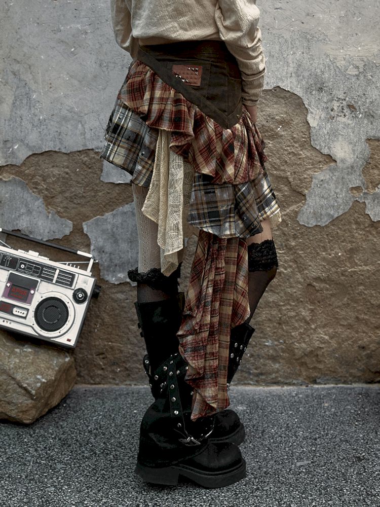 Spliced Plaid Irregular Half-body Skirt【s0000009755】