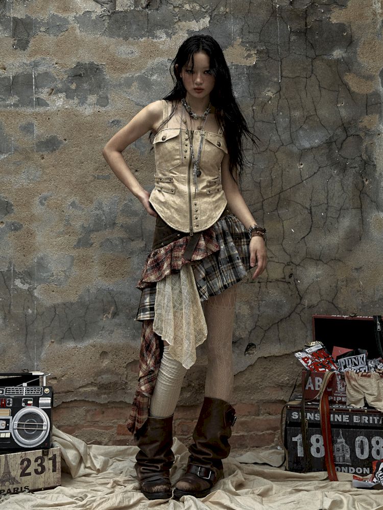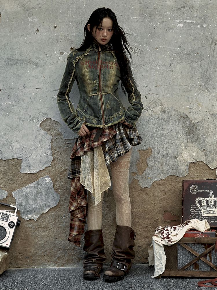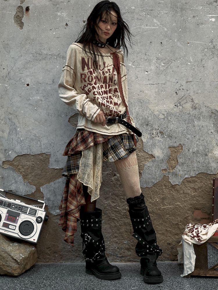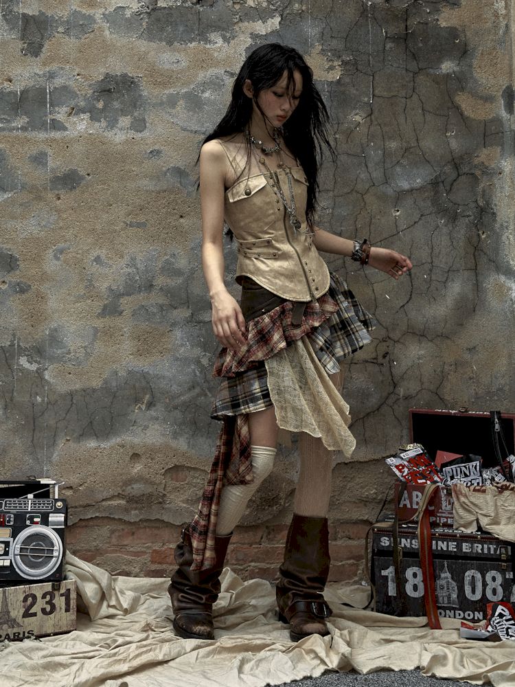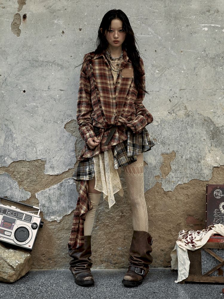 Spliced Plaid Irregular Half-body Skirt【s0000009755】