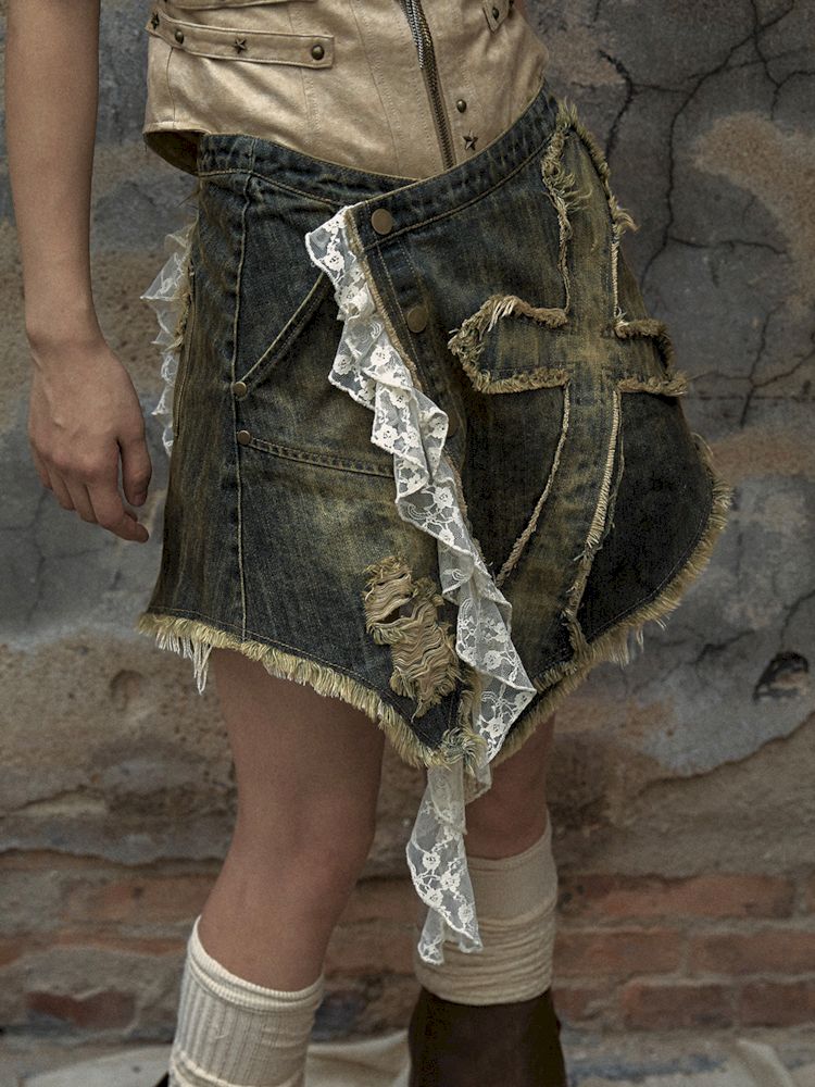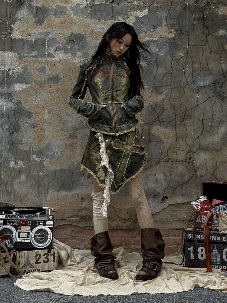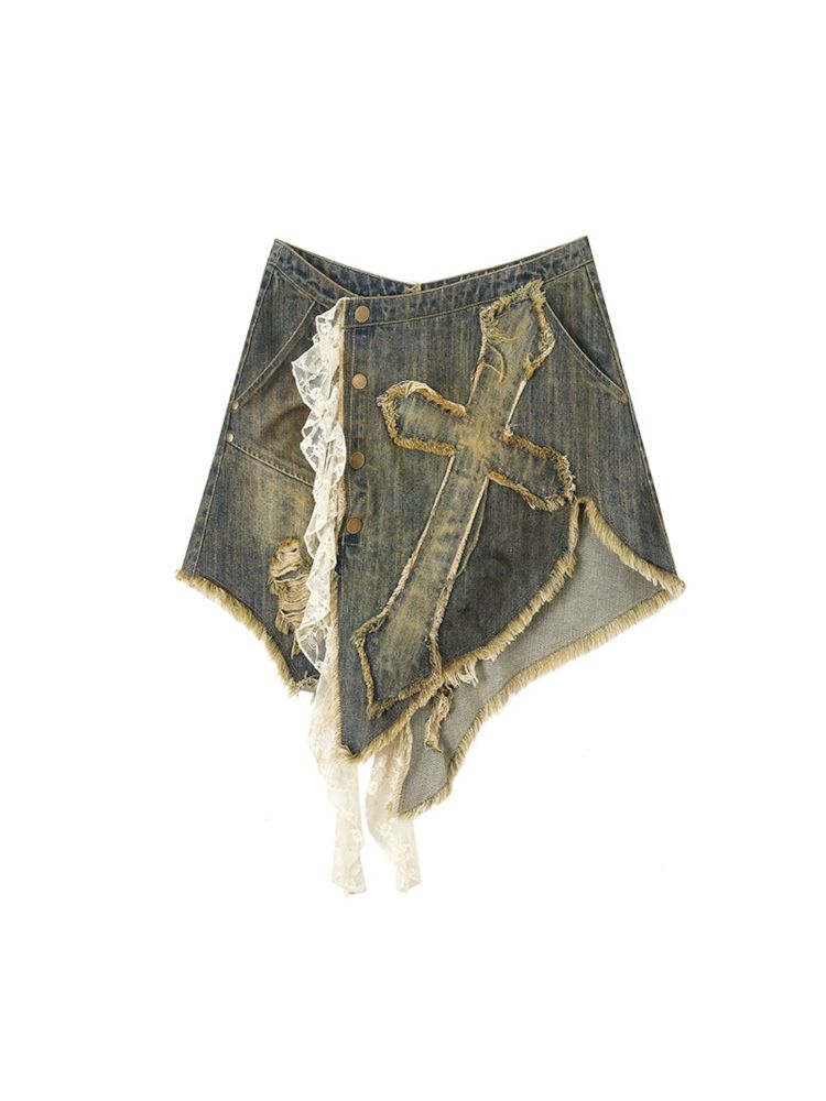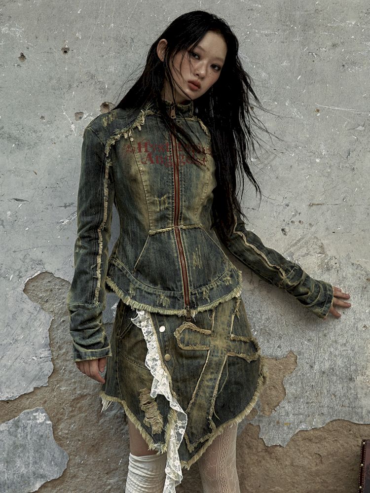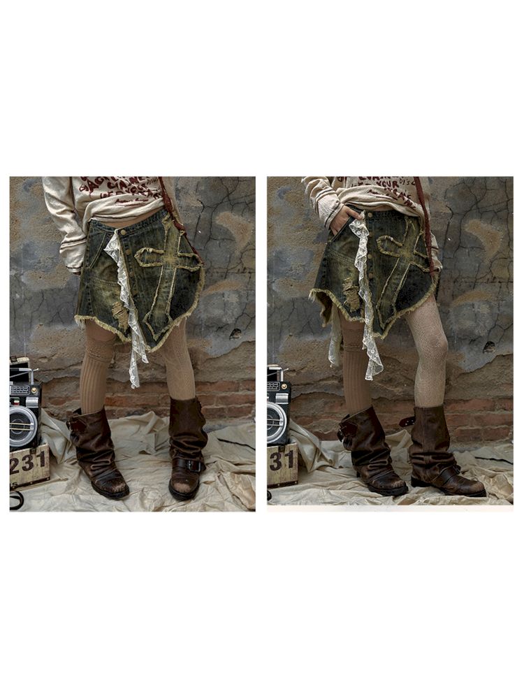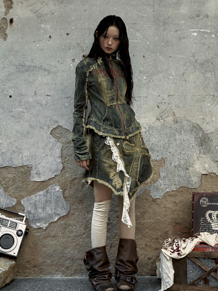 Washed Denim One Piece Low Waist Half Skirt【s0000009757】