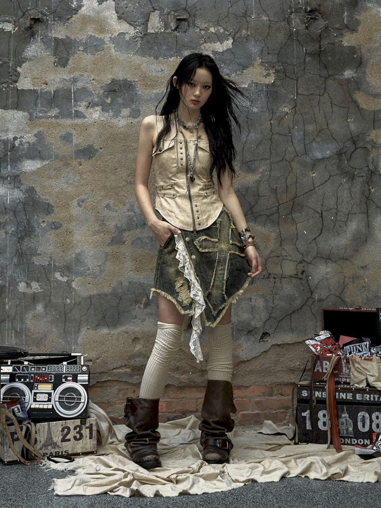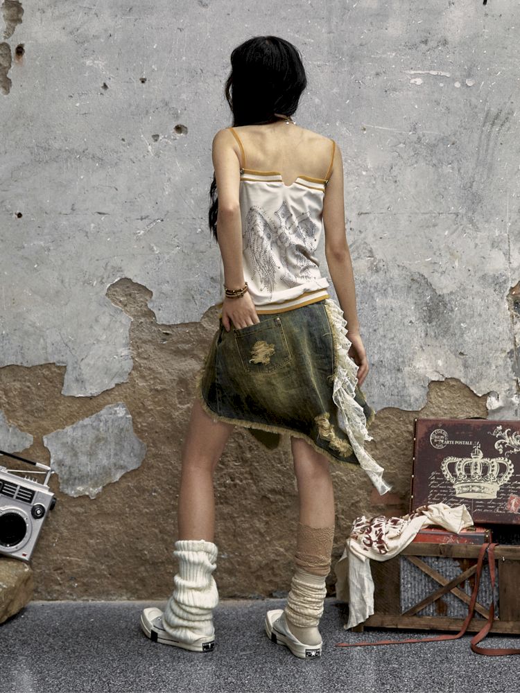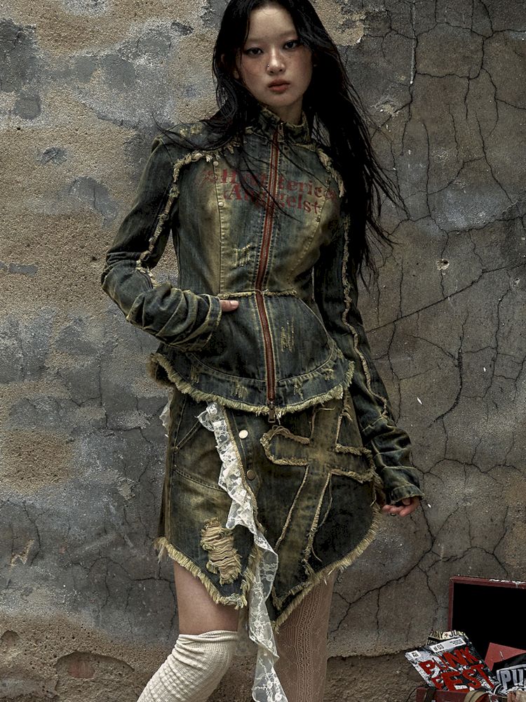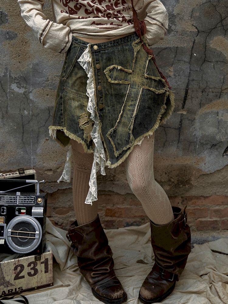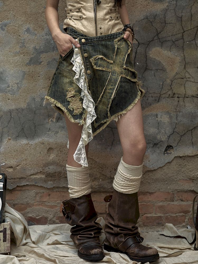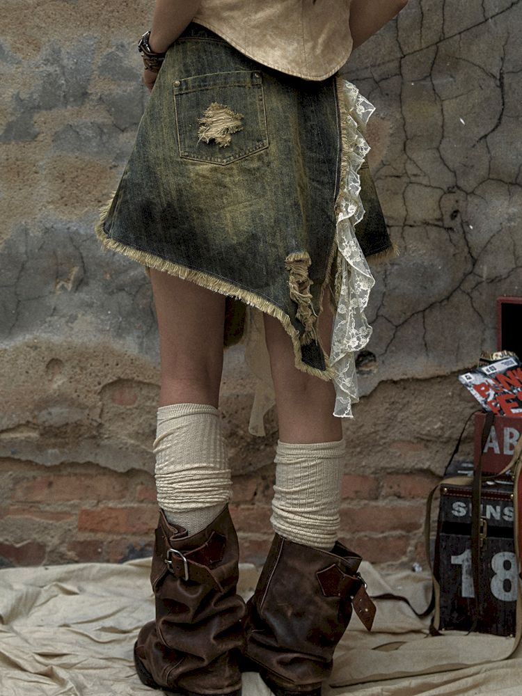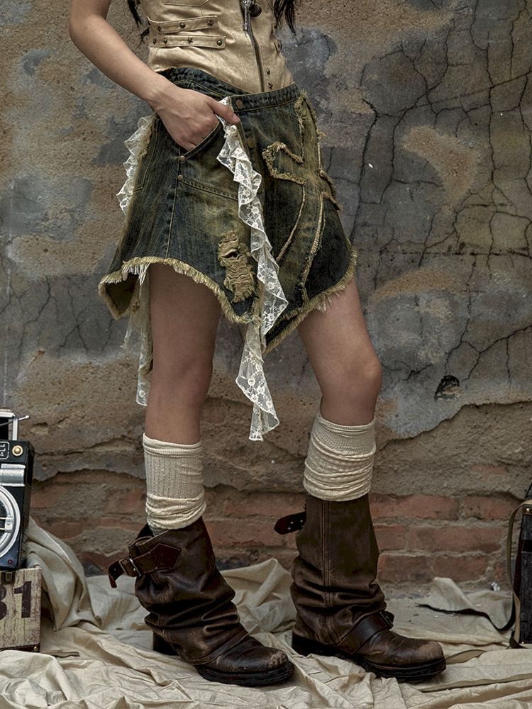 Washed Denim One Piece Low Waist Half Skirt【s0000009757】